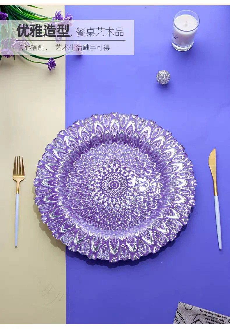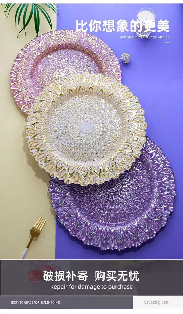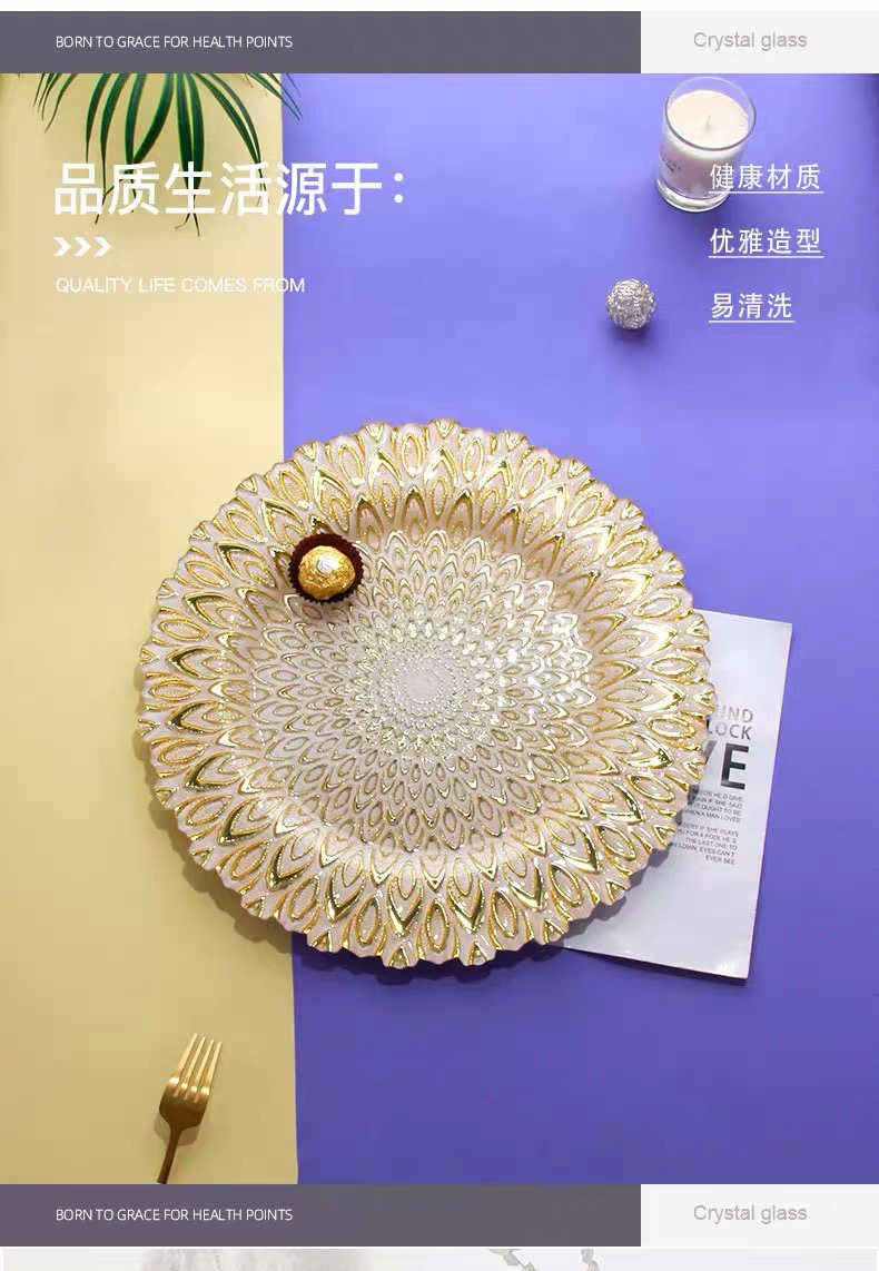 높은 외관 라운드 유리 과일 플레이트 거실 홈 샐러드 디저트 딤섬 웨스턴 푸드 플레이트 크리에이티브 하이 레벨 센스 플레이트