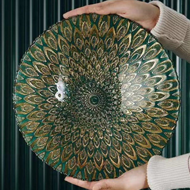 높은 외관 라운드 유리 과일 플레이트 거실 홈 샐러드 디저트 딤섬 웨스턴 푸드 플레이트 크리에이티브 하이 레벨 센스 플레이트스토어 가기
