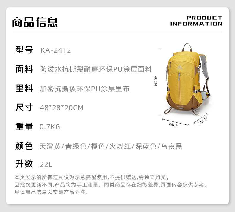 Ai Wang 내마모성 나일론 야외 발수 22L 배낭 남성과 여성 등산 여행 캠핑 배낭스토어 가기
