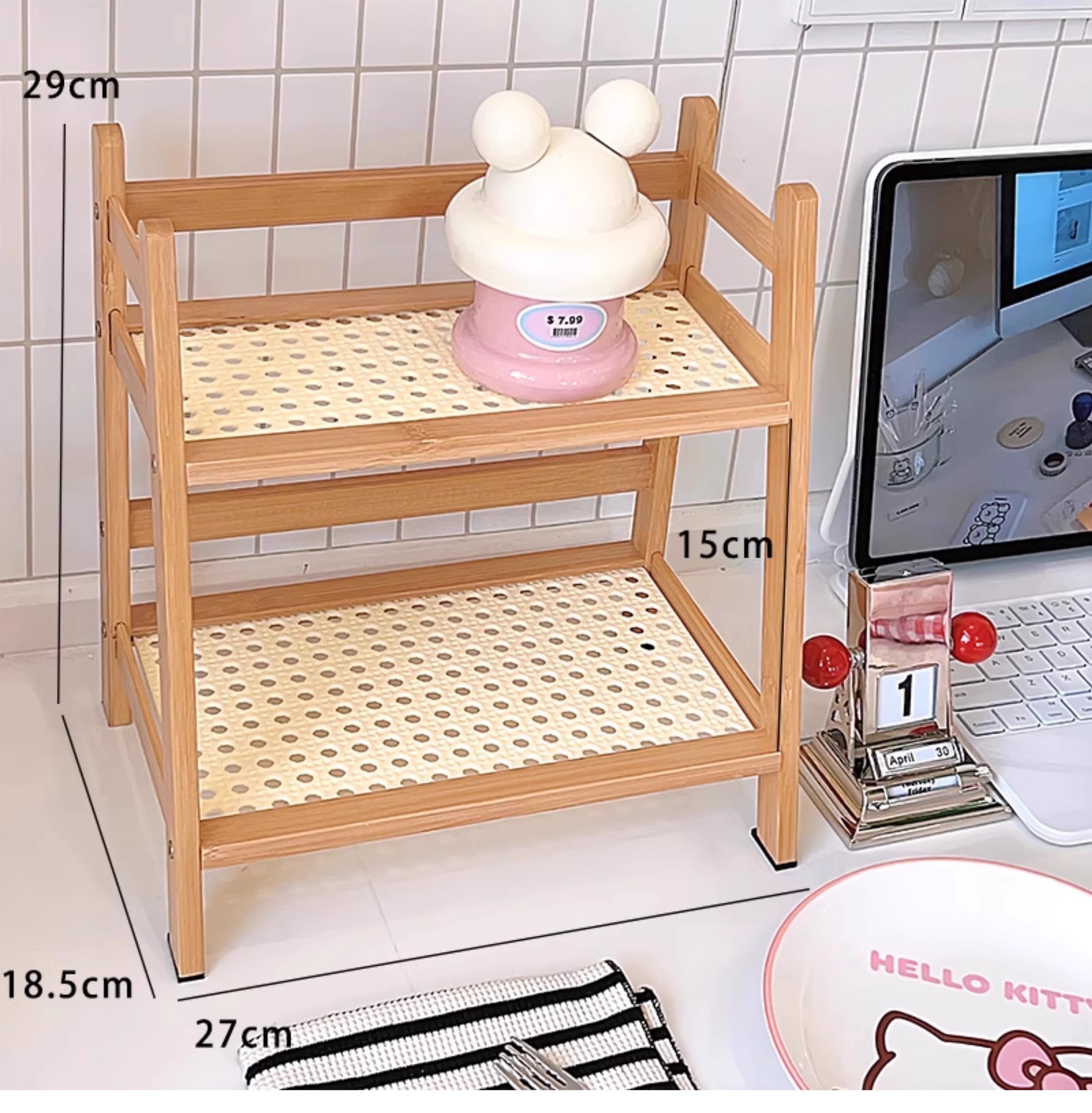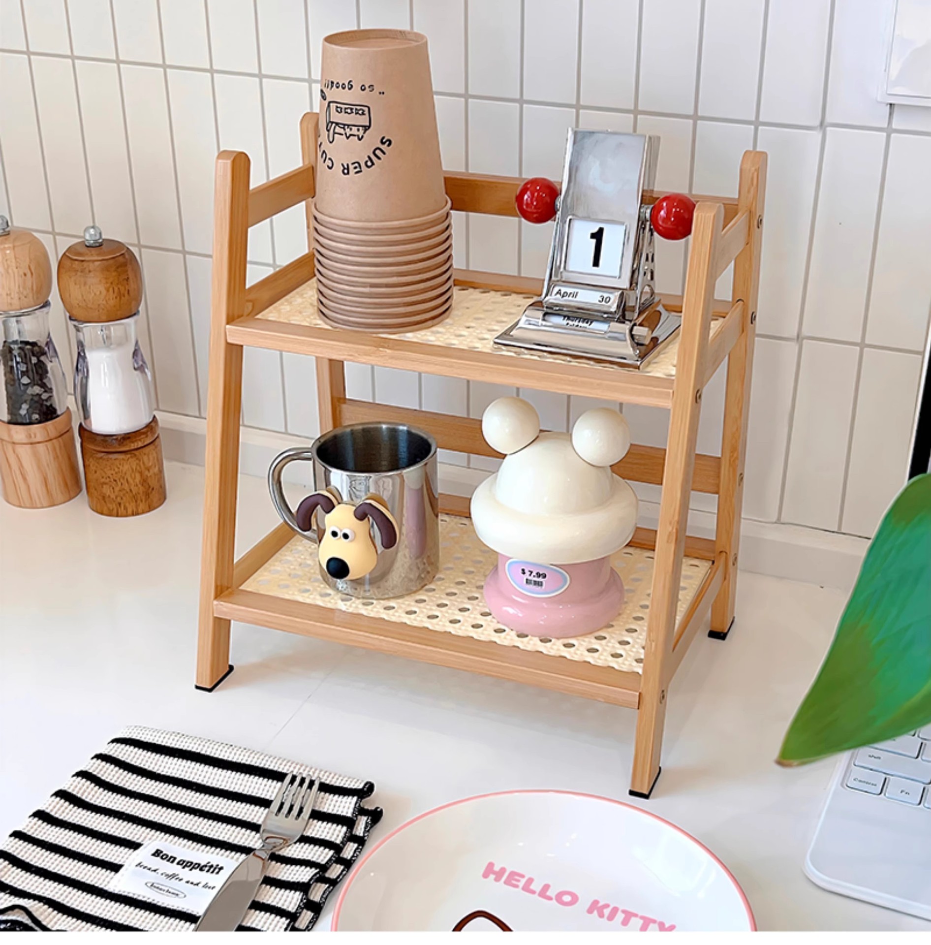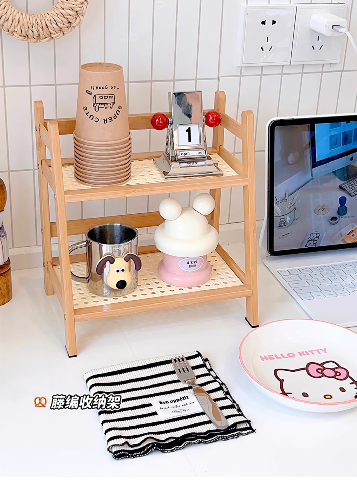 Ins 골동품 크림 컬러 더블 레이어 데스크탑 스토리지 랙 기숙사 침실 사무실 주방 컵 랙 스토리지 랙스토어 가기