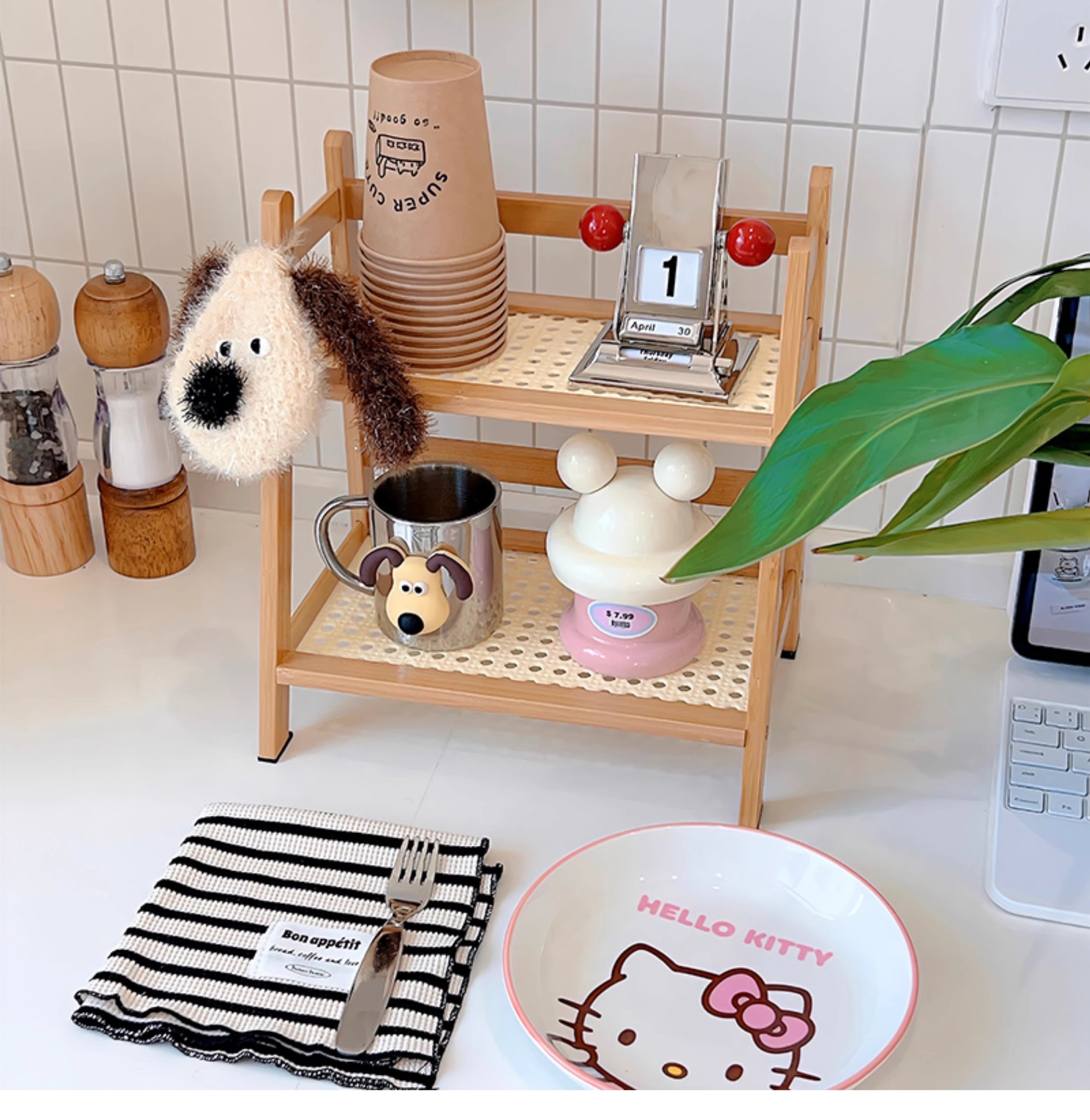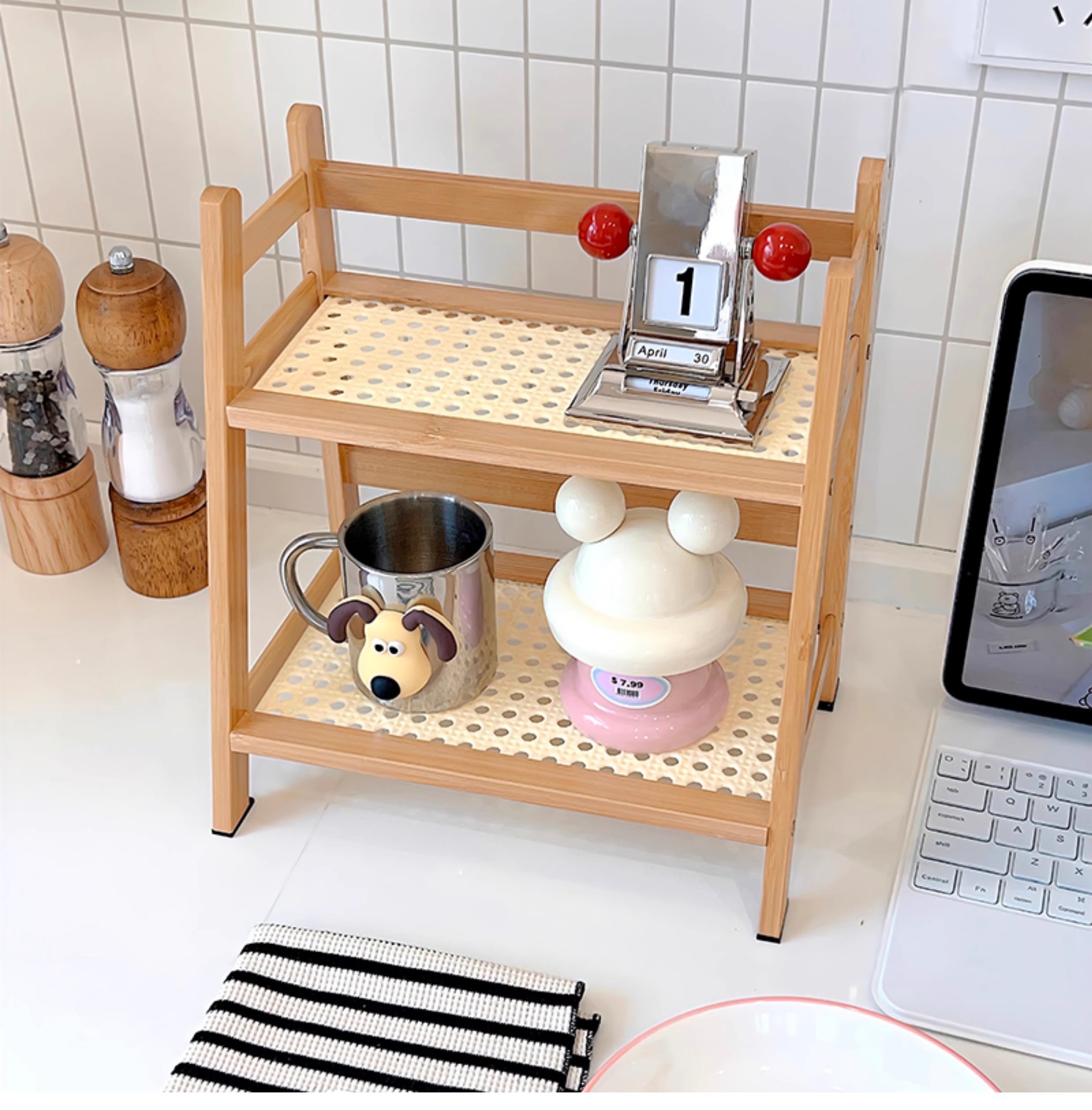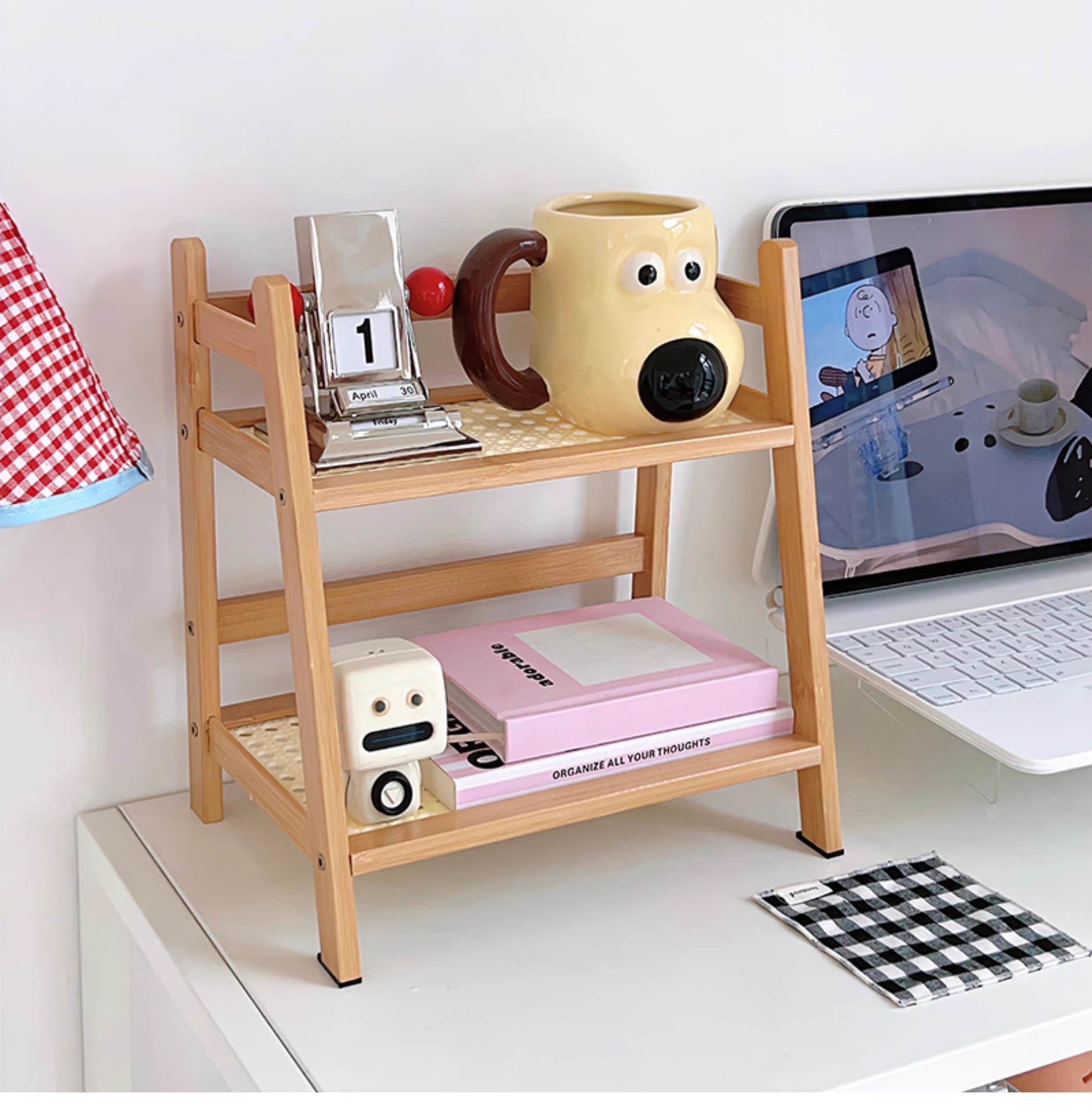 Ins 골동품 크림 컬러 더블 레이어 데스크탑 스토리지 랙 기숙사 침실 사무실 주방 컵 랙 스토리지 랙스토어 가기