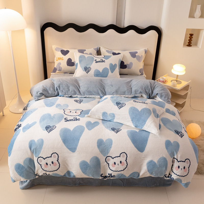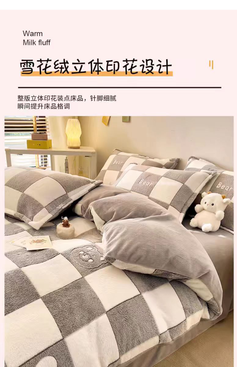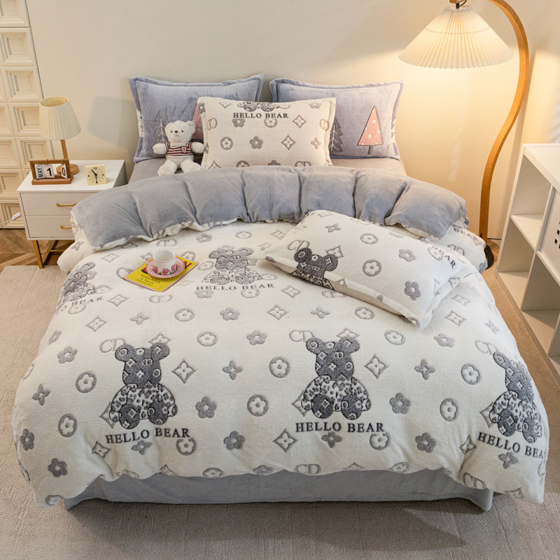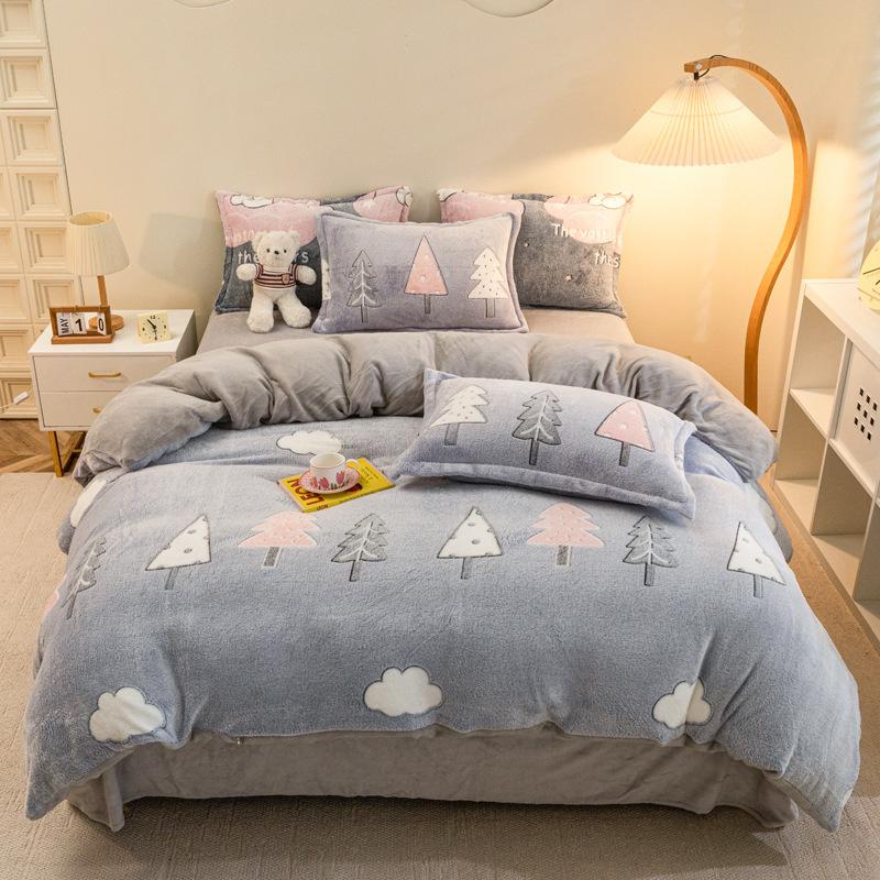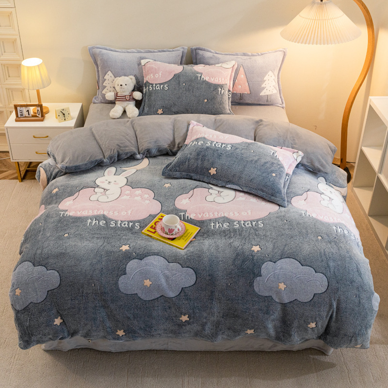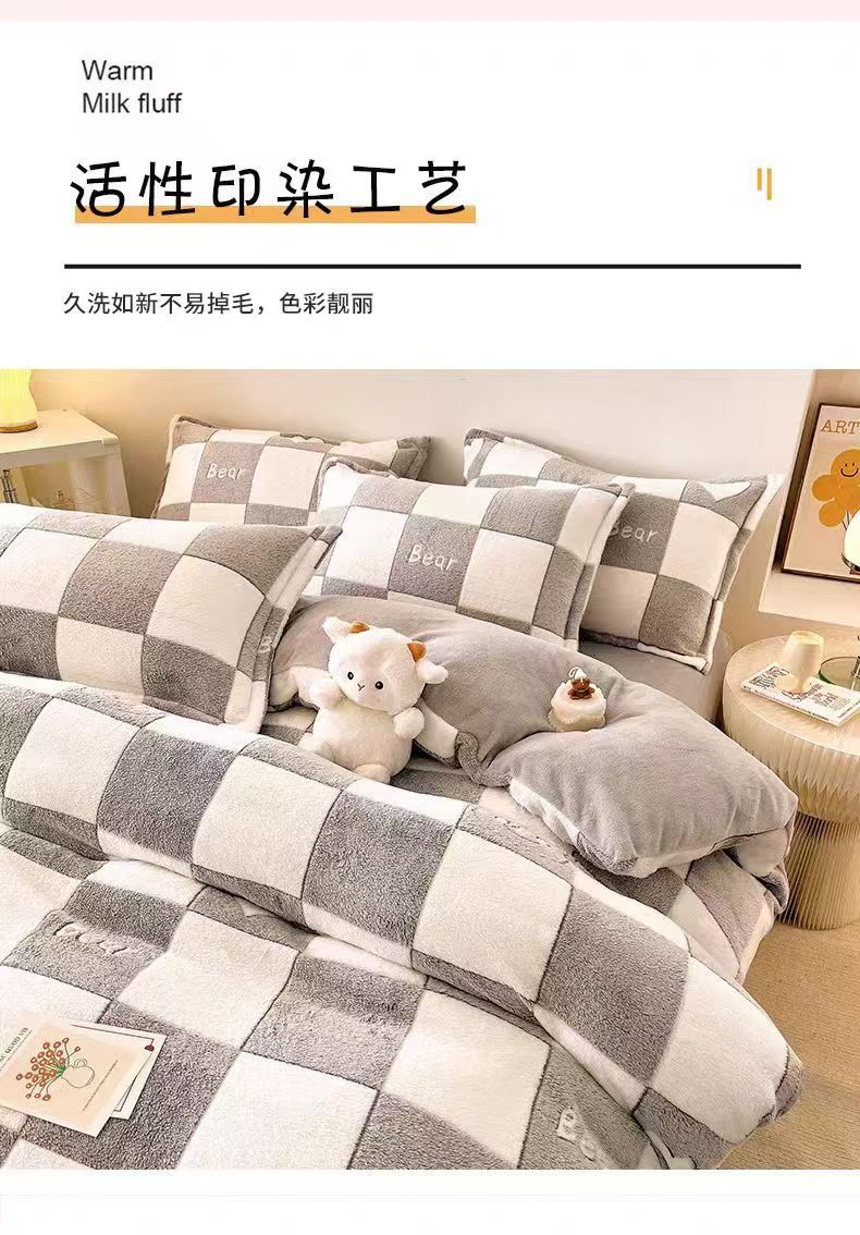 산호 양털 기모 두꺼운 퀼트 커버 스웨이드 침대 4 피스 세트 남성 침대 시트 3 피스 세트 우유 겨울 팔라이 플란넬