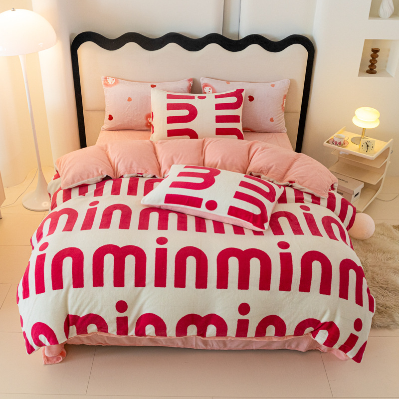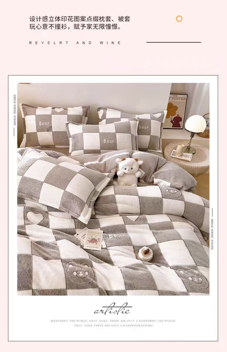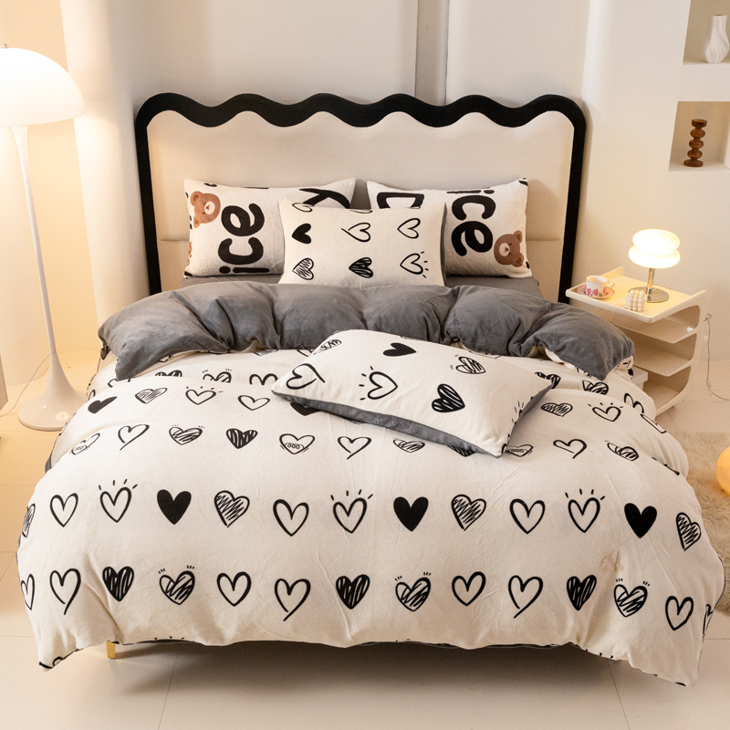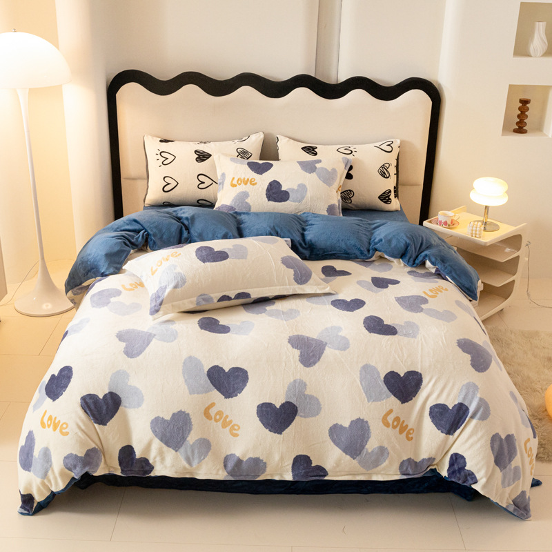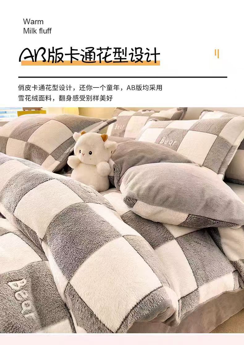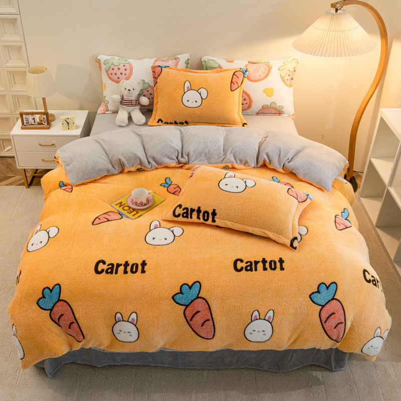 산호 양털 기모 두꺼운 퀼트 커버 스웨이드 침대 4 피스 세트 남성 침대 시트 3 피스 세트 우유 겨울 팔라이 플란넬