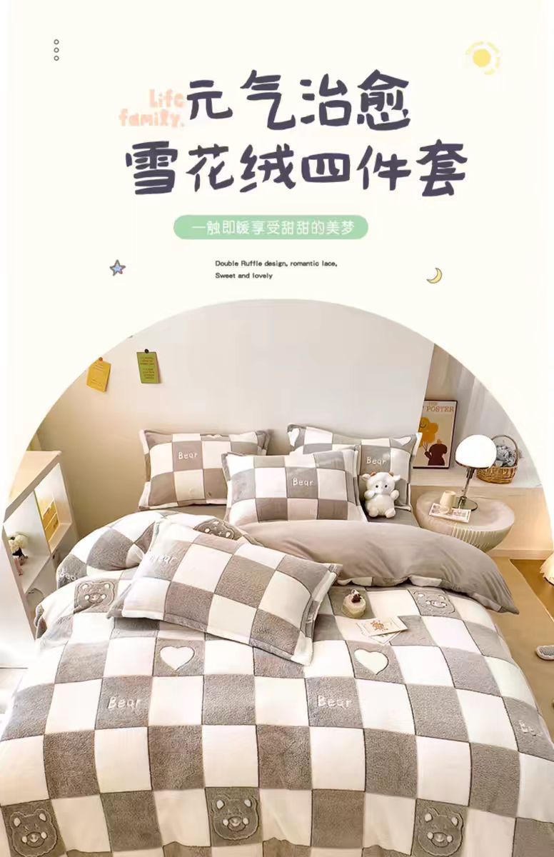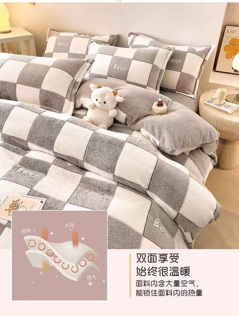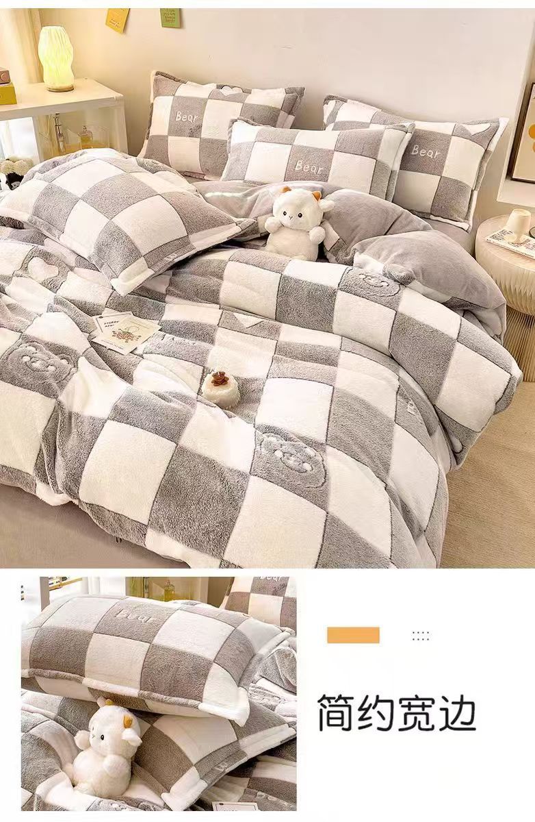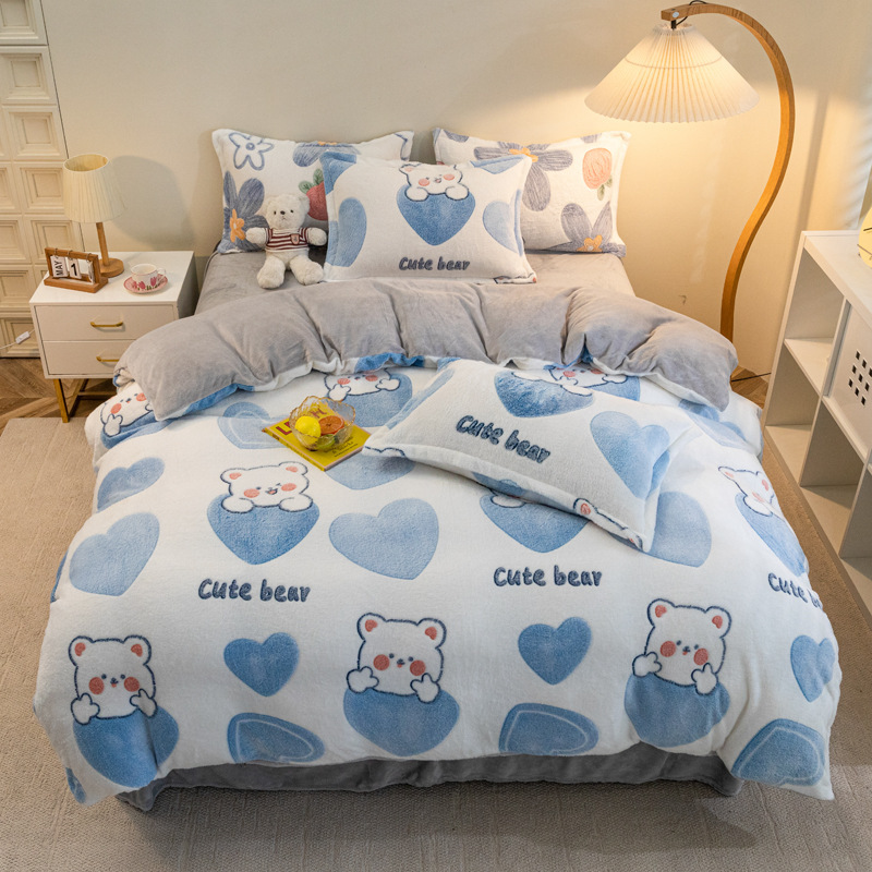 산호 양털 기모 두꺼운 퀼트 커버 스웨이드 침대 4 피스 세트 남성 침대 시트 3 피스 세트 우유 겨울 팔라이 플란넬스토어 가기