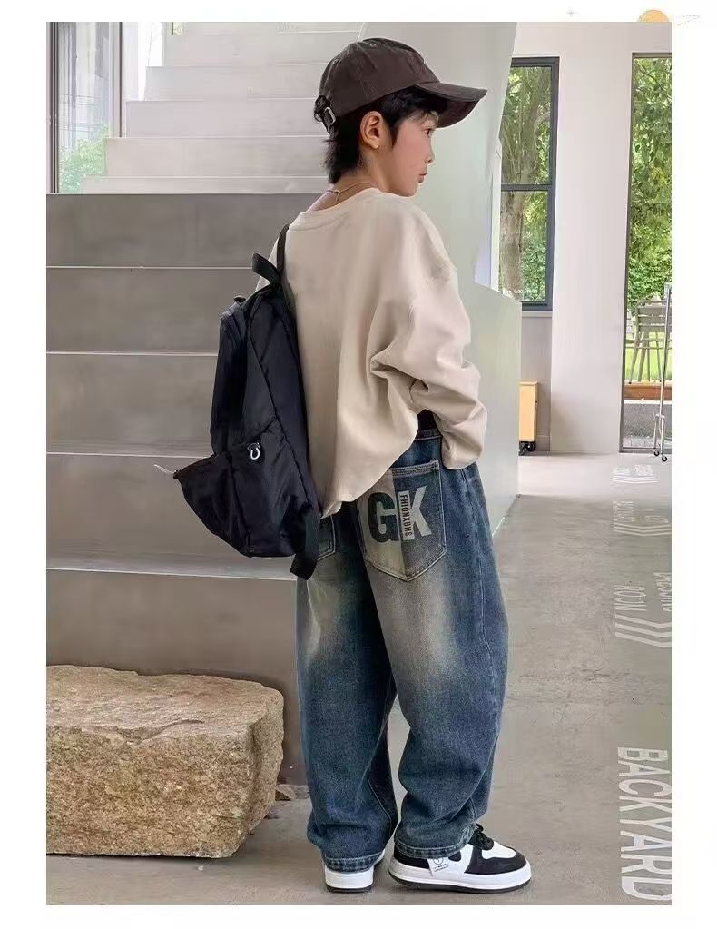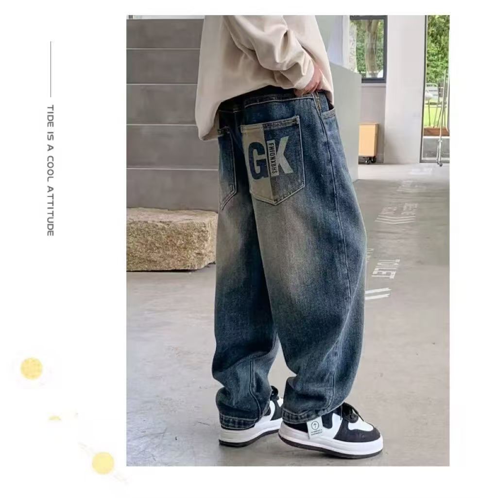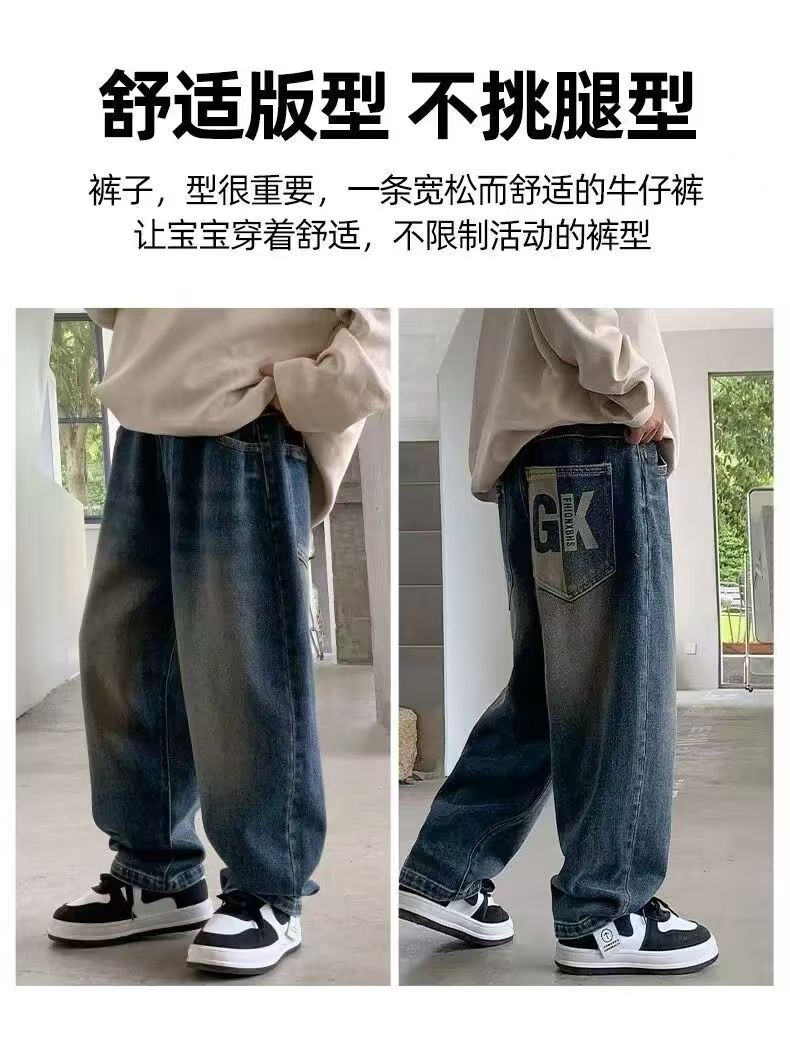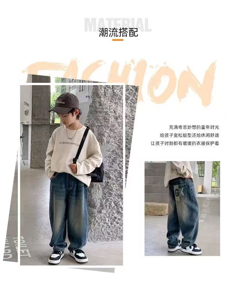 아동복 소년 가을 바지 2025 새로운 봄과 가을 어린이 소년 가을 중대형 어린이 청바지 트렌디 바지스토어 가기
