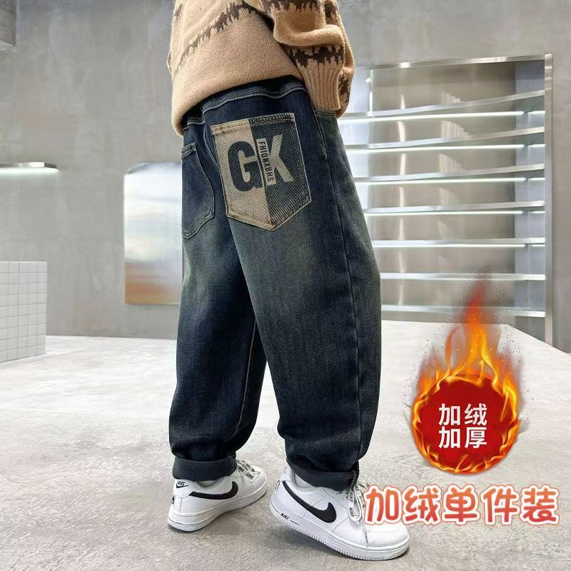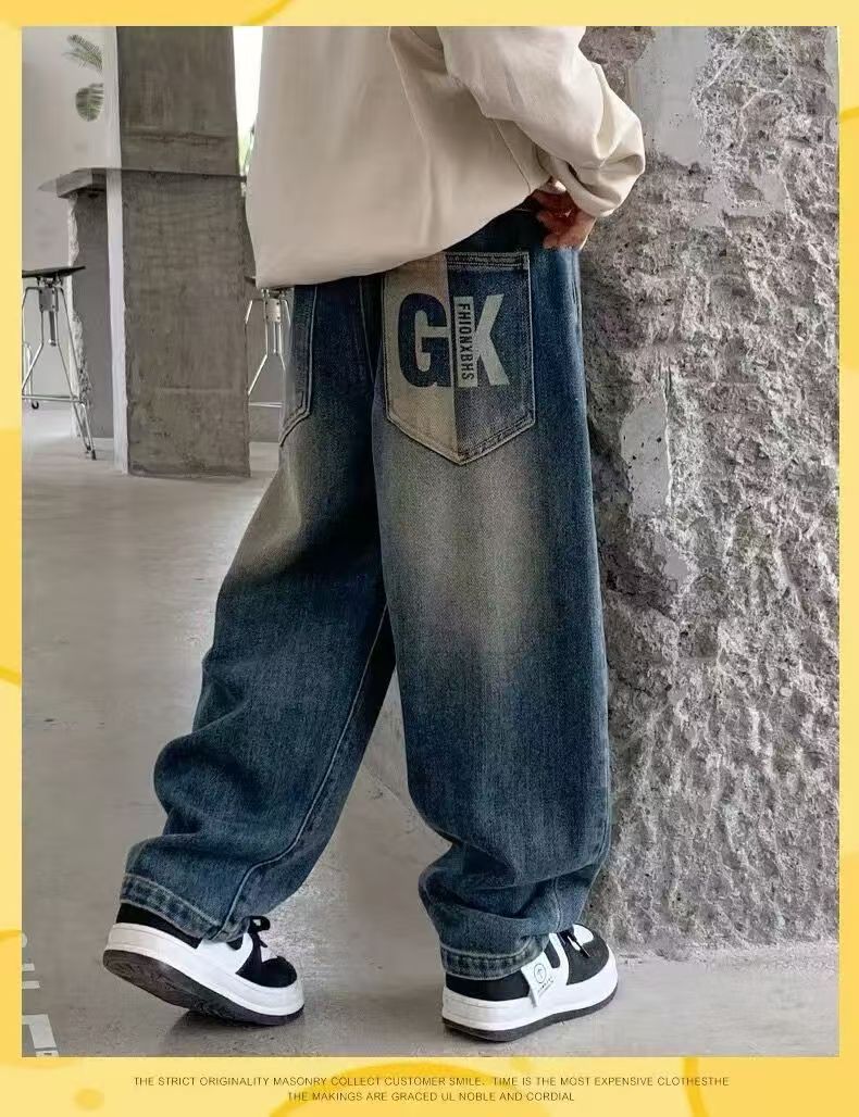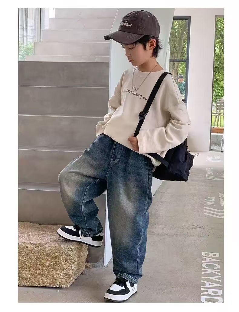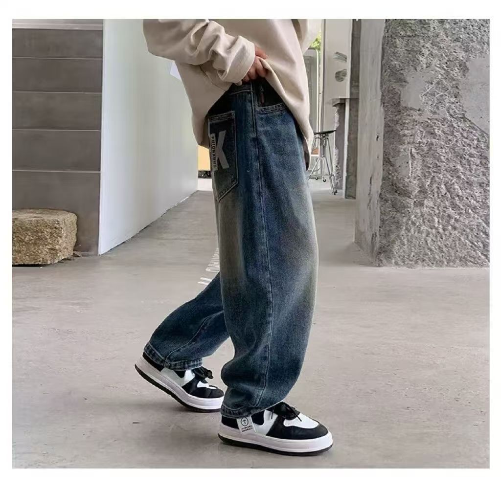 아동복 소년 가을 바지 2025 새로운 봄과 가을 어린이 소년 가을 중대형 어린이 청바지 트렌디 바지스토어 가기