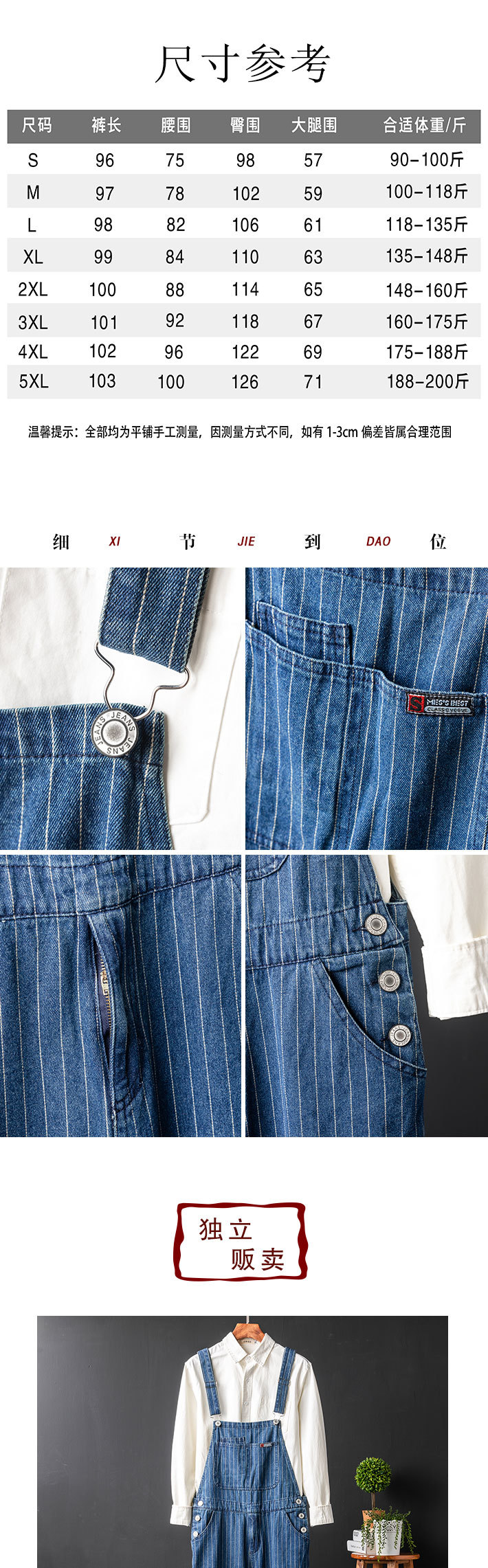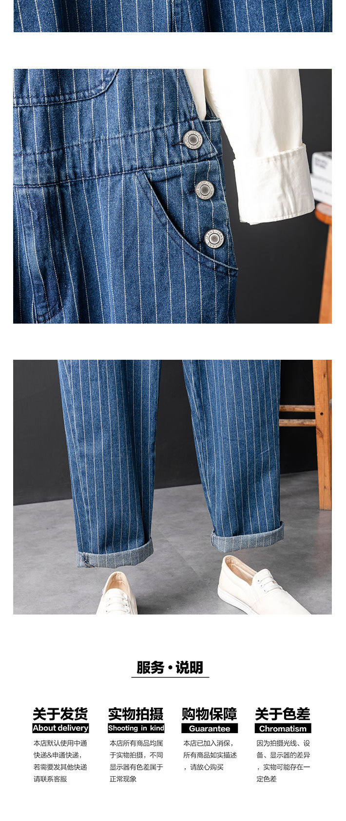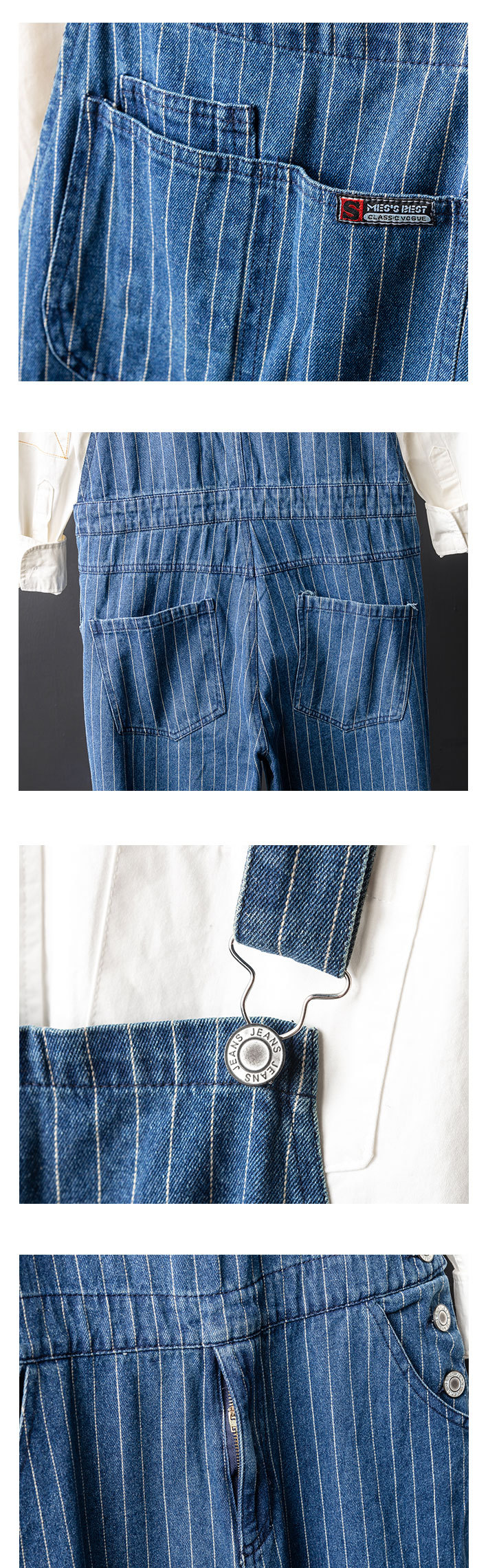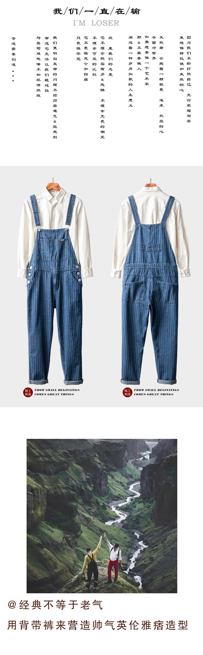 아메리칸 스타일 빈티지 툴링 데님 남성용 트렌디 브랜드 스트레이트 루즈 점프 수트 남성용 청소년 스트라이프 서스펜더 팬츠스토어 가기