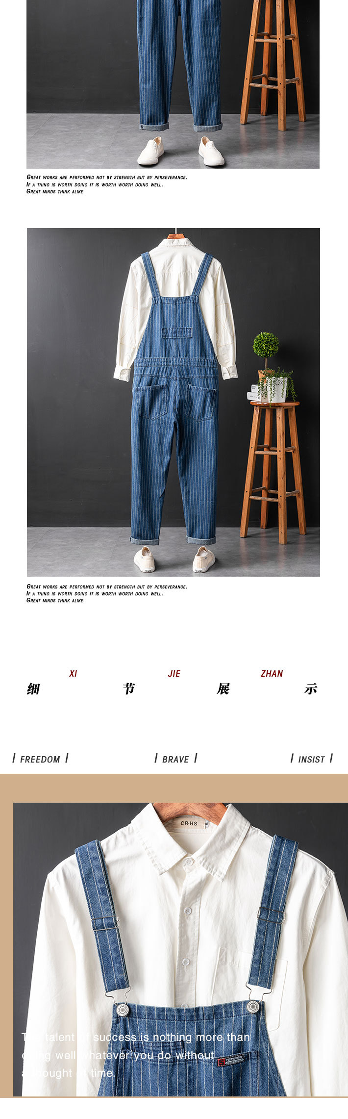 아메리칸 스타일 빈티지 툴링 데님 남성용 트렌디 브랜드 스트레이트 루즈 점프 수트 남성용 청소년 스트라이프 서스펜더 팬츠