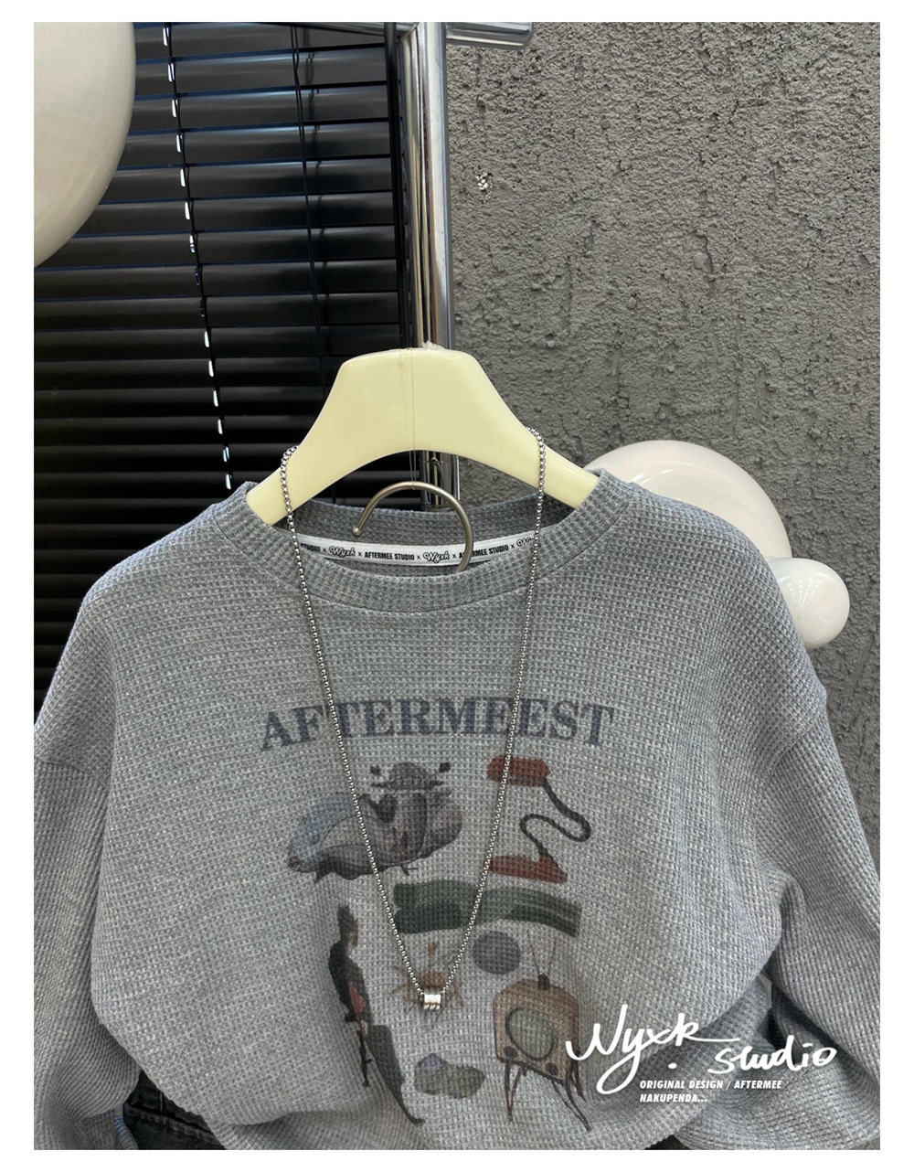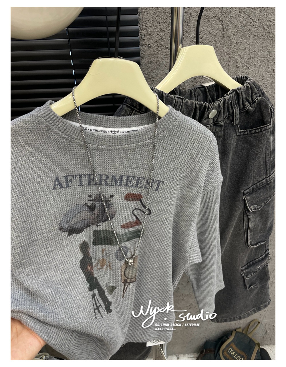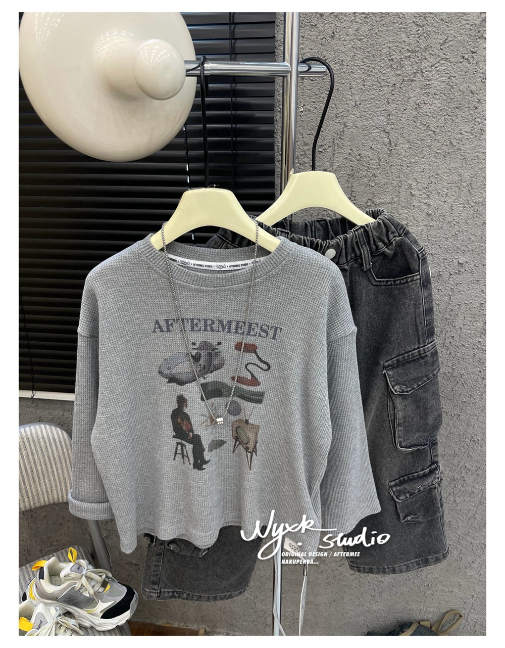 어린이 두꺼운 디지털 인쇄 긴 소매 티셔츠 와플베이스 셔츠 2024 가을 새 소년의 느슨한 탑스토어 가기