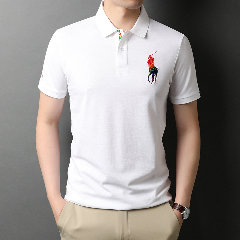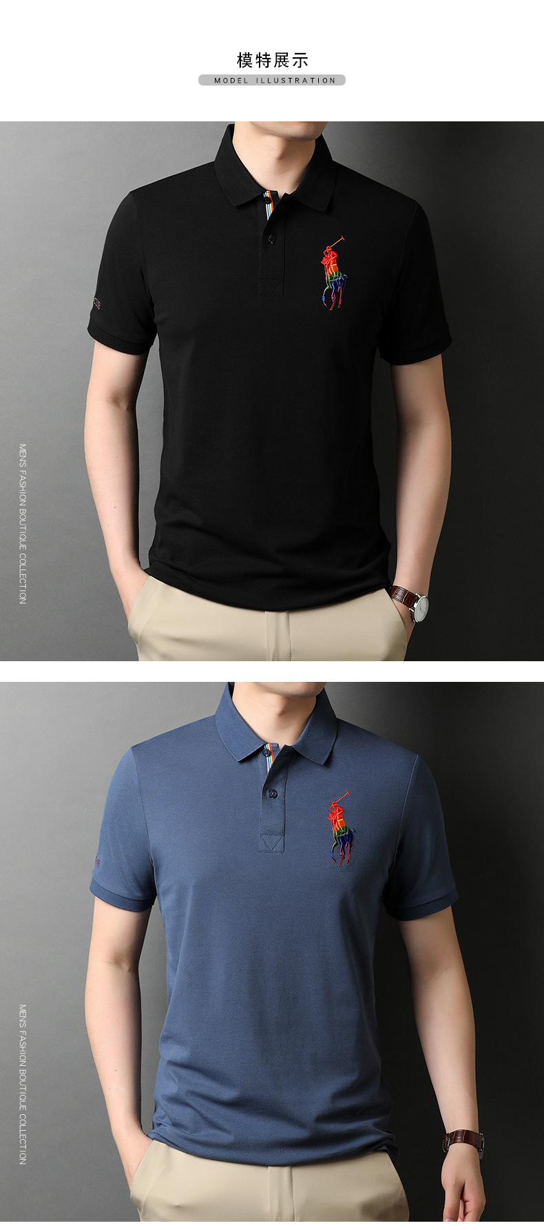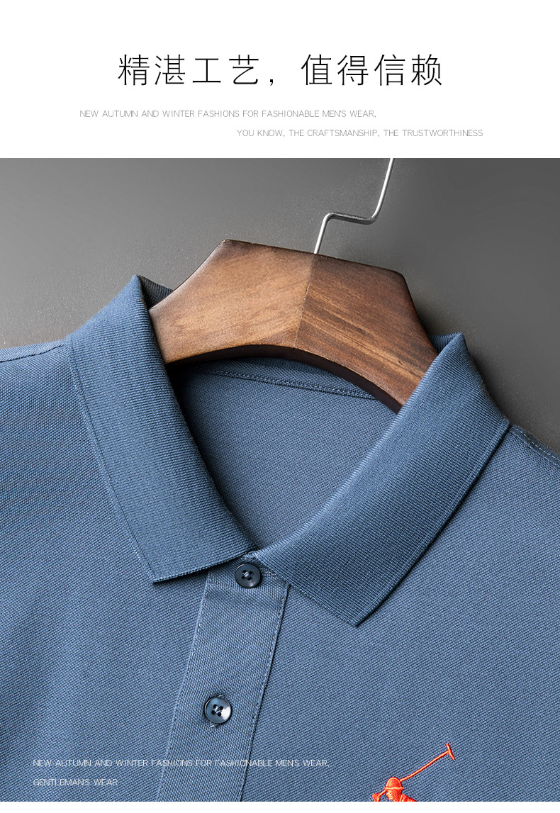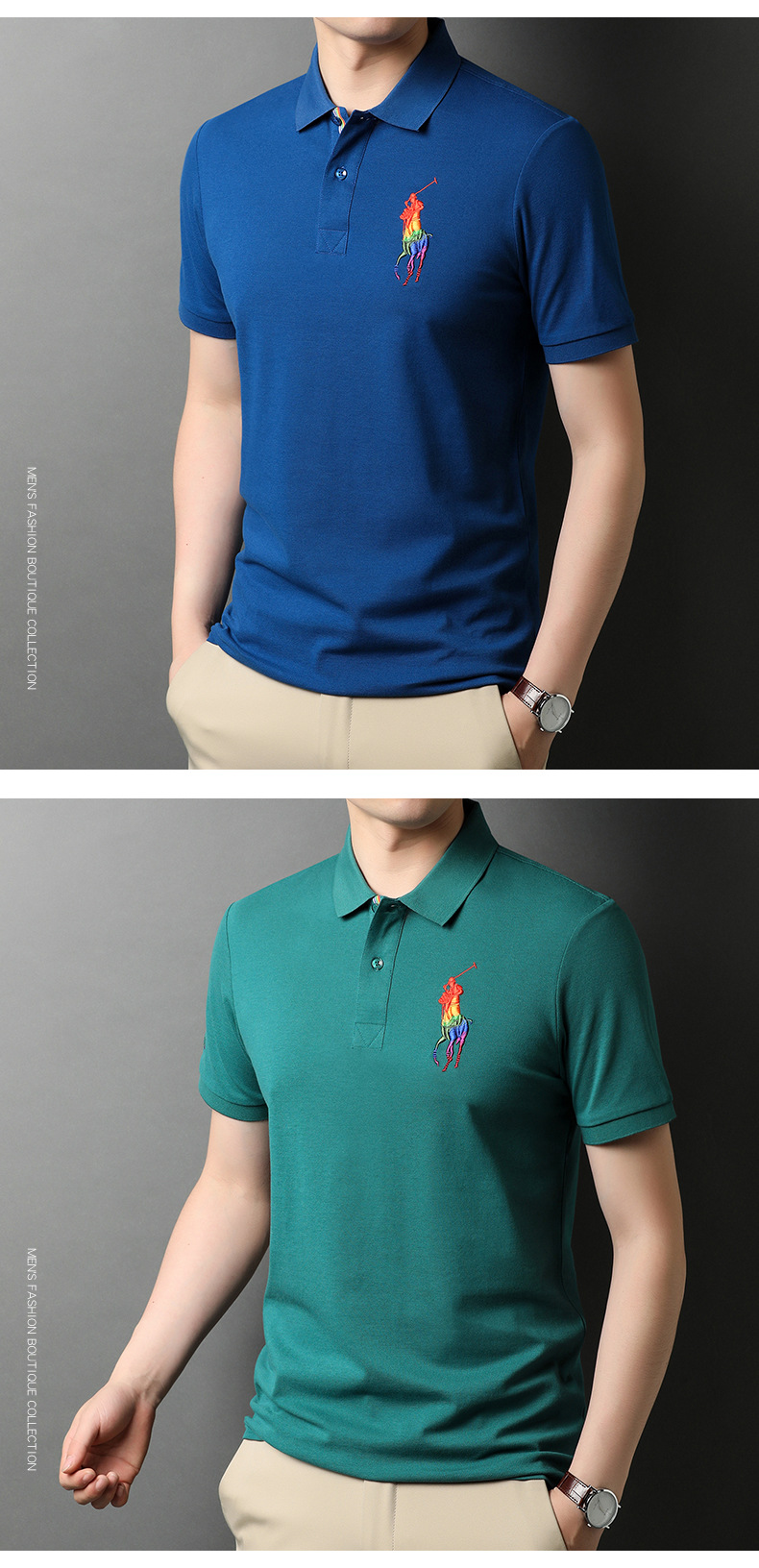 남성 청소년 하이 엔드 여름 옷깃 자수 반팔 비즈니스 캐주얼 패션 자카드 칼라 코튼 티셔츠 아빠 셔츠 탑