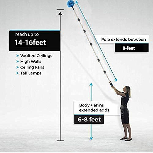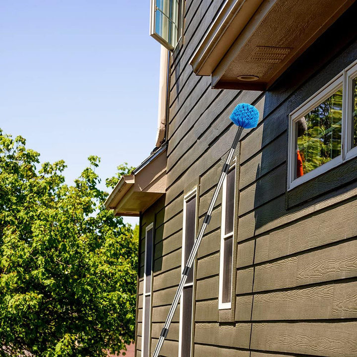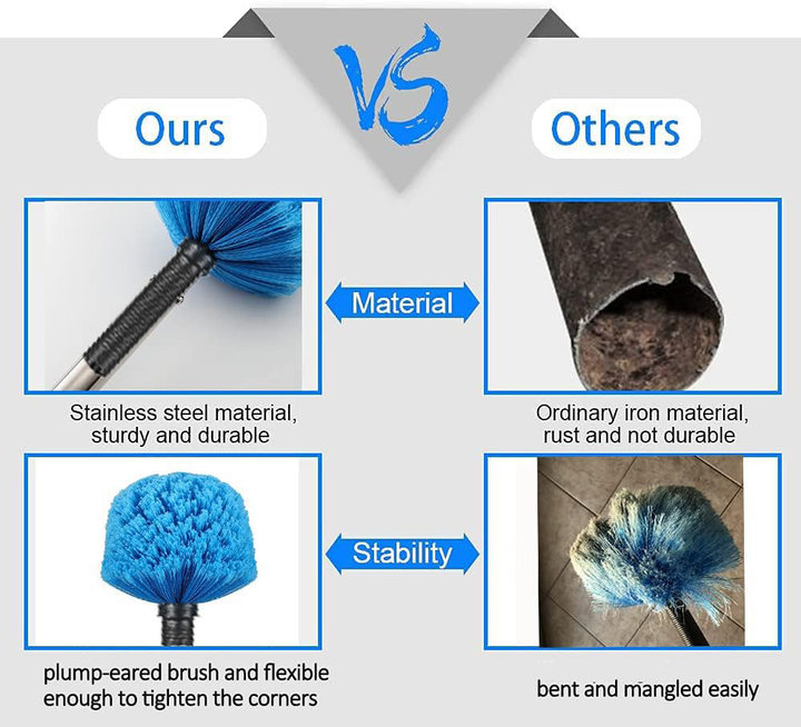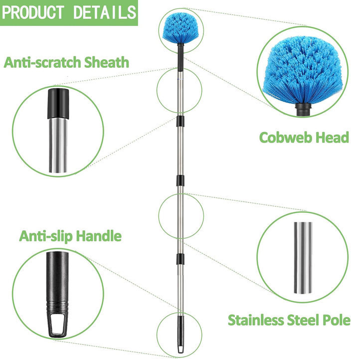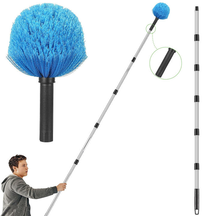 带杆的蛛网除尘器,可调节不锈钢杆+清洁刷,适用于墙壁梁架灯具和窗帘
