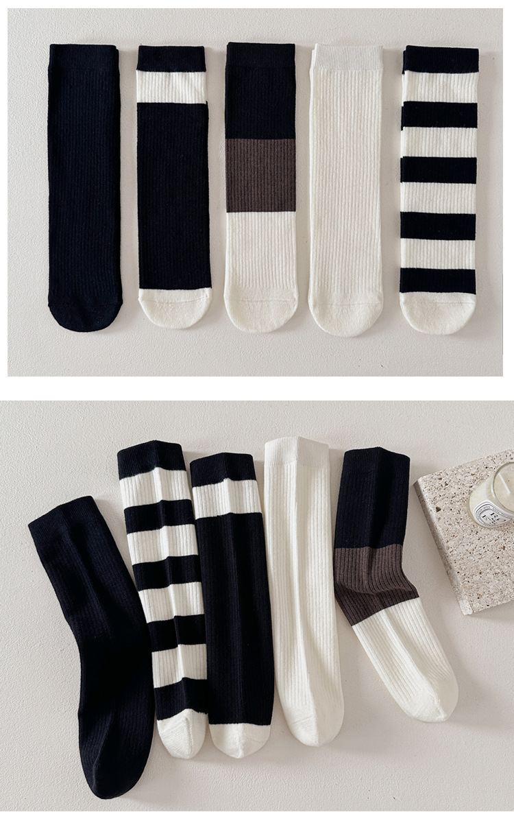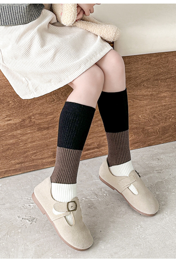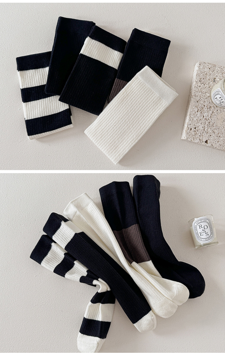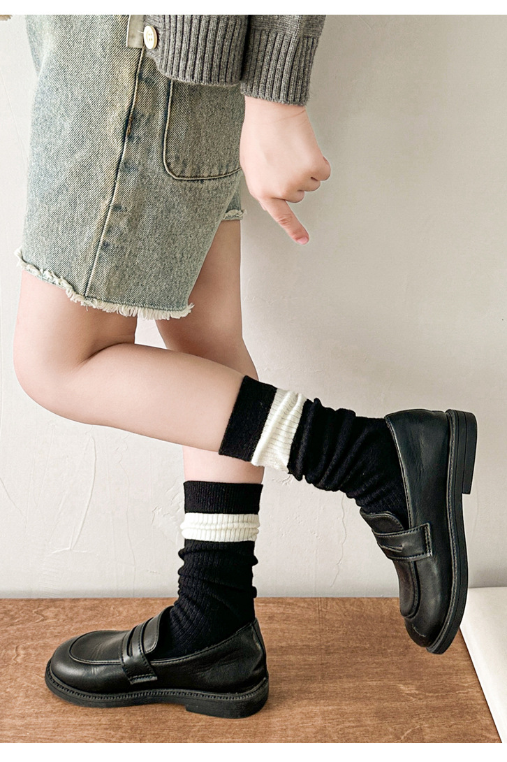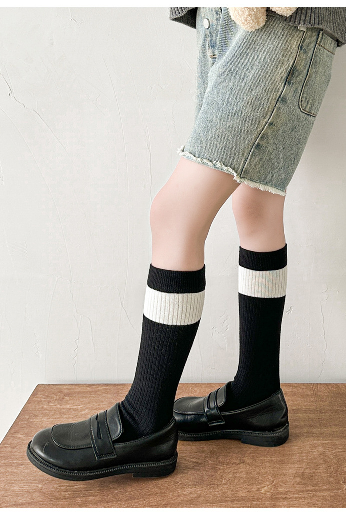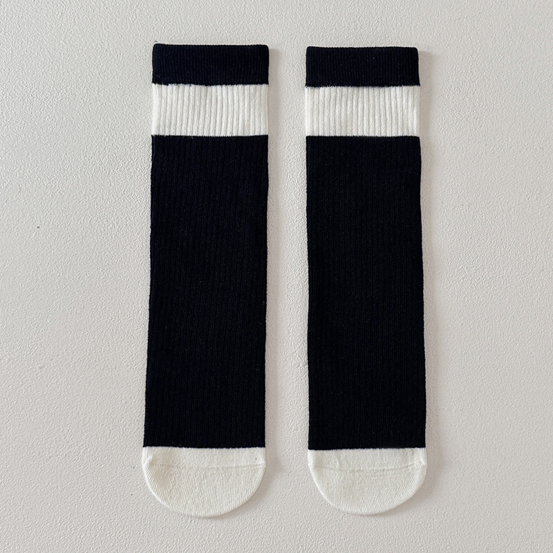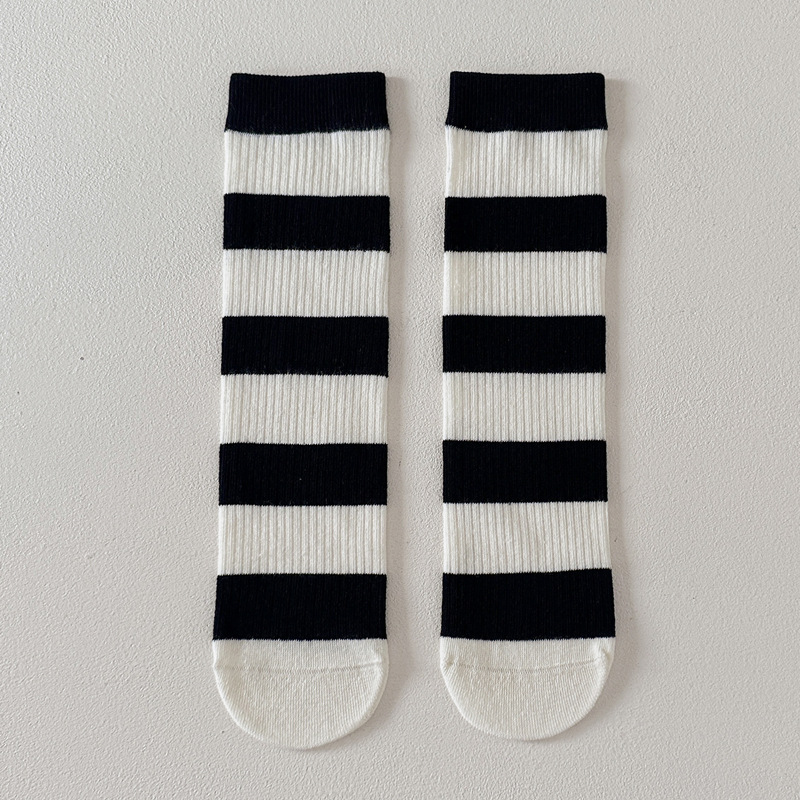 어린이 양말 가을과 겨울 튜브 양말 한국 소년 소녀 흑백 줄무늬 스타킹 학술 스타일 다목적 종아리 양말