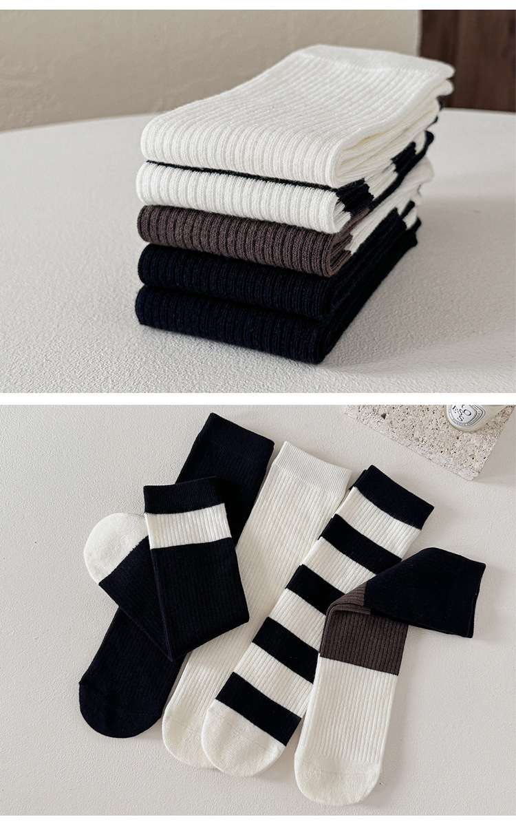 어린이 양말 가을과 겨울 튜브 양말 한국 소년 소녀 흑백 줄무늬 스타킹 학술 스타일 다목적 종아리 양말스토어 가기