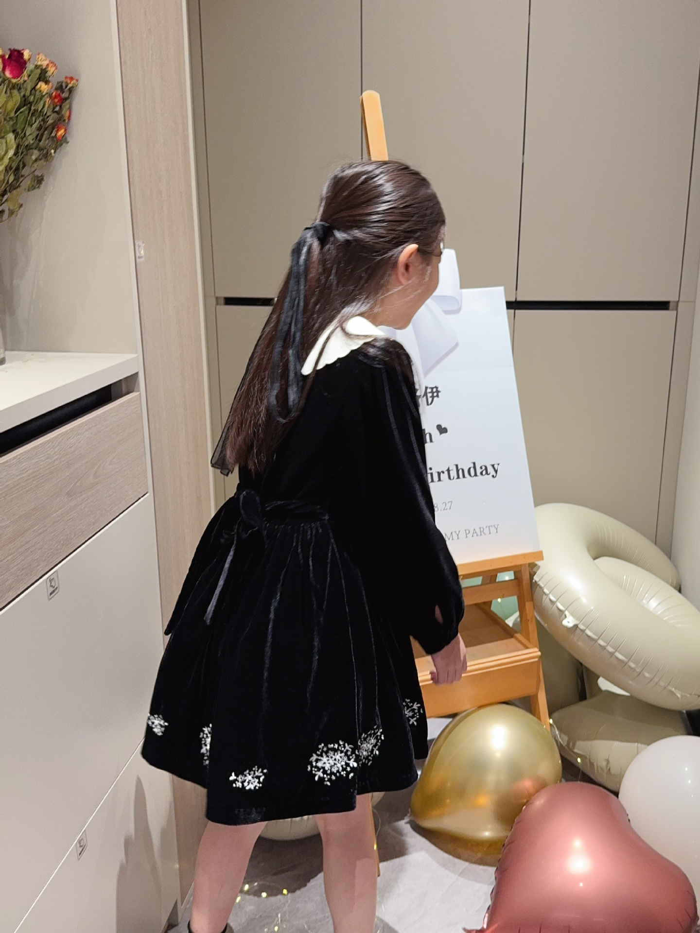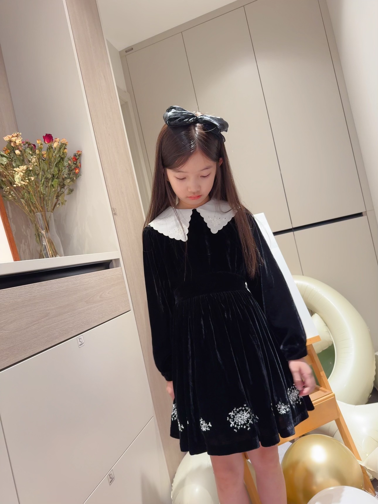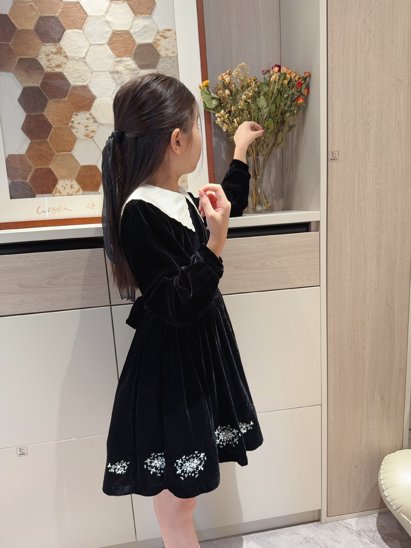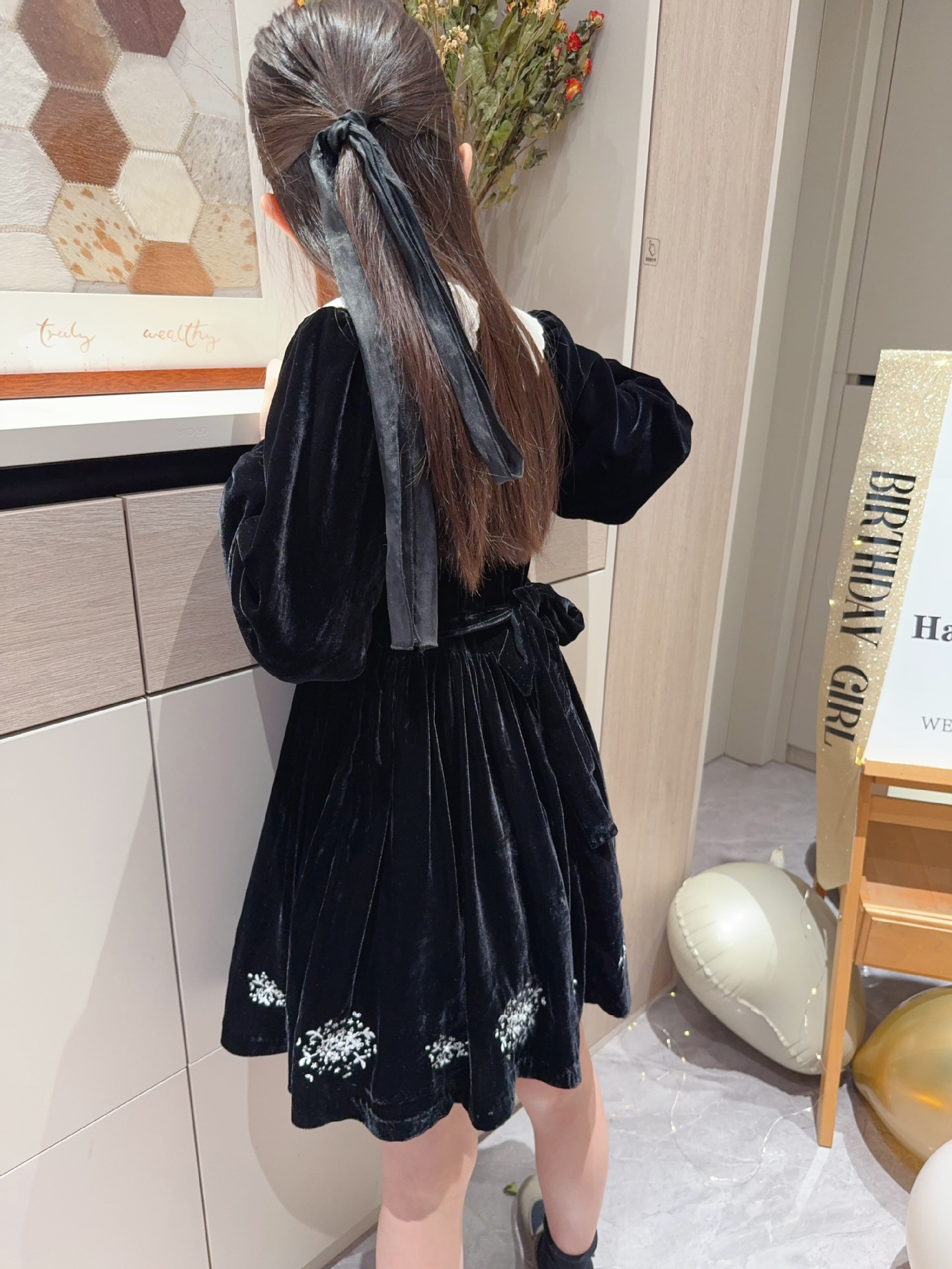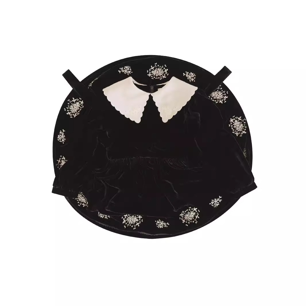2025 가을 겨울 신상 아동복 여아용 블랙 벨벳 긴팔 드레스 중소 아동용 자수 공주 드레스스토어 가기