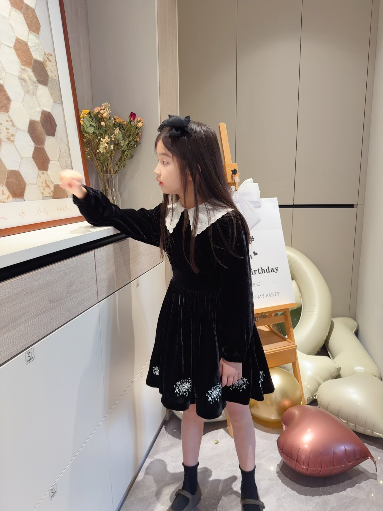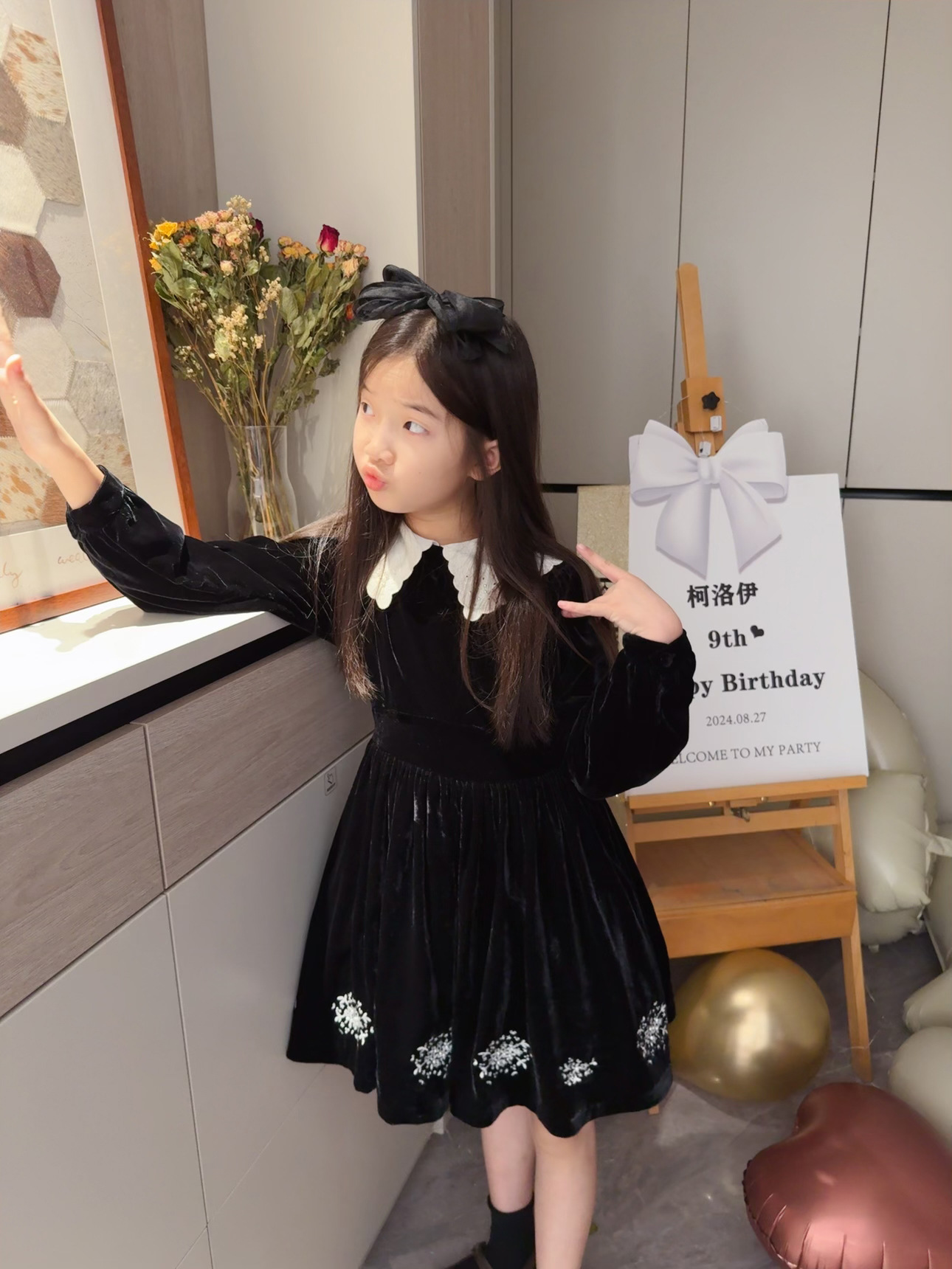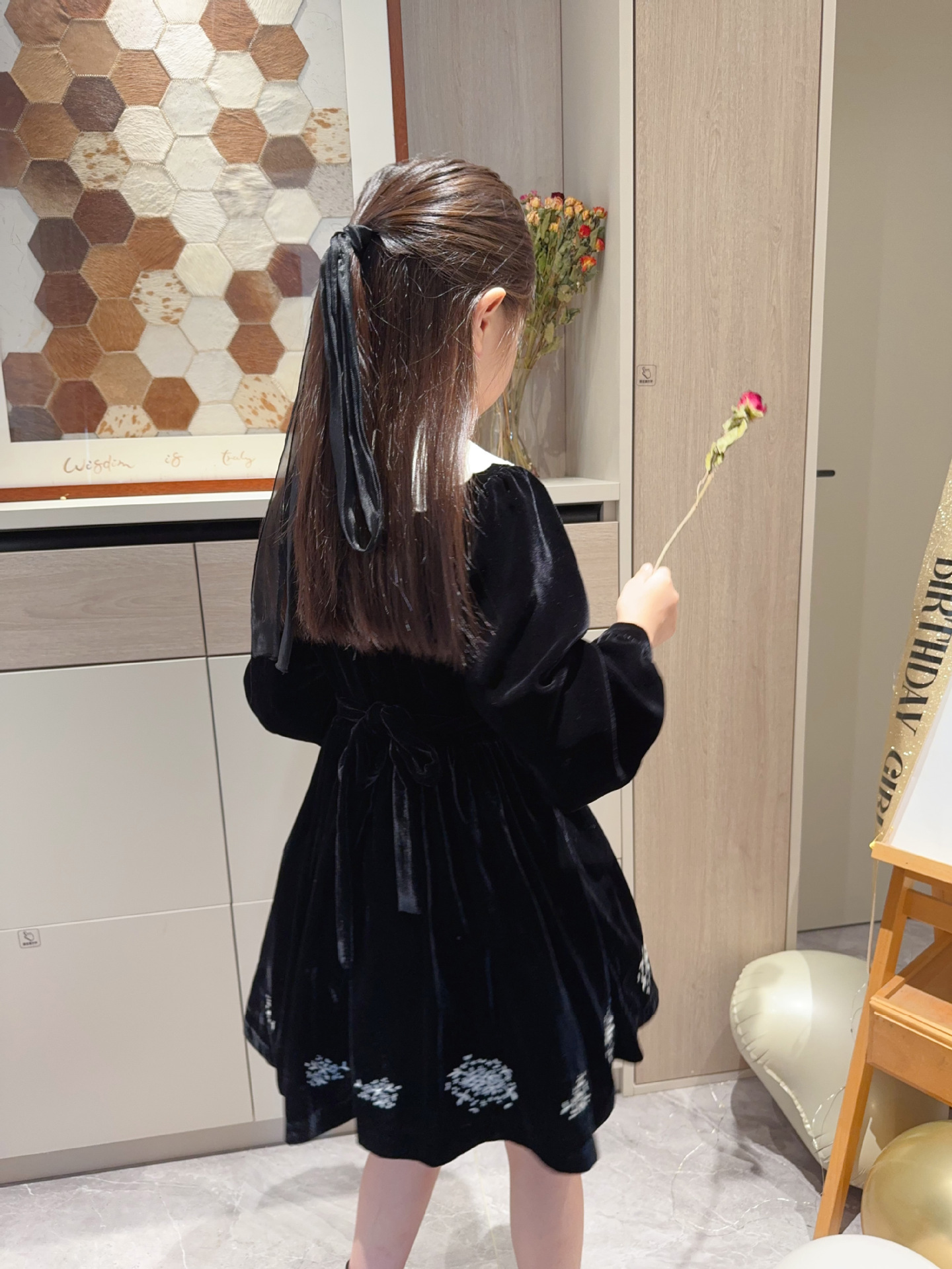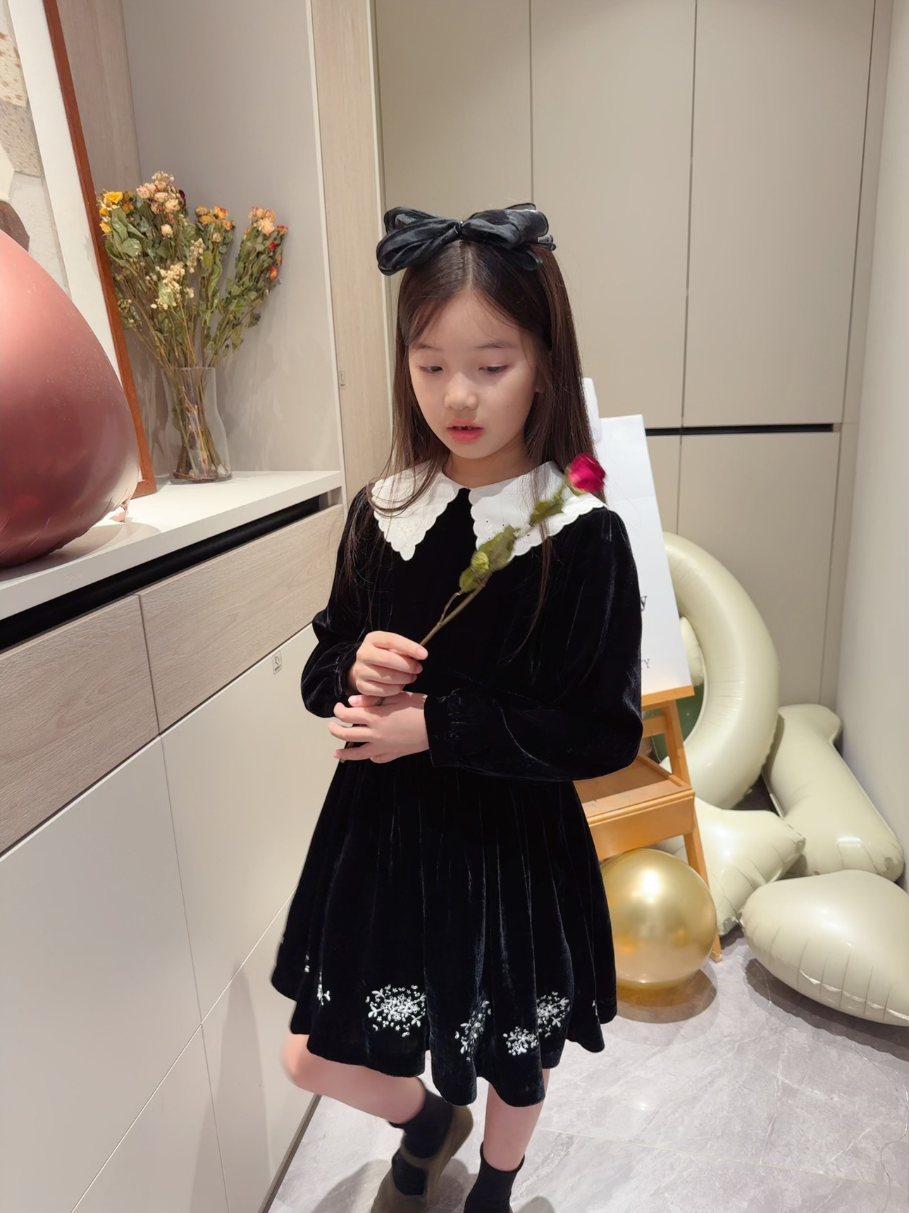 2025 가을 겨울 신상 아동복 여아용 블랙 벨벳 긴팔 드레스 중소 아동용 자수 공주 드레스스토어 가기