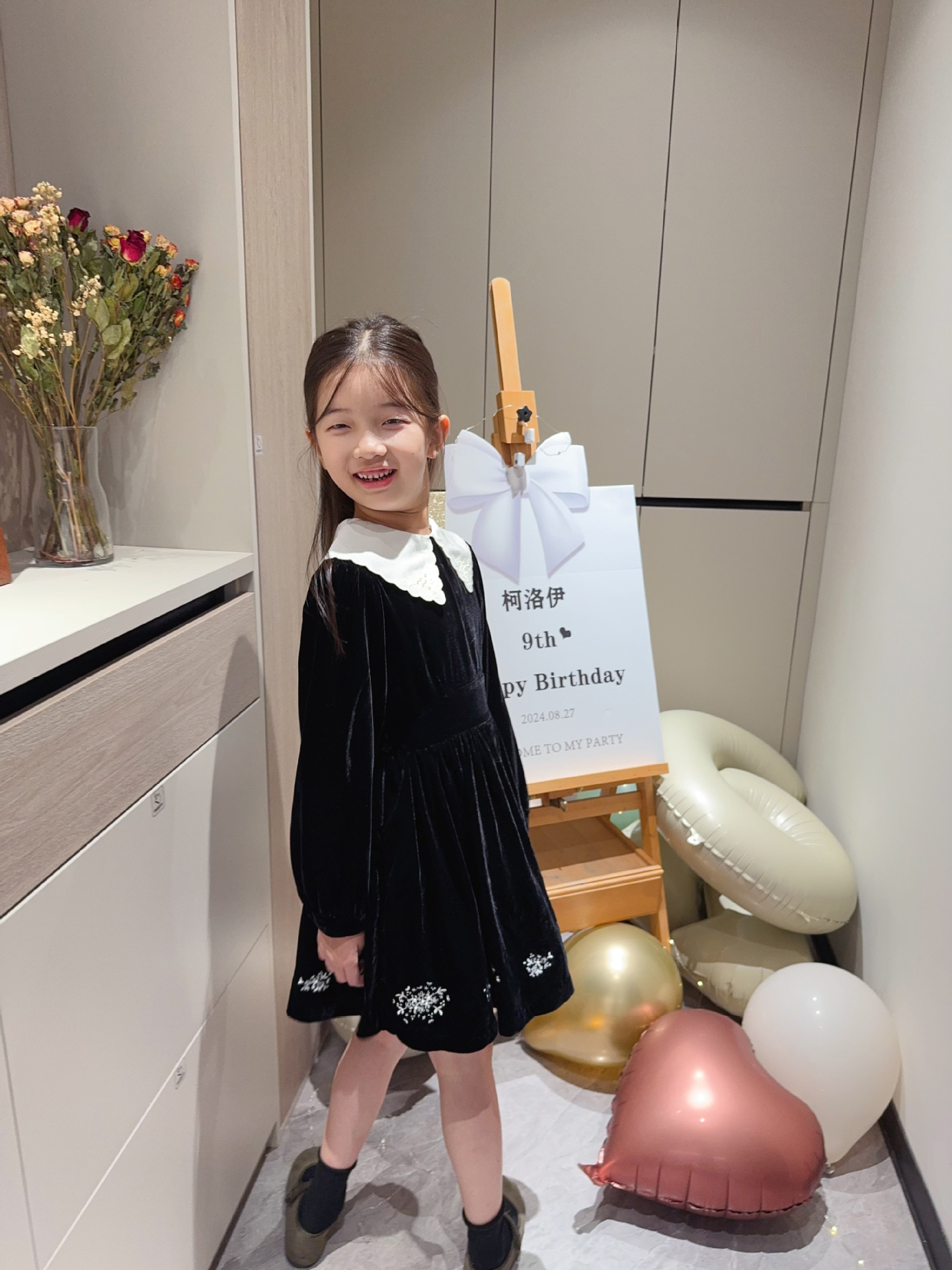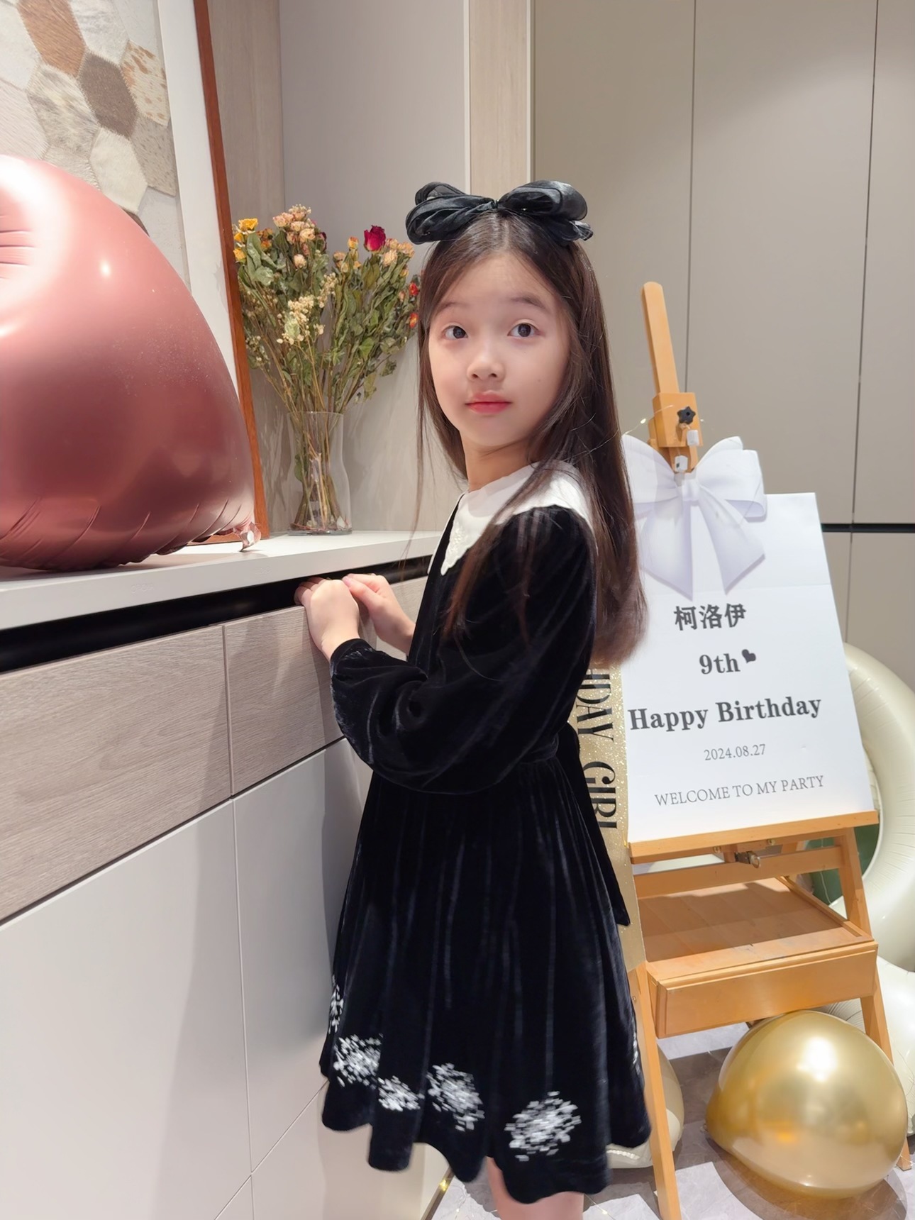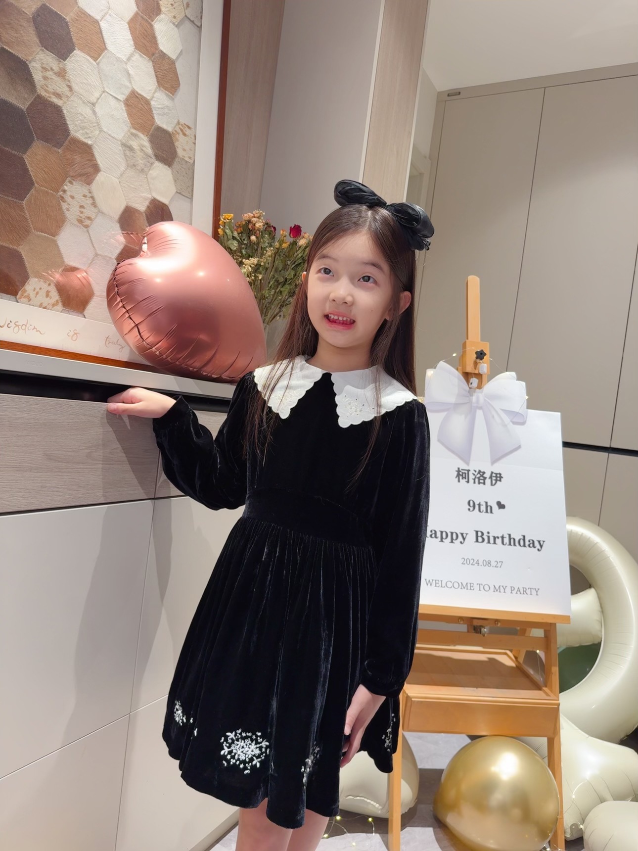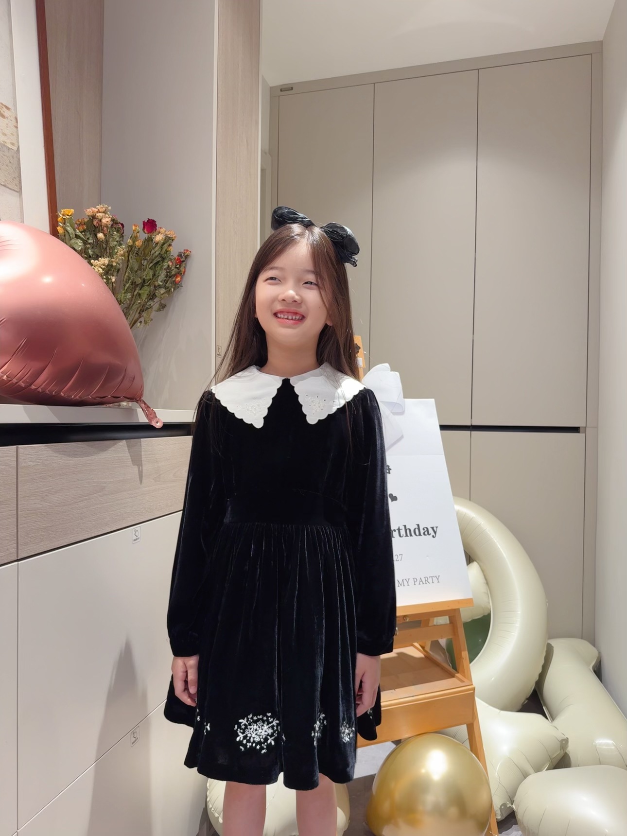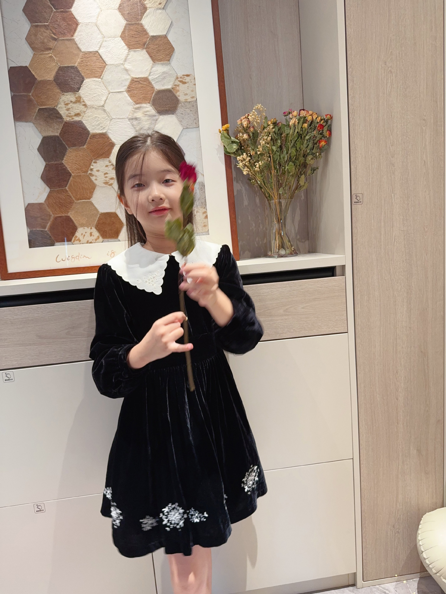 2025 가을 겨울 신상 아동복 여아용 블랙 벨벳 긴팔 드레스 중소 아동용 자수 공주 드레스스토어 가기