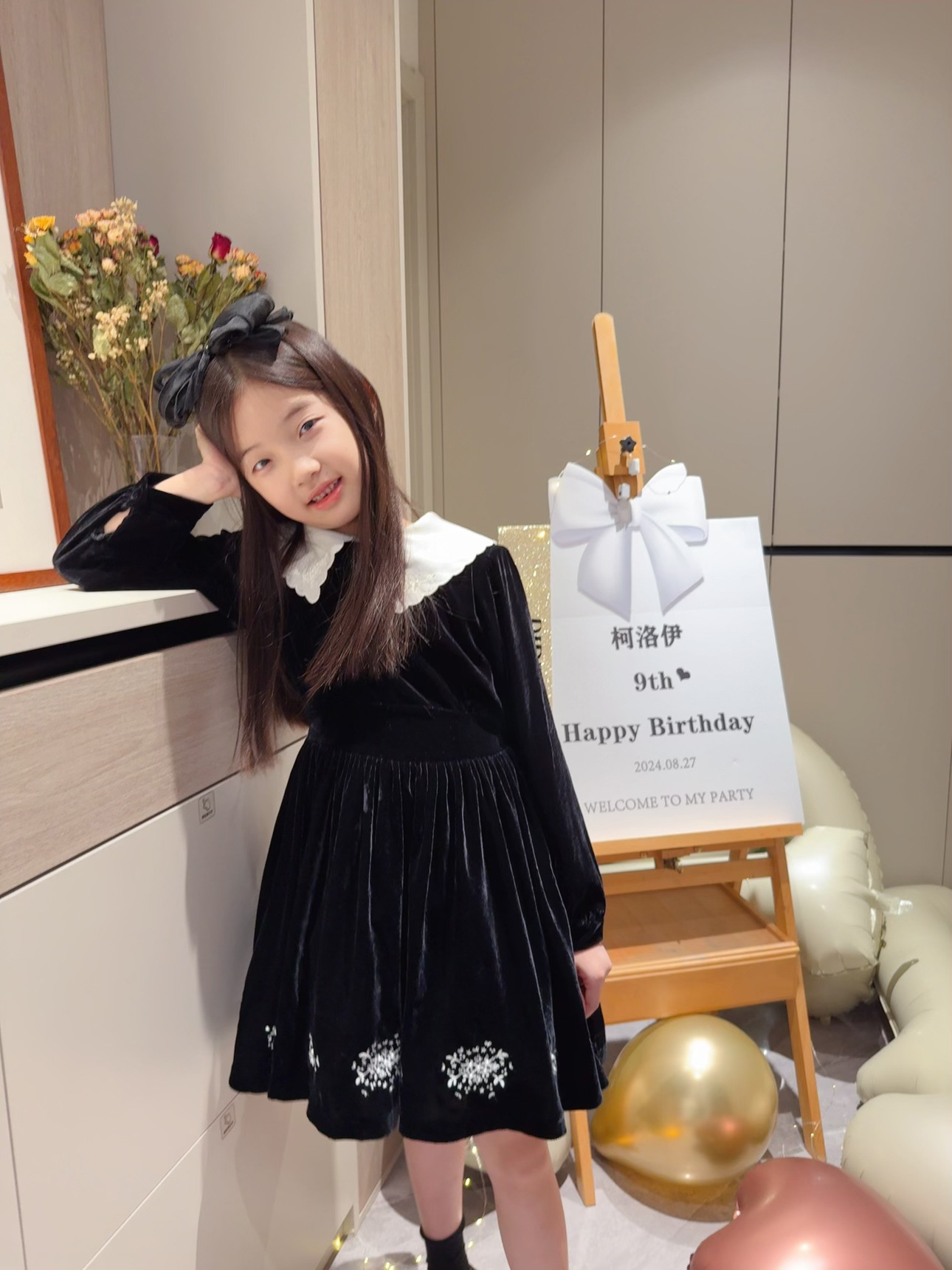 2025 가을 겨울 신상 아동복 여아용 블랙 벨벳 긴팔 드레스 중소 아동용 자수 공주 드레스