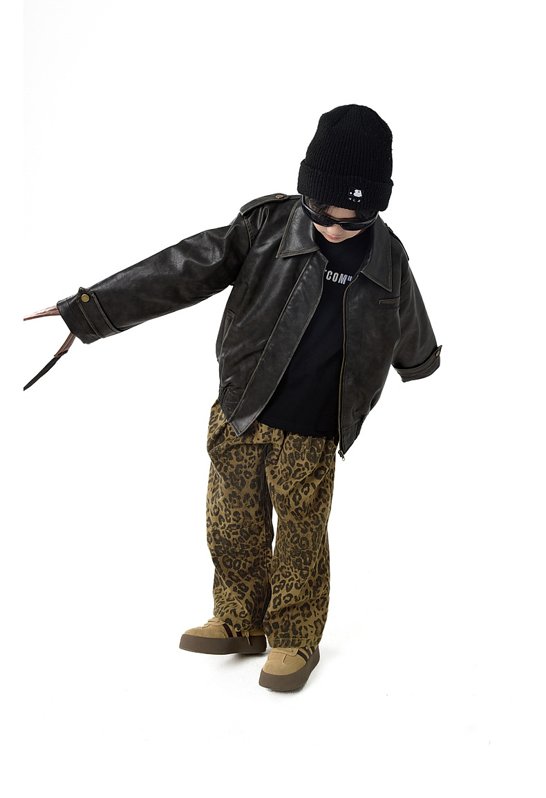 호저우 지리 아동복 한국 스타일 남아 캐주얼 바지 레오파드 패턴 바지 팬더 원원 2025 신상 아동 바지 도매스토어 가기