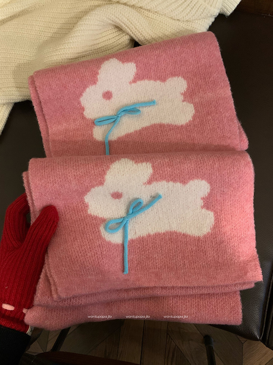 가을과 겨울 새로운 따뜻한 니트 스카프 여성의 겨울 하이 엔드 센스 귀여운 토끼 활 캐주얼 내한성 스카프스토어 가기