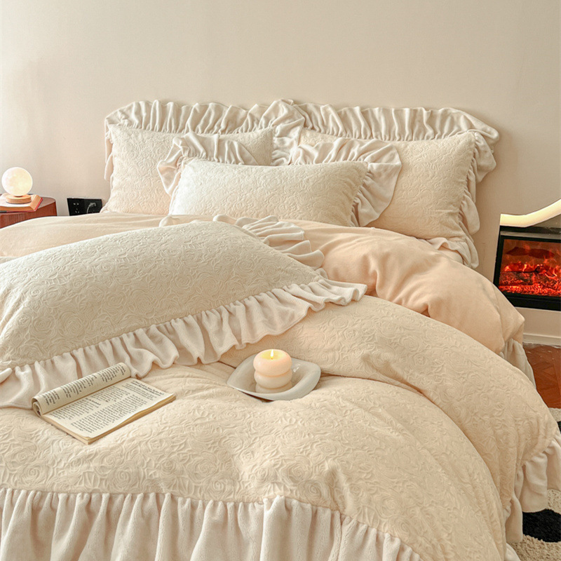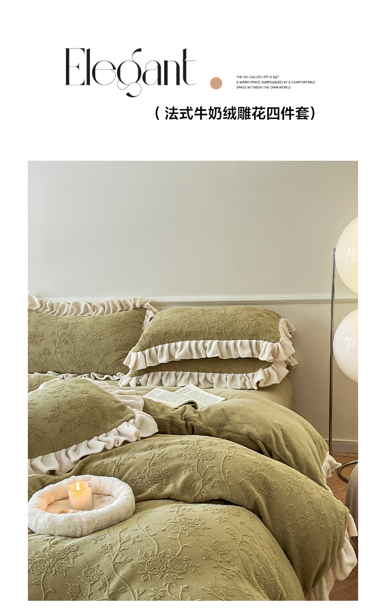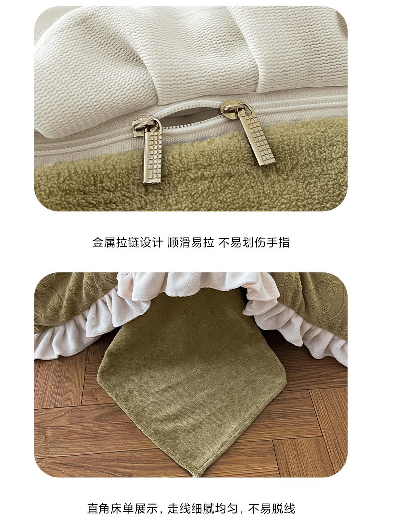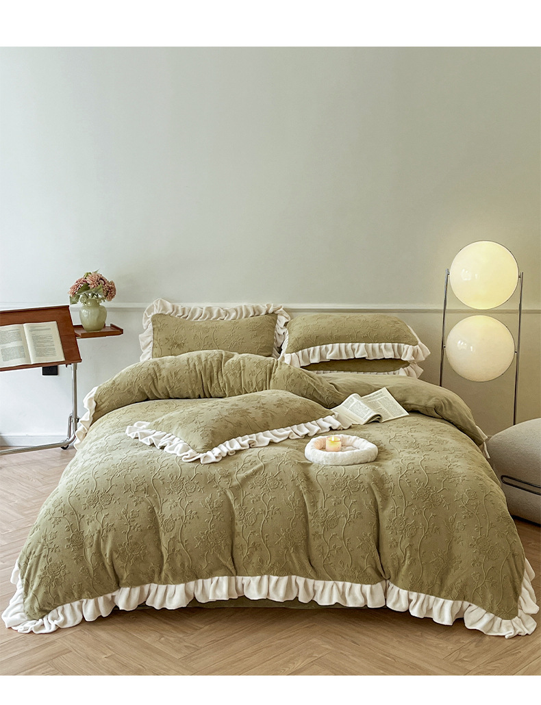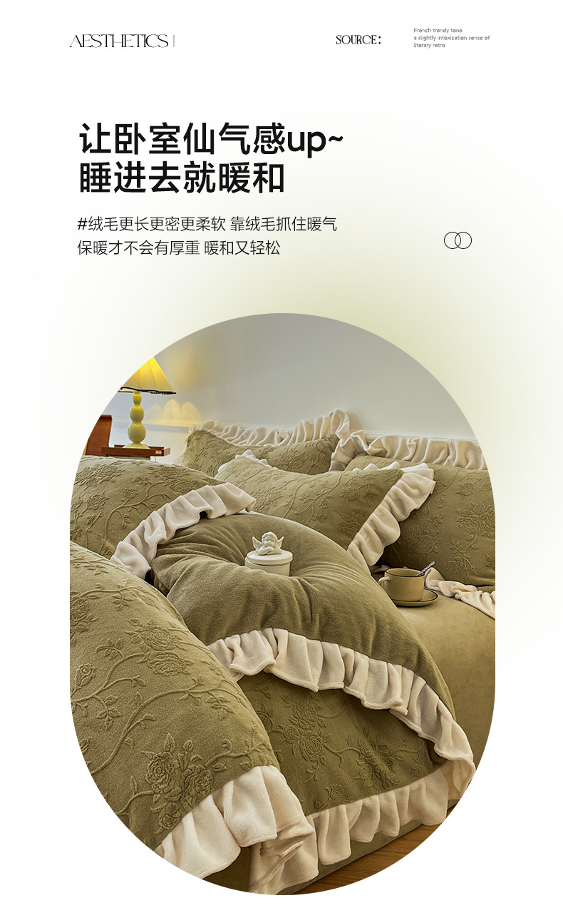 가벼운 고급 모성 및 유아 학년 밀크 벨벳 4 피스 세트 가을과 겨울 두꺼운 따뜻한 조각 3 피스 세트 세척 가능한 정전기 방지 퀼트 커버