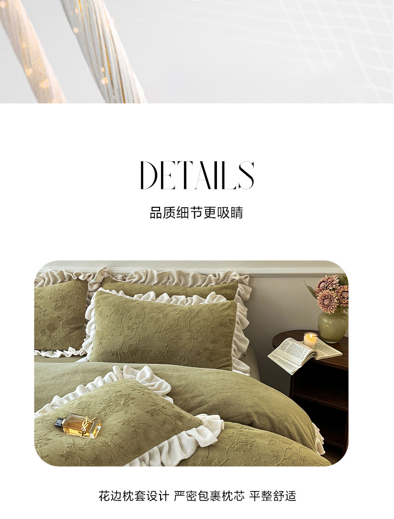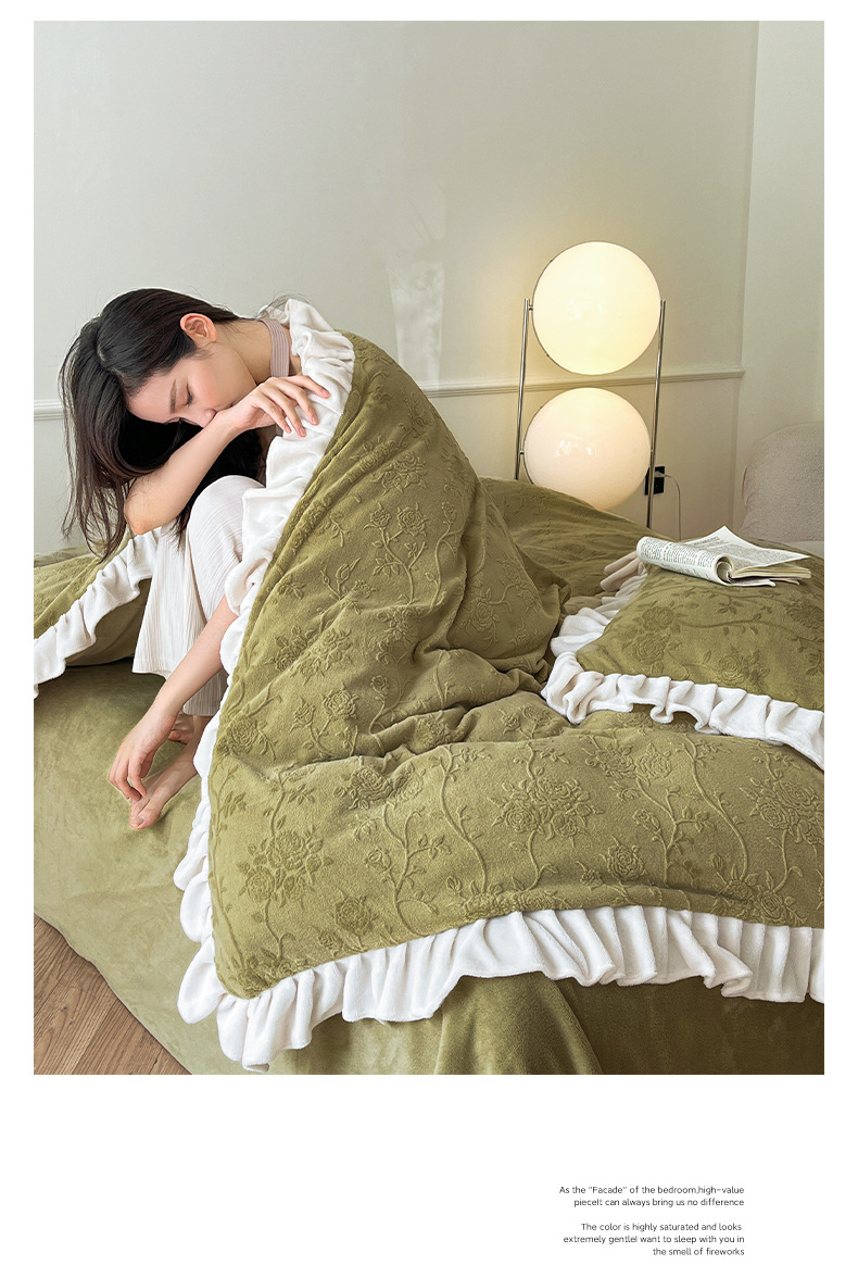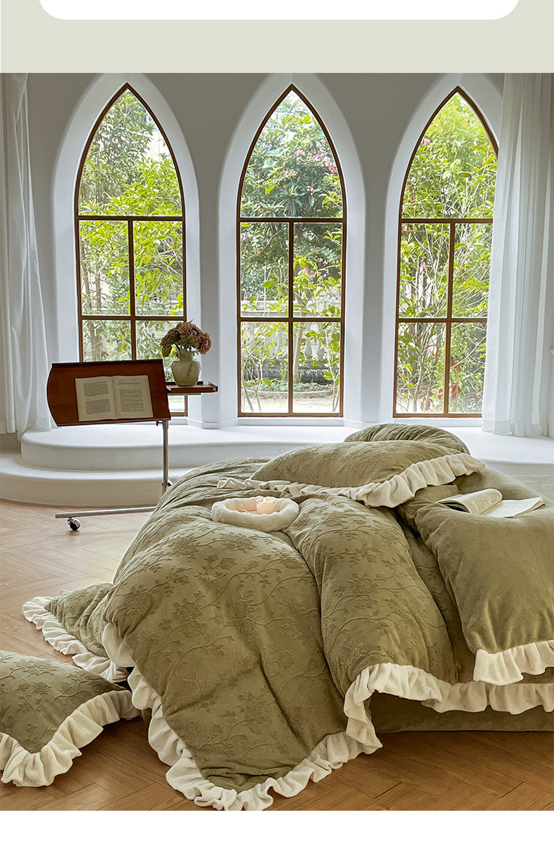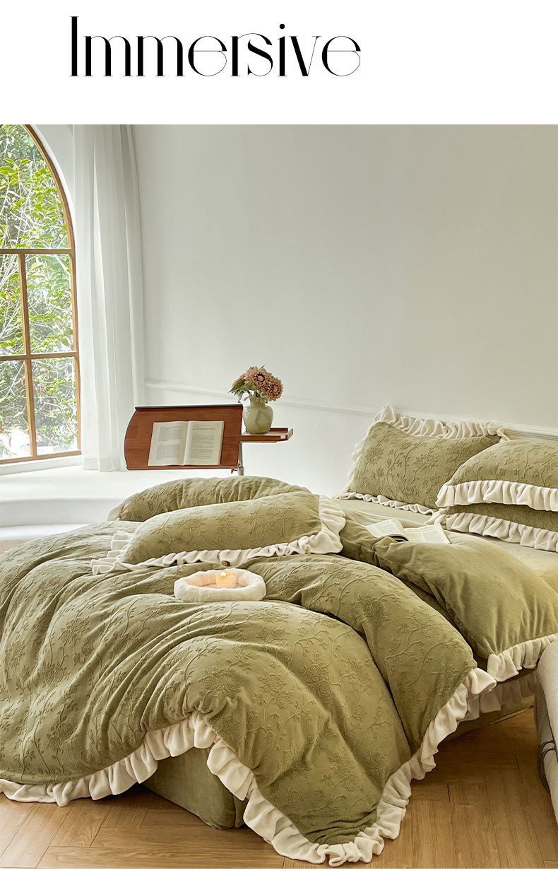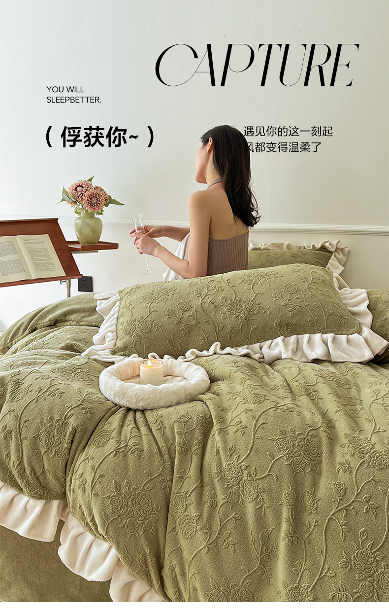 가벼운 고급 모성 및 유아 학년 밀크 벨벳 4 피스 세트 가을과 겨울 두꺼운 따뜻한 조각 3 피스 세트 세척 가능한 정전기 방지 퀼트 커버