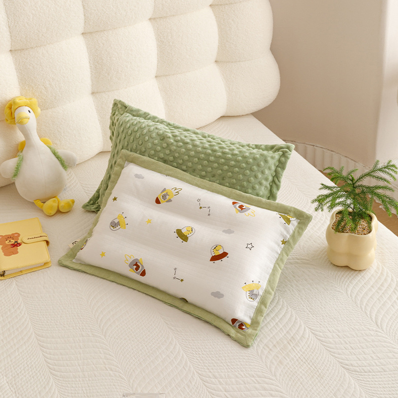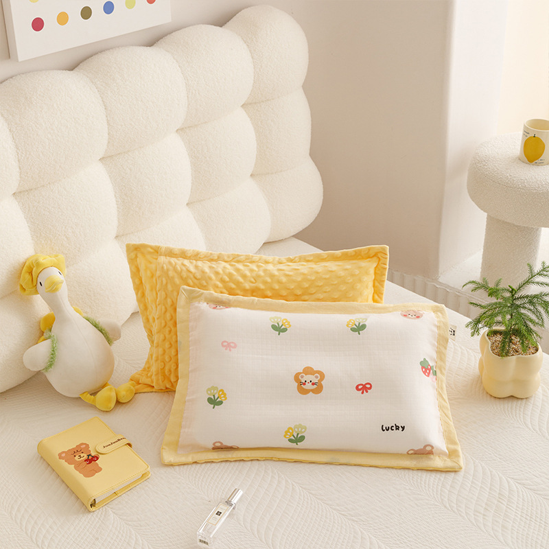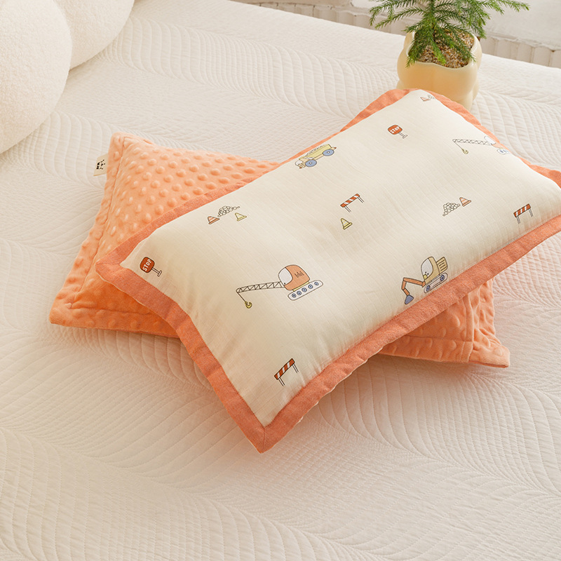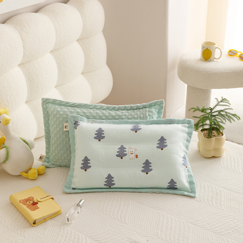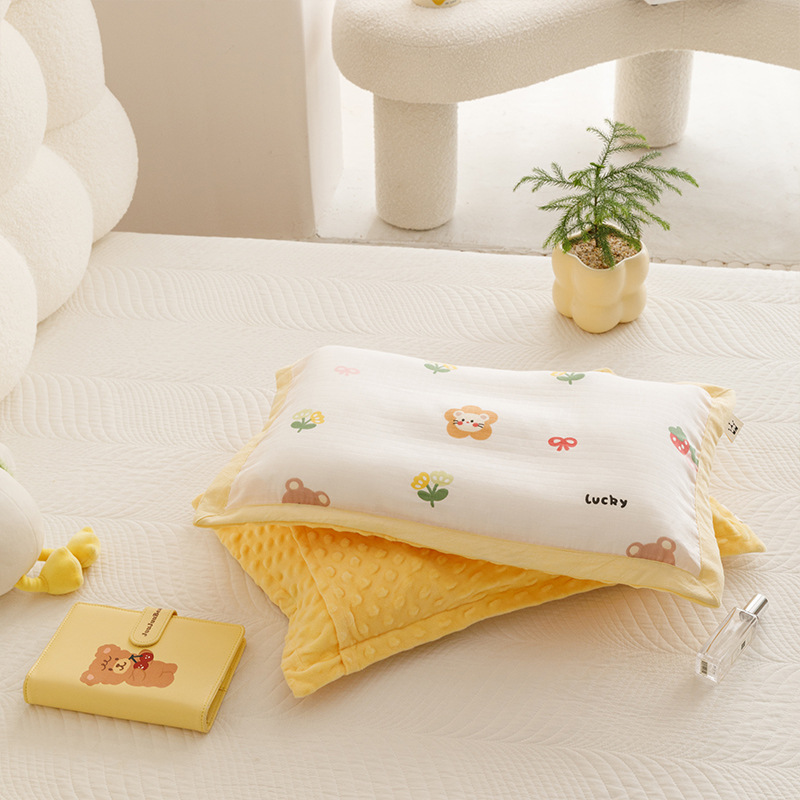 코티 스타일 면 더블 레이어 원사 어린이 베개 케이스 양면 아기 콩 벨벳 베개 케이스 두꺼운 겨울 베개 케이스