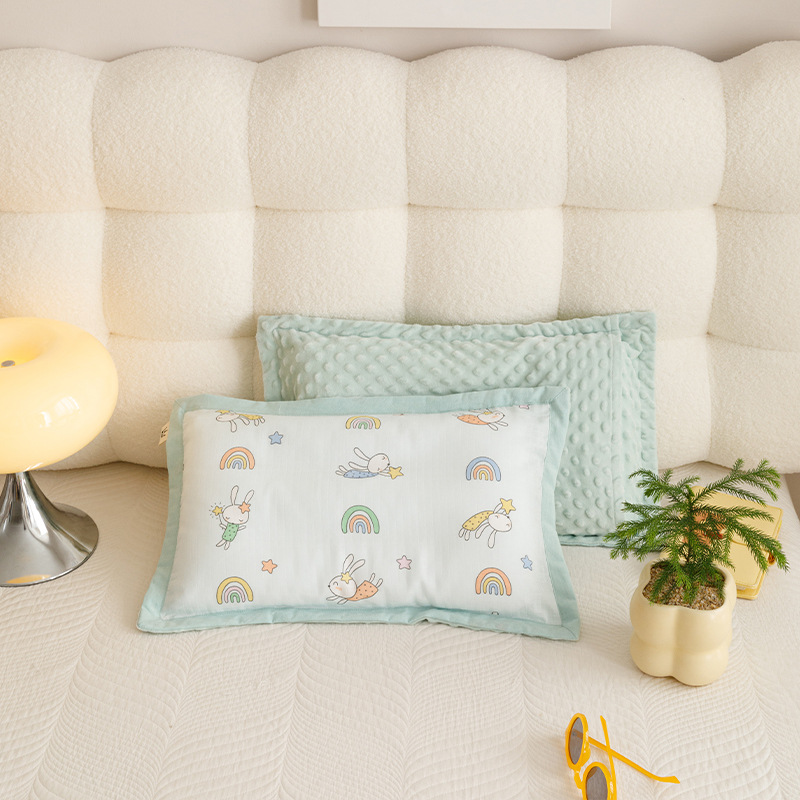 双层纱豆豆绒安抚儿童枕套