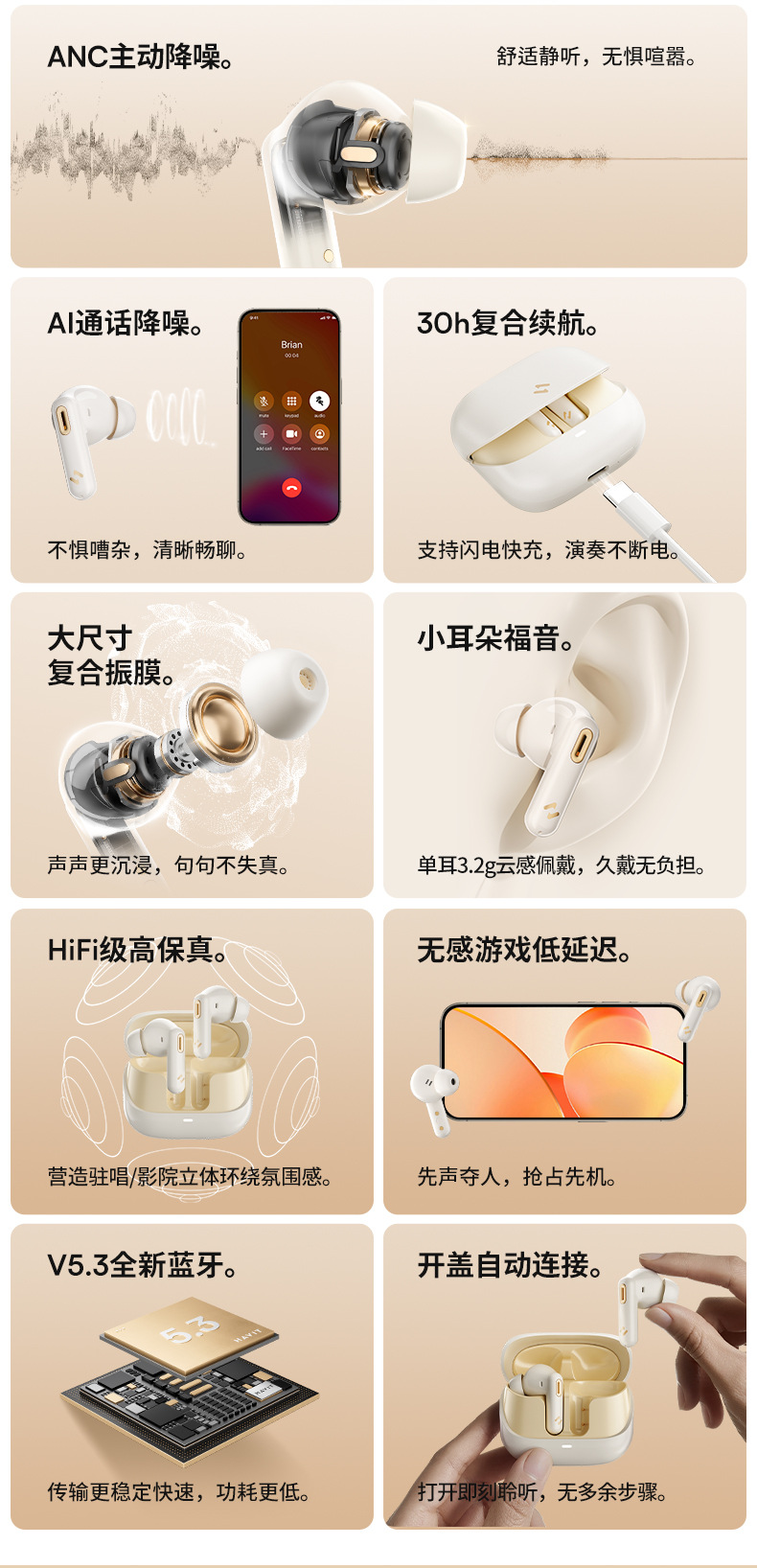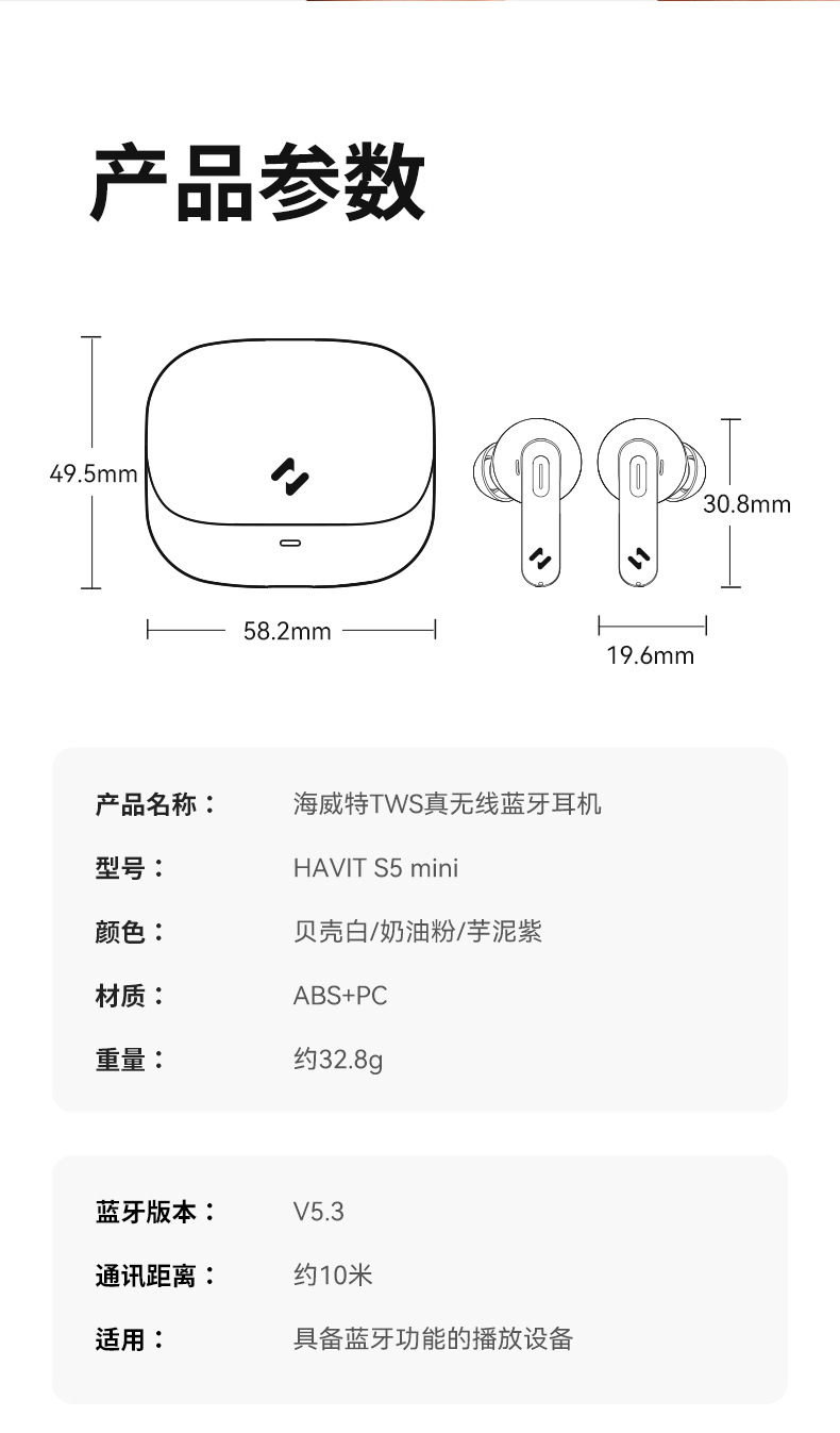 휴이트의 새로운 개인 모델 S5mini In-Ear 블루투스 헤드셋 5.3 긴 내구성 ANC 소음 감소 블루투스 헤드셋스토어 가기