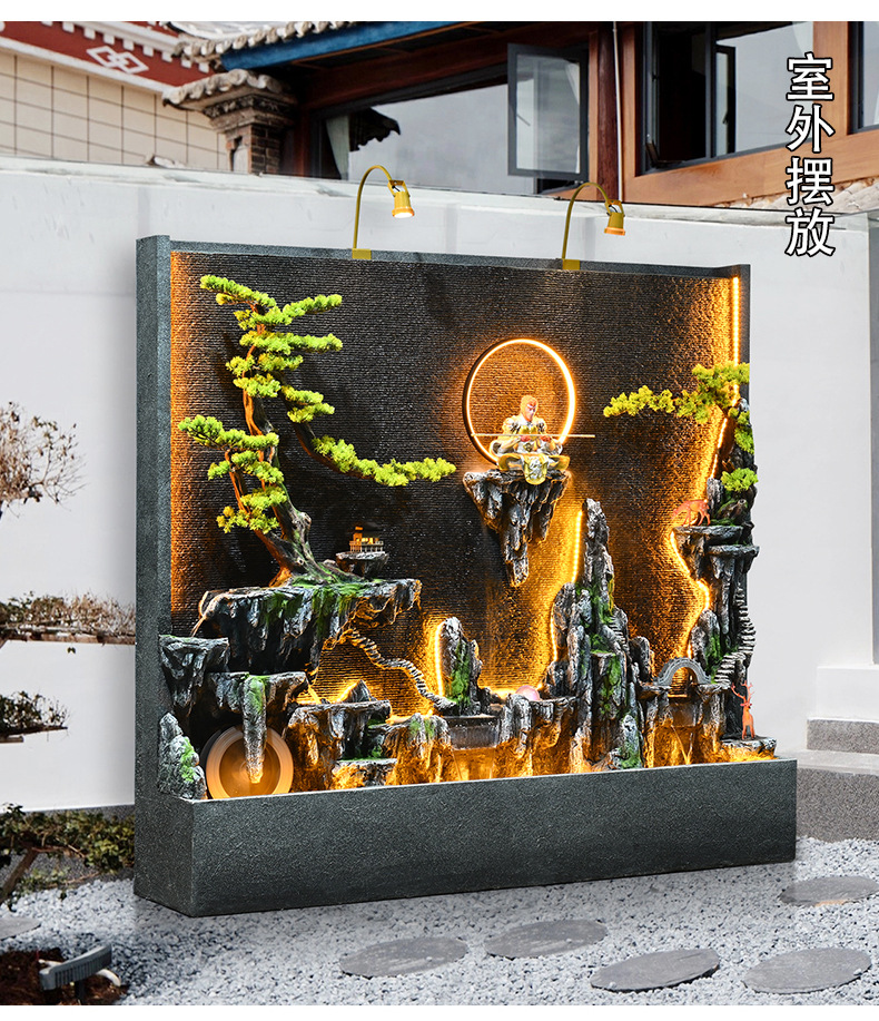 물 커튼 벽 흐르는 물 스크린 사무실 파티션 장식 실내 및 실외 안뜰 바위 물고기 연못 분수 풍경 장식품스토어 가기