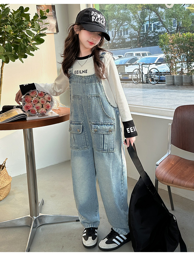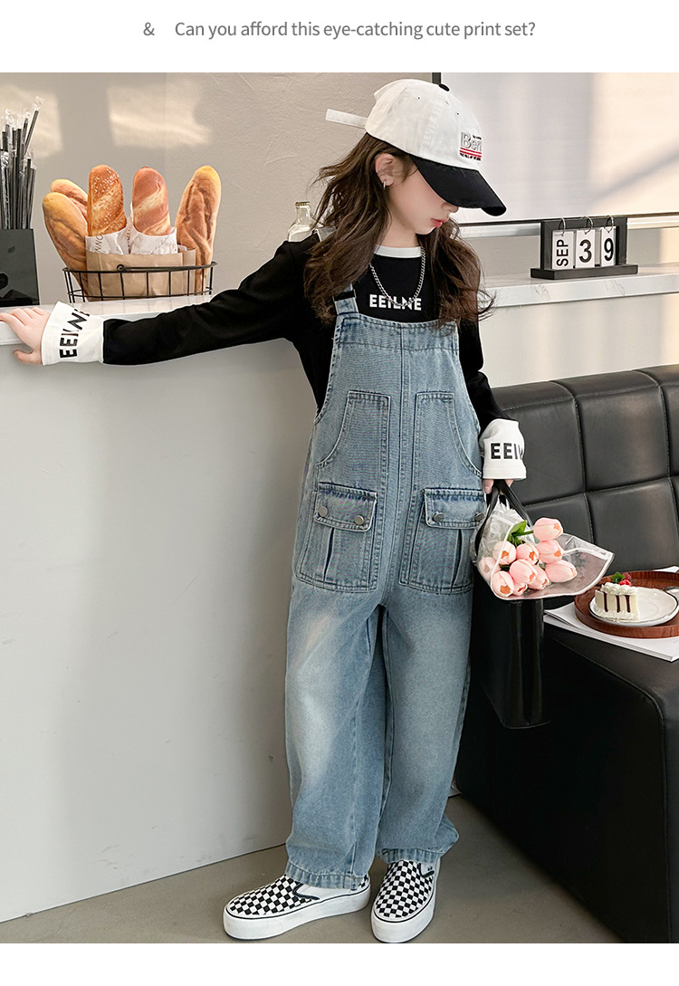 소녀 가을 세트 2024 새로운 유행 서양식 어린이 인터넷 축하 티셔츠 투피스 세트스토어 가기