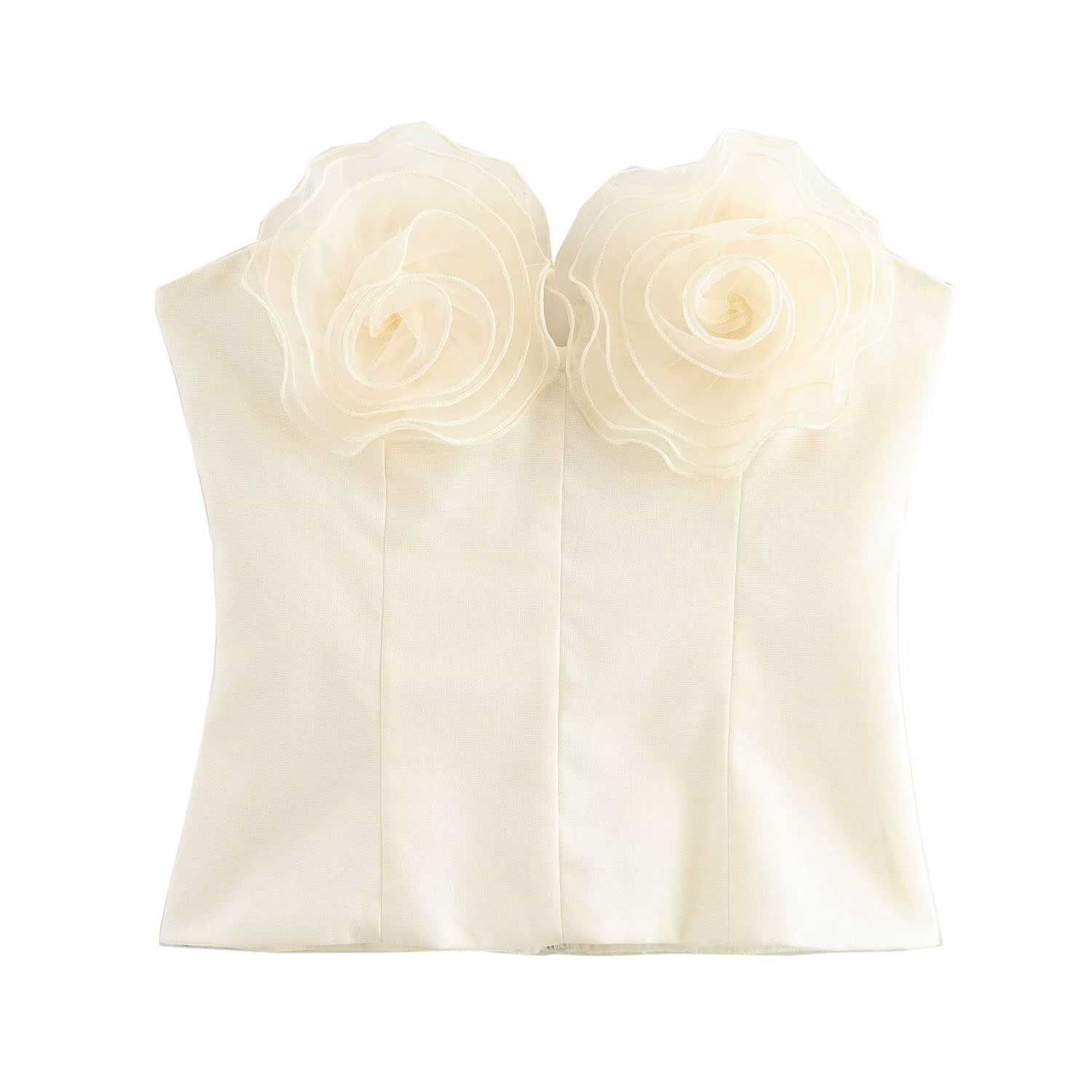 UC & ZA 재고 리얼 샷 국경 간 유럽과 미국 스타일 여성의 섹시한 슬림 핏 꽃 장식 스트랩리스 재킷 0881057