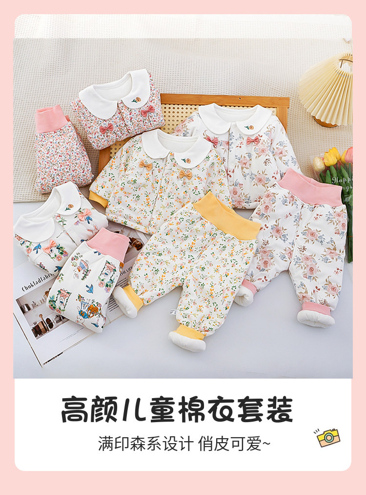 여성 아기 투피스 외국 스타일 면화 패딩 세트 공주 외부 착용 얇은면 패딩 아기 가을과 겨울 새로운 150 그램스토어 가기