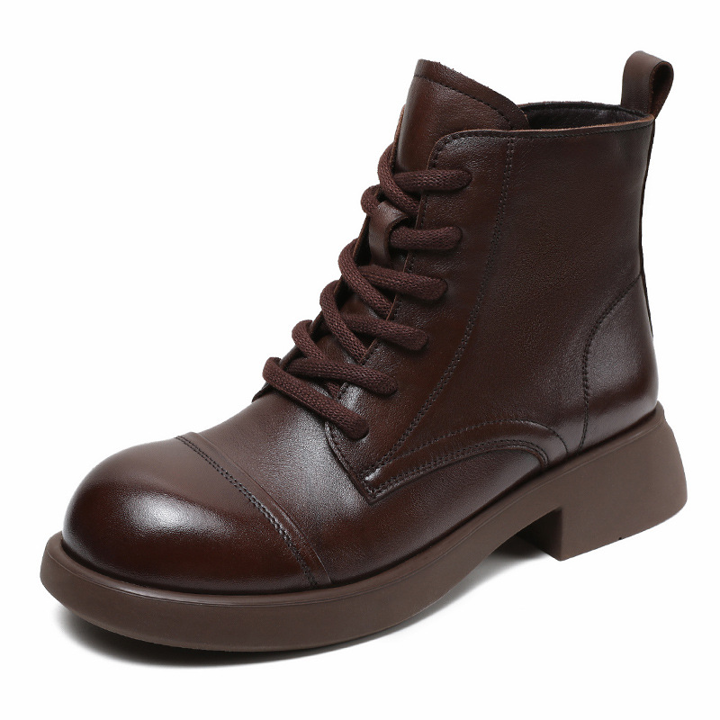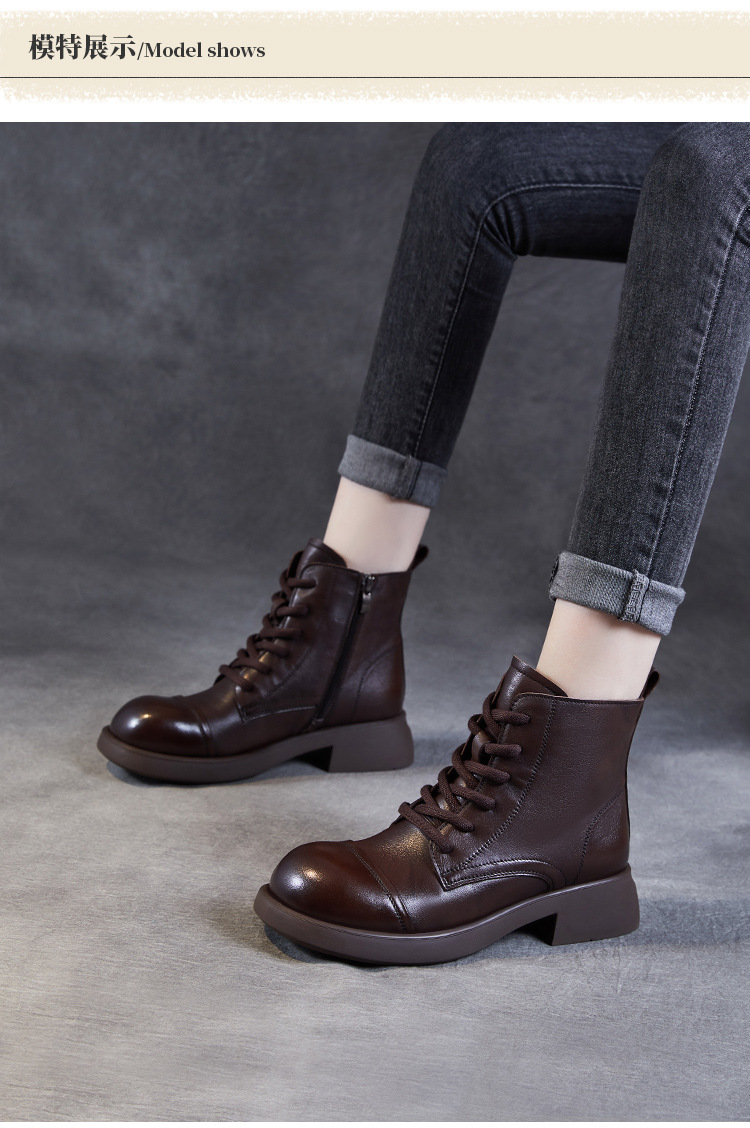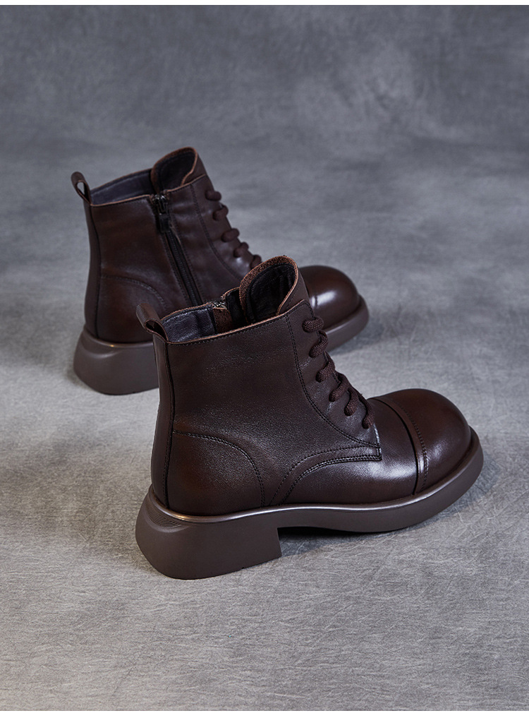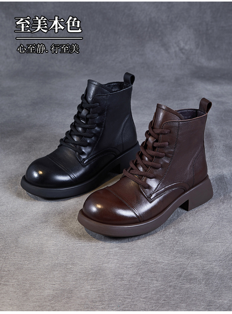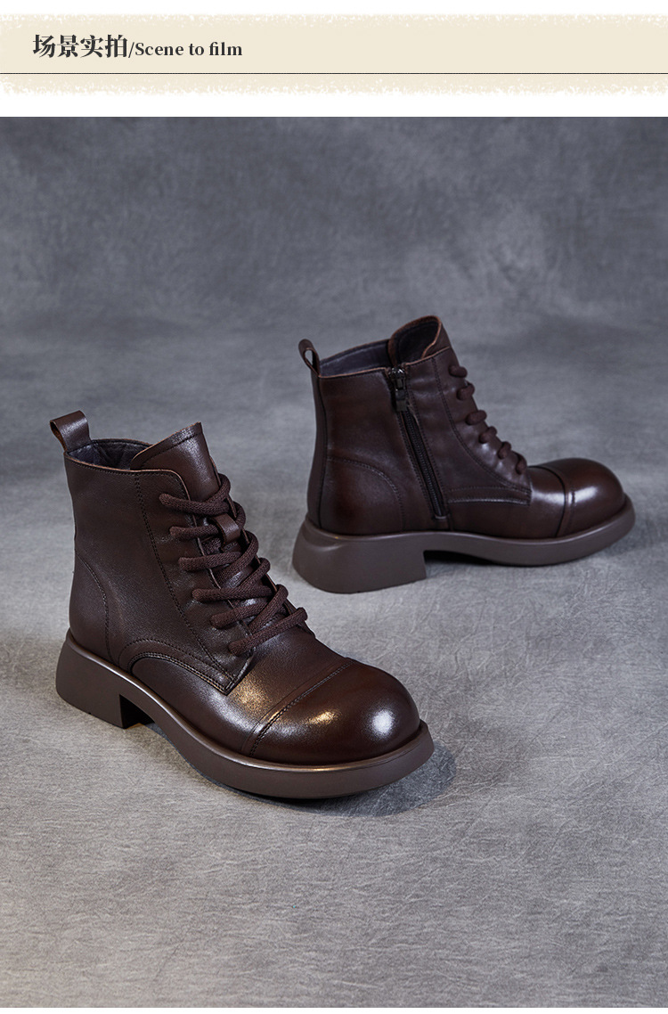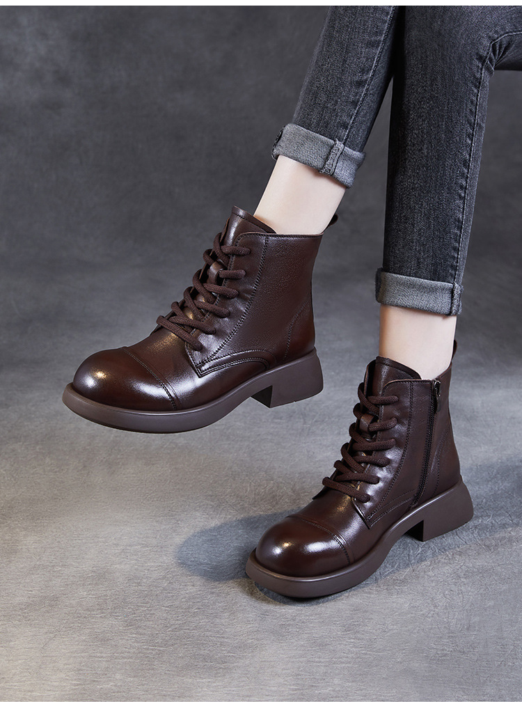 Top Layer Cowhide Vintage Martin Boots 여성용 2024 가을 및 겨울 새로운 정품 가죽 패션 올 매치 레이스 업 지퍼 영국 발목 부츠