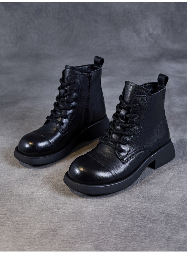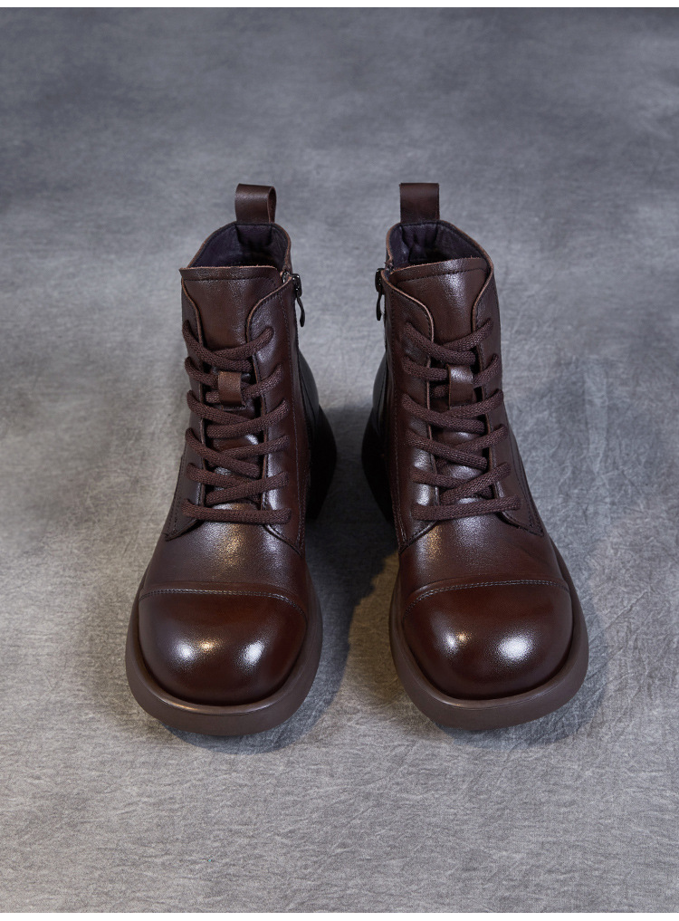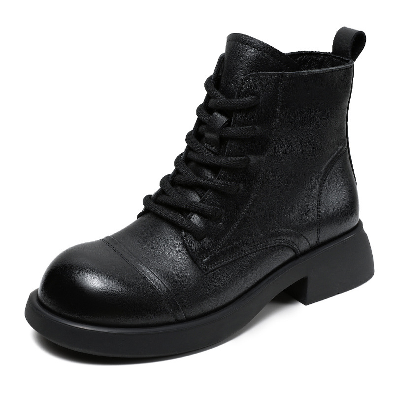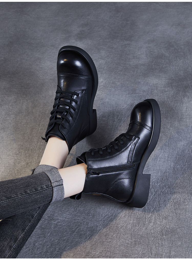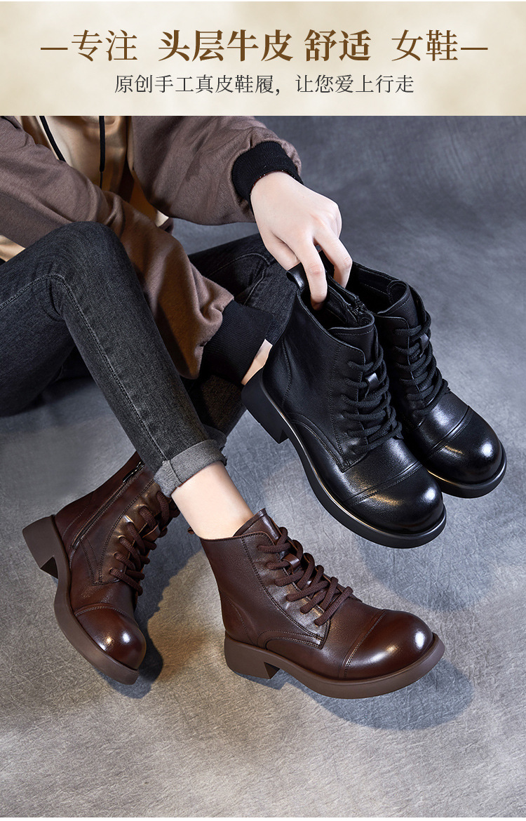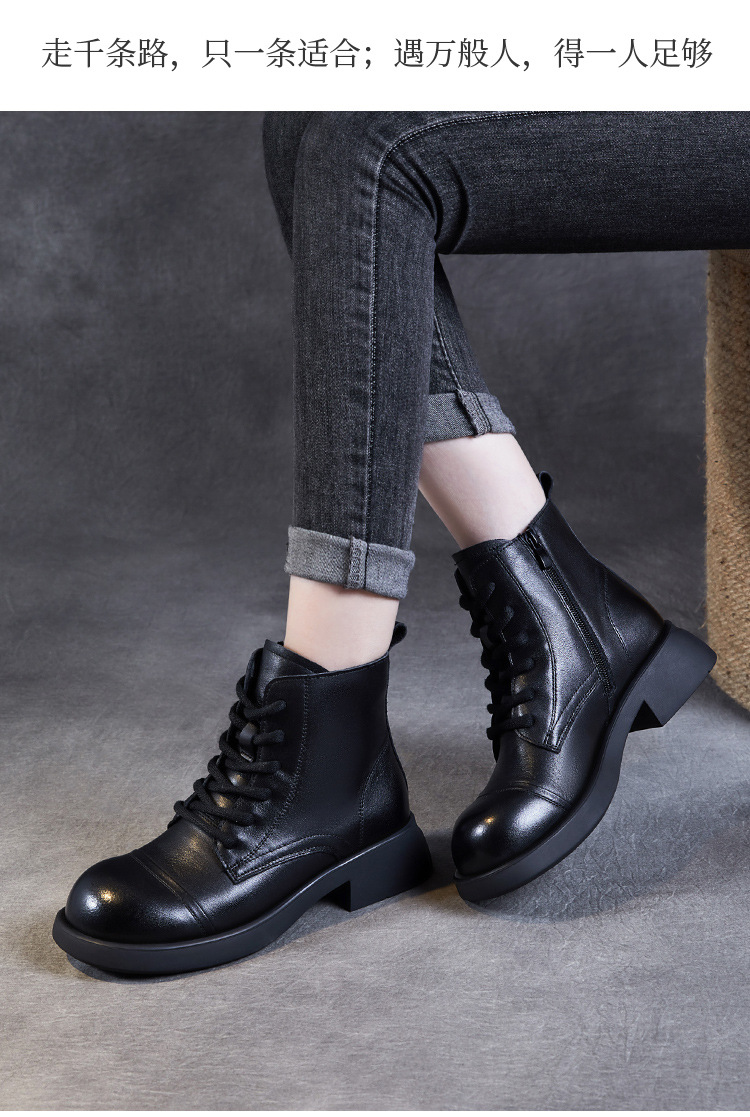 Top Layer Cowhide Vintage Martin Boots 여성용 2024 가을 및 겨울 새로운 정품 가죽 패션 올 매치 레이스 업 지퍼 영국 발목 부츠