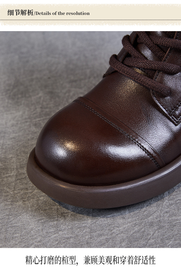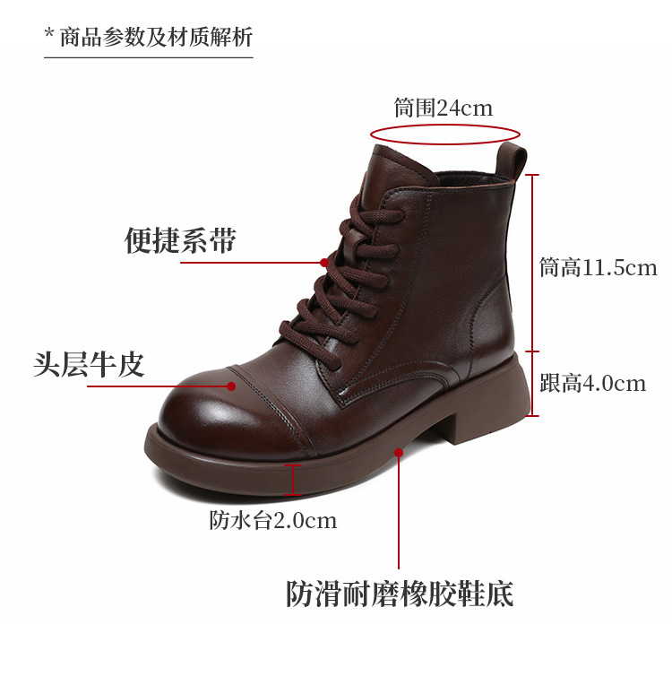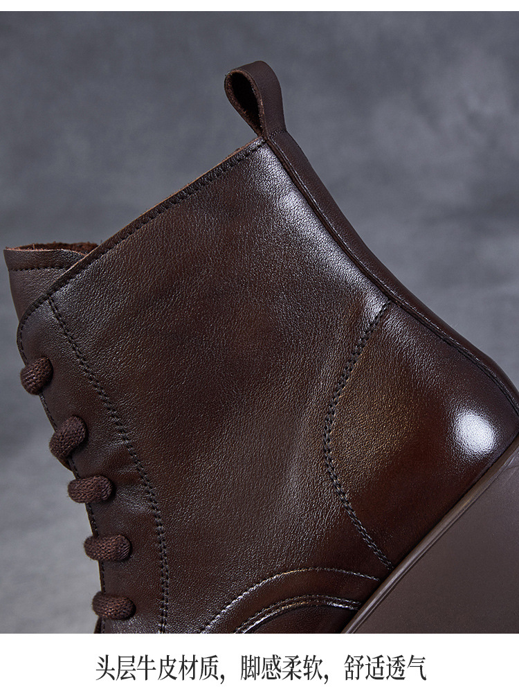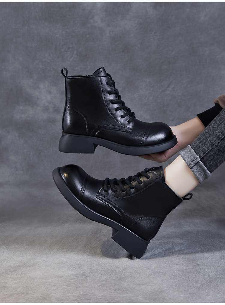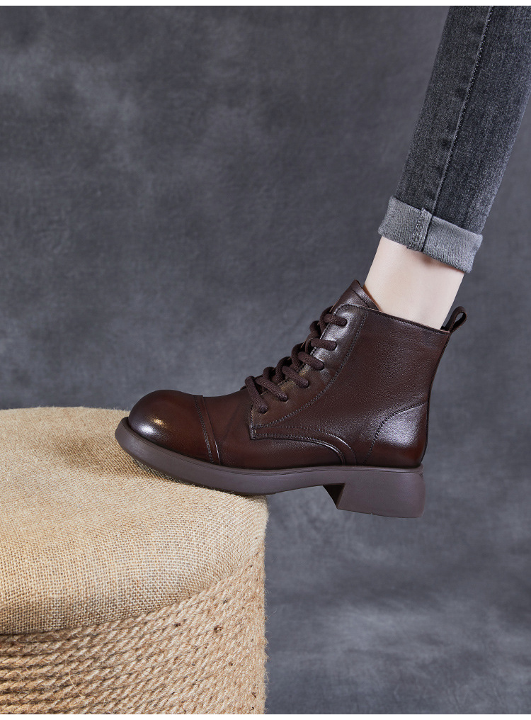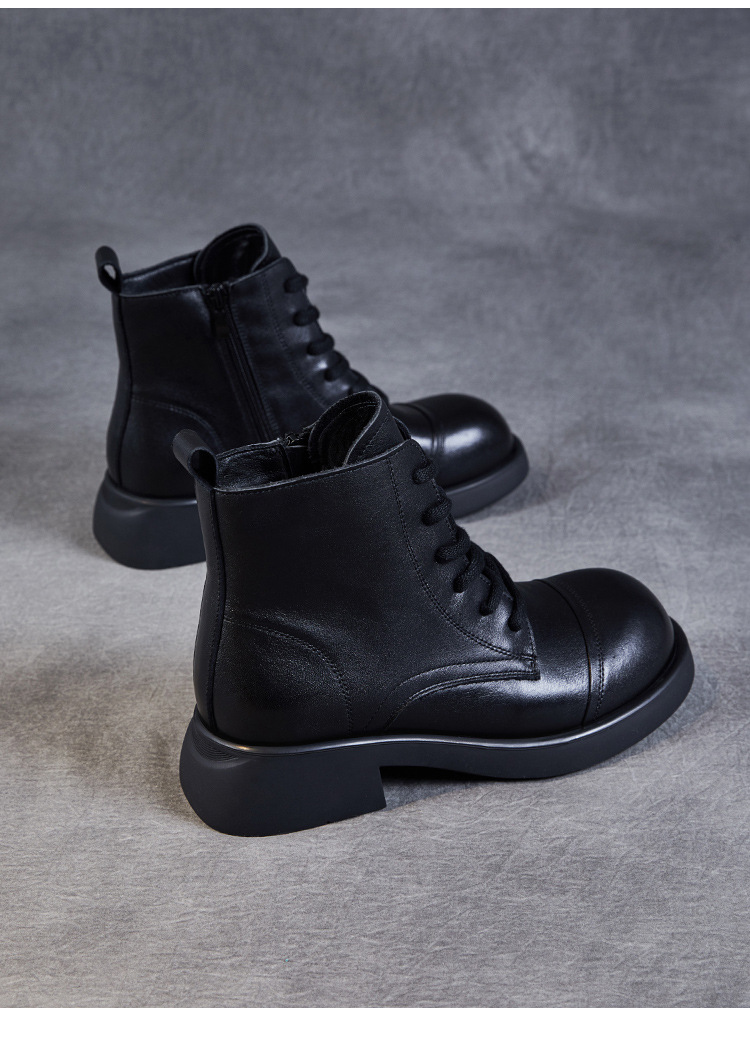 Top Layer Cowhide Vintage Martin Boots 여성용 2024 가을 및 겨울 새로운 정품 가죽 패션 올 매치 레이스 업 지퍼 영국 발목 부츠