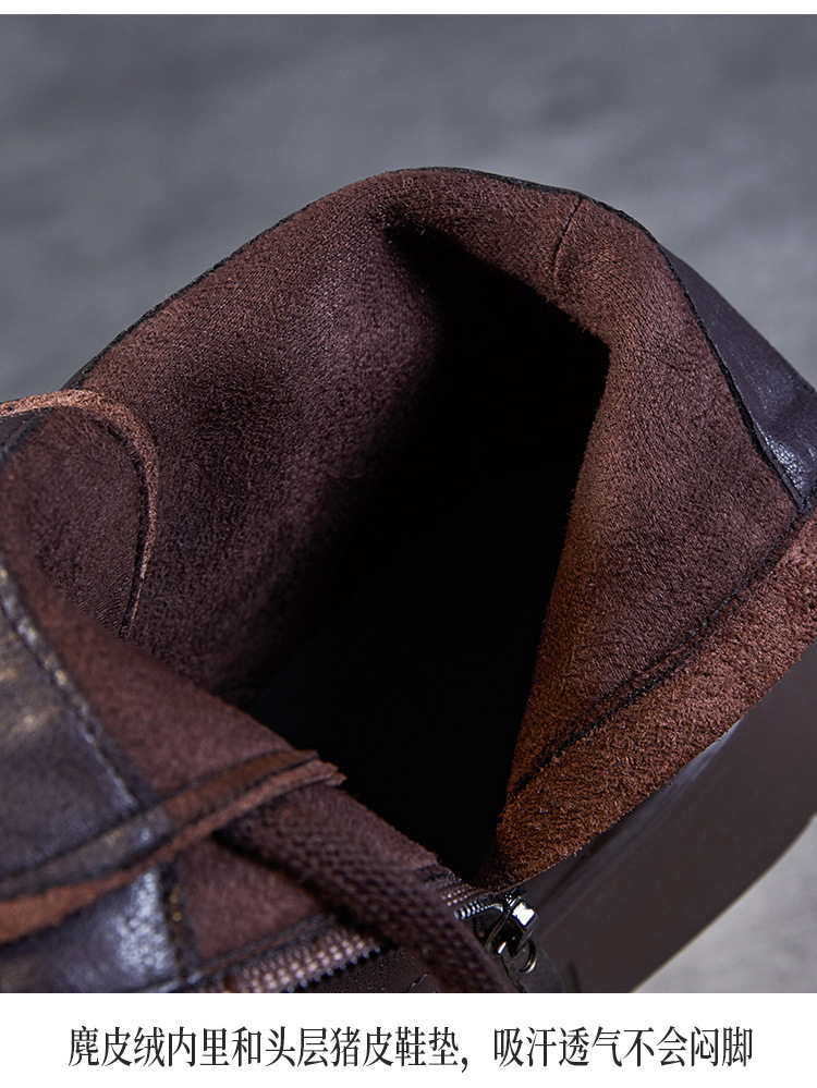 Top Layer Cowhide Vintage Martin Boots 여성용 2024 가을 및 겨울 새로운 정품 가죽 패션 올 매치 레이스 업 지퍼 영국 발목 부츠스토어 가기