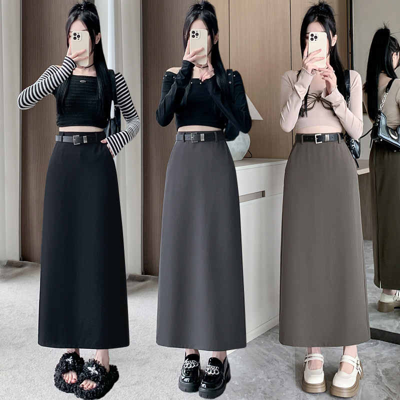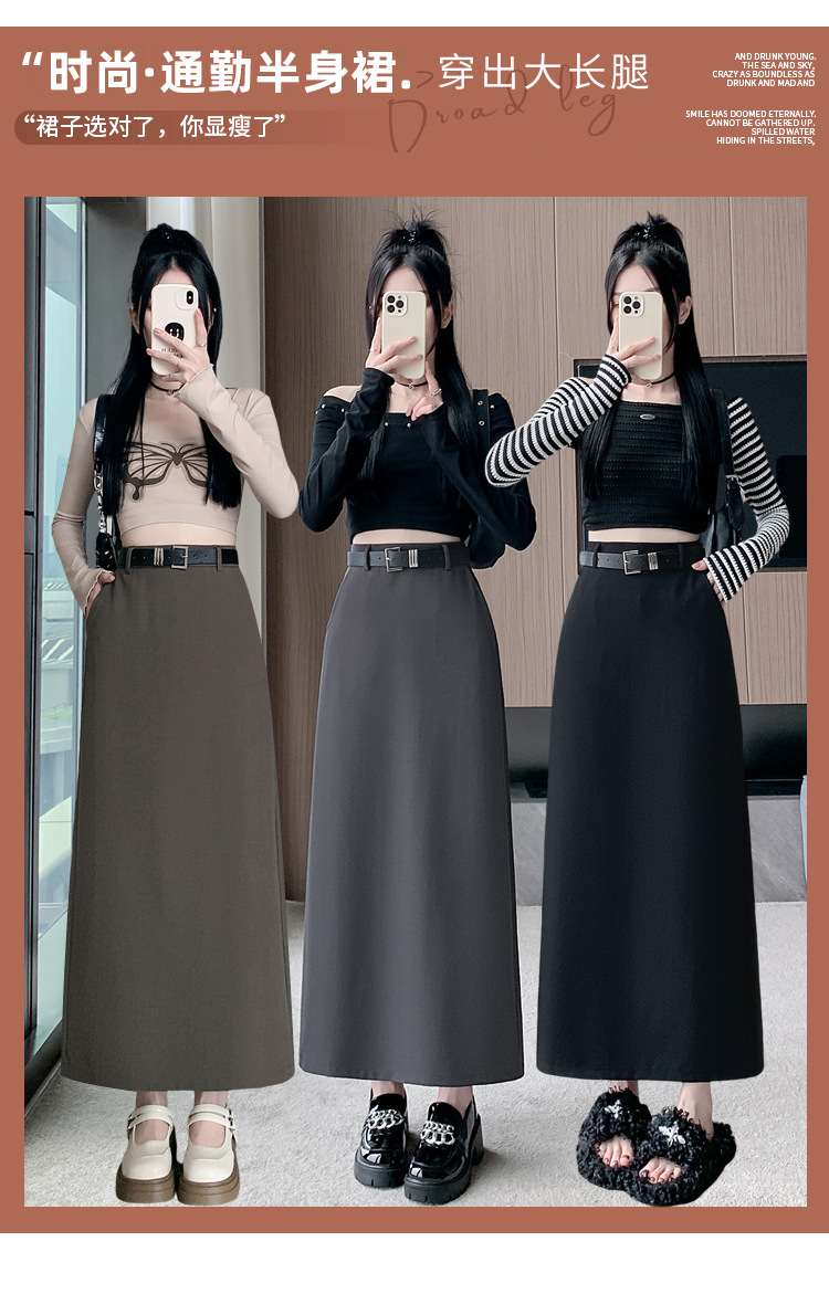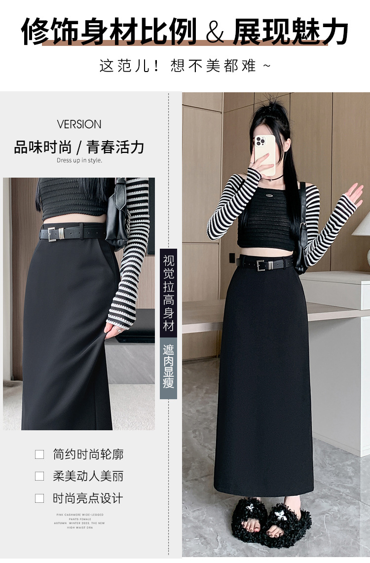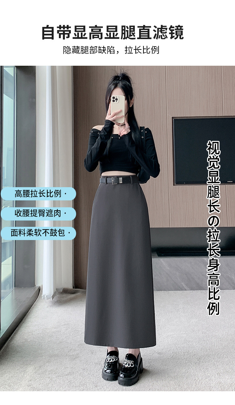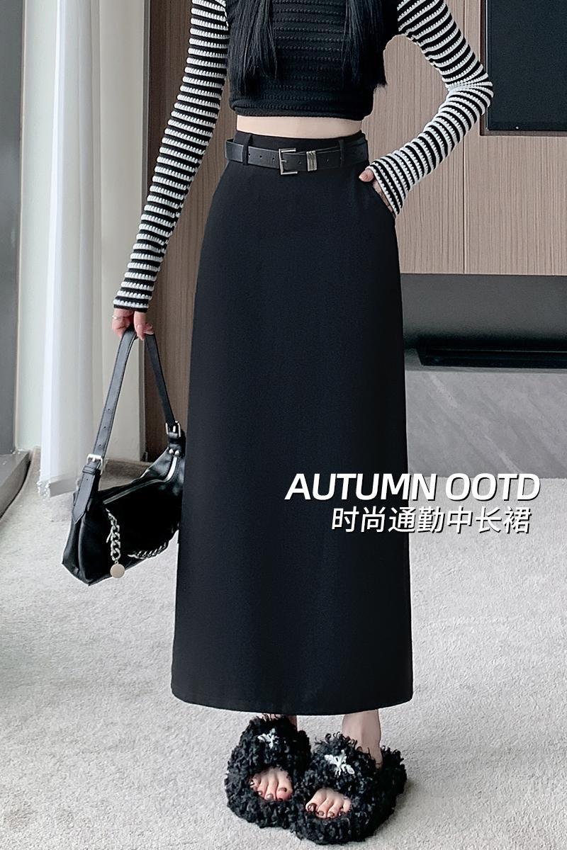 리얼 샷 2024 가을 새로운 슬림 핏 슬림 핏 스트레이트 힙 스커트 A 자형 스커트 중간 길이의 원스텝 롱 스커트스토어 가기