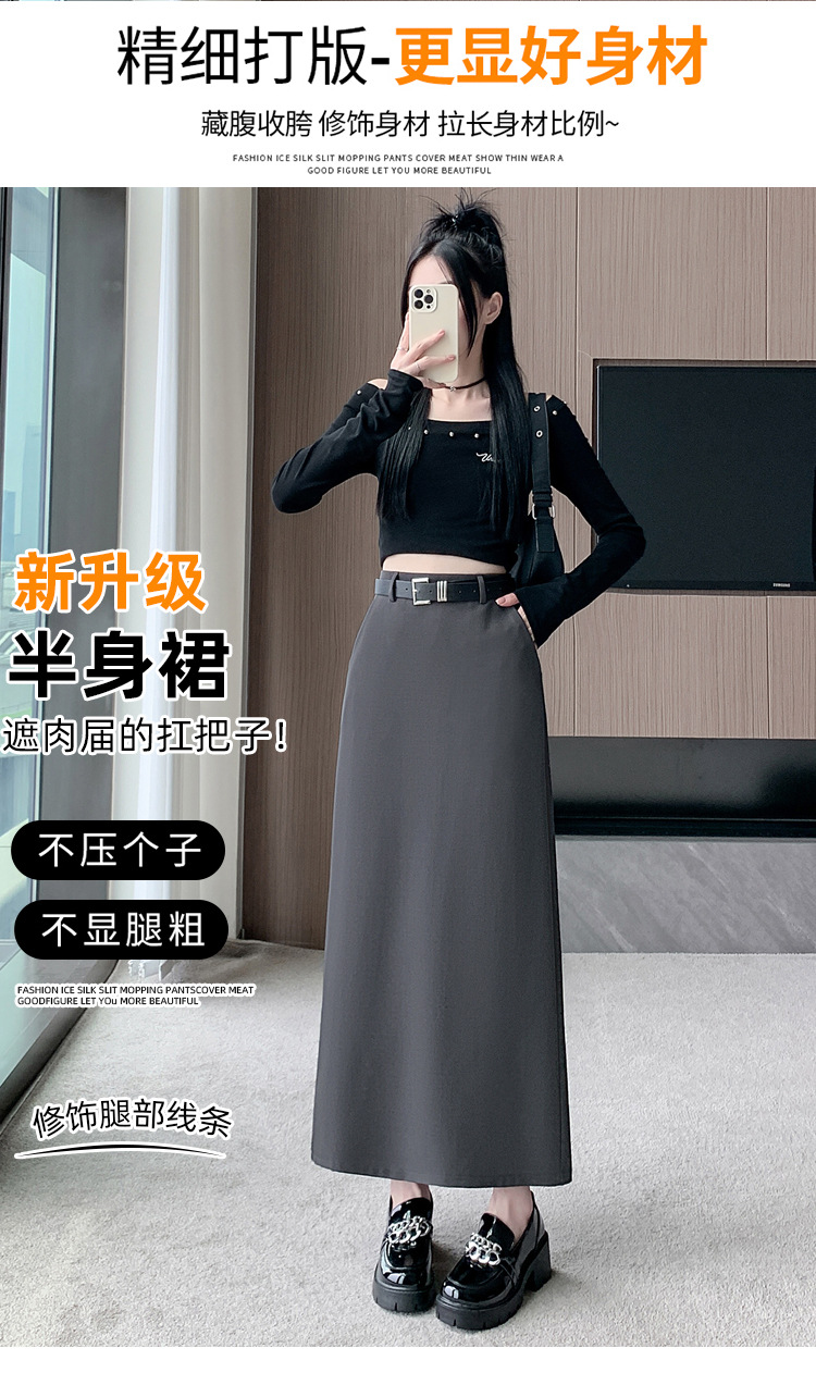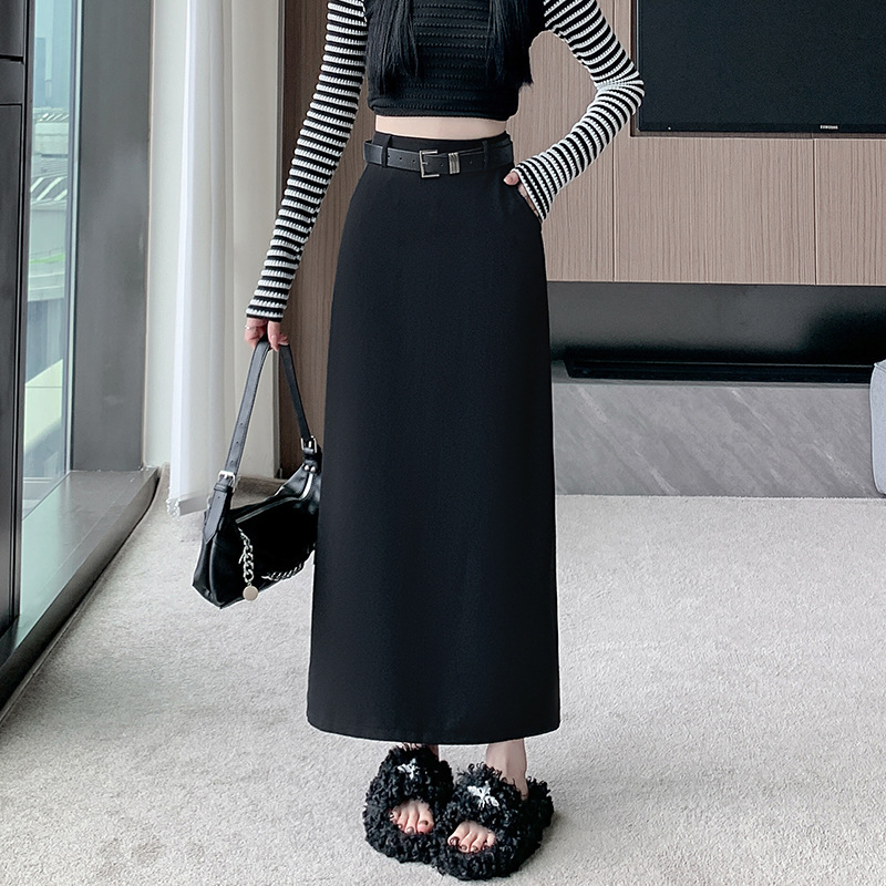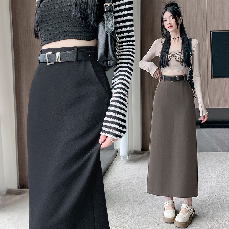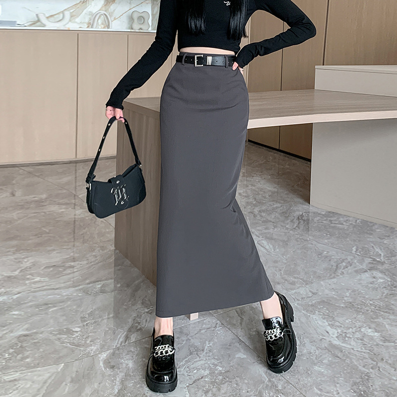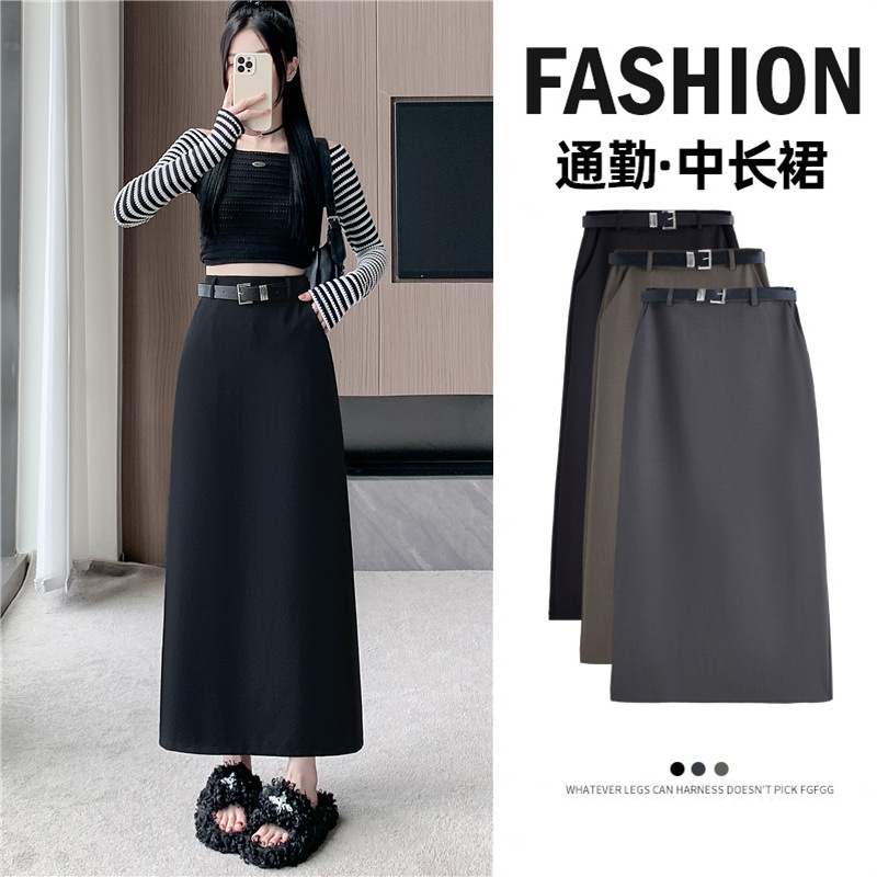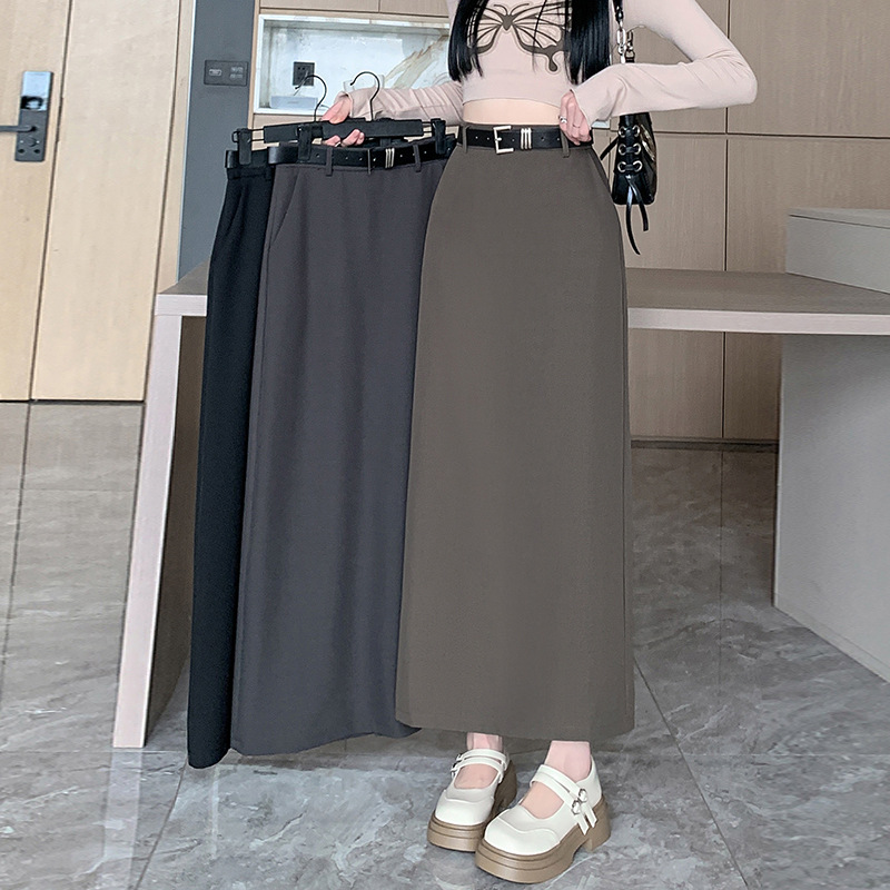 리얼 샷 2024 가을 새로운 슬림 핏 슬림 핏 스트레이트 힙 스커트 A 자형 스커트 중간 길이의 원스텝 롱 스커트스토어 가기