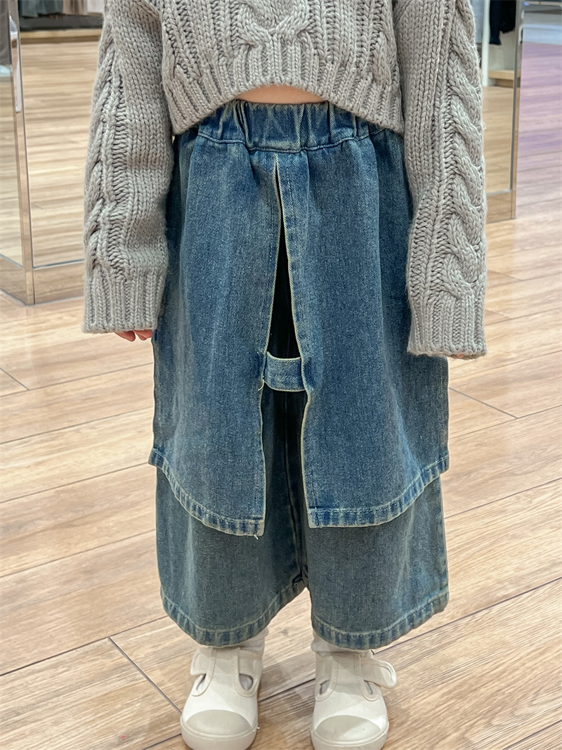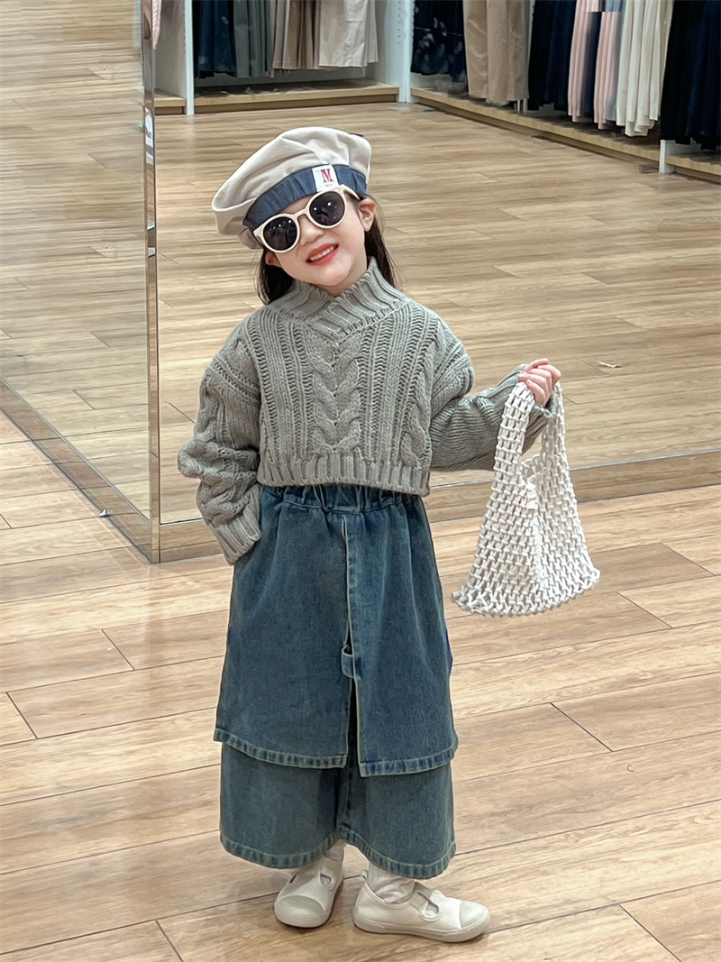 2025 새로운 가을 한국 스타일 아동 의류 소녀 게으른 복고풍 짧은 풀오버 트위스트 스웨터 데님 스커트스토어 가기