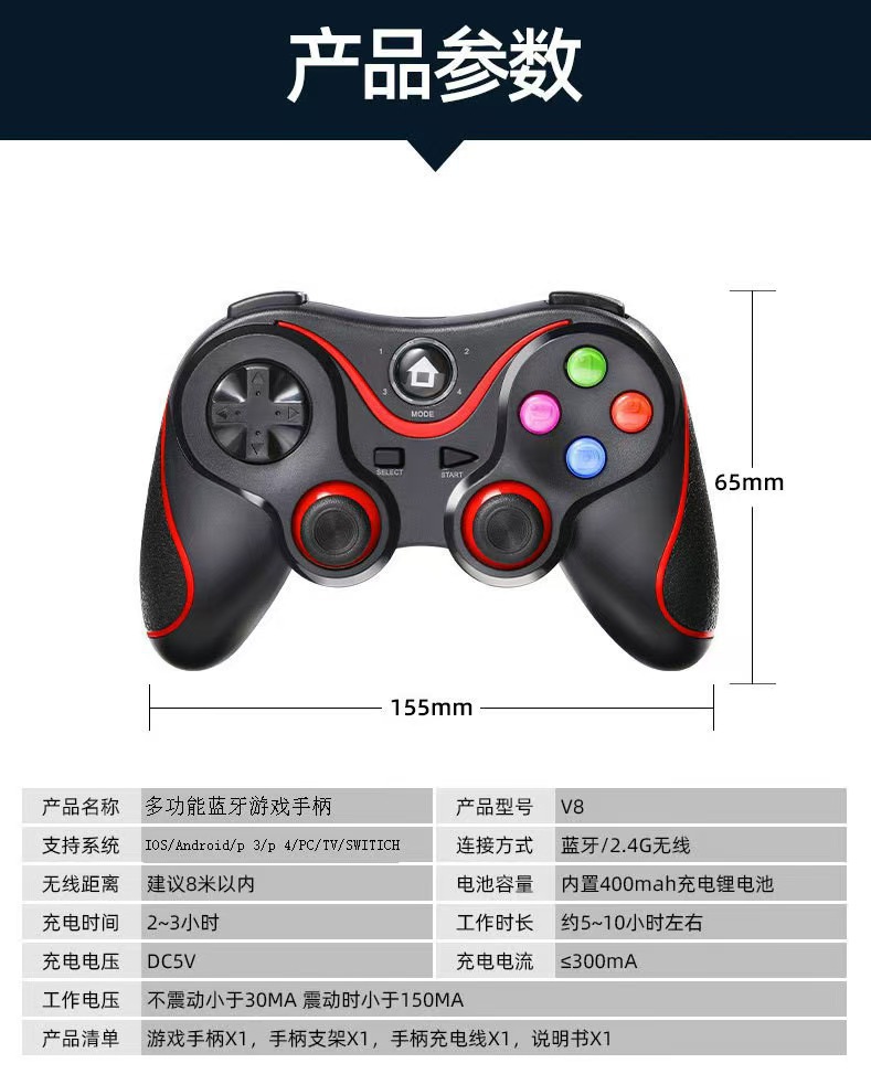 다기능 블루투스 휴대폰 무선 게임 컨트롤러 V8V13189는 IOS 컴퓨터 안드로이드 스위치PS4 호스트와 연결됩니다.스토어 가기