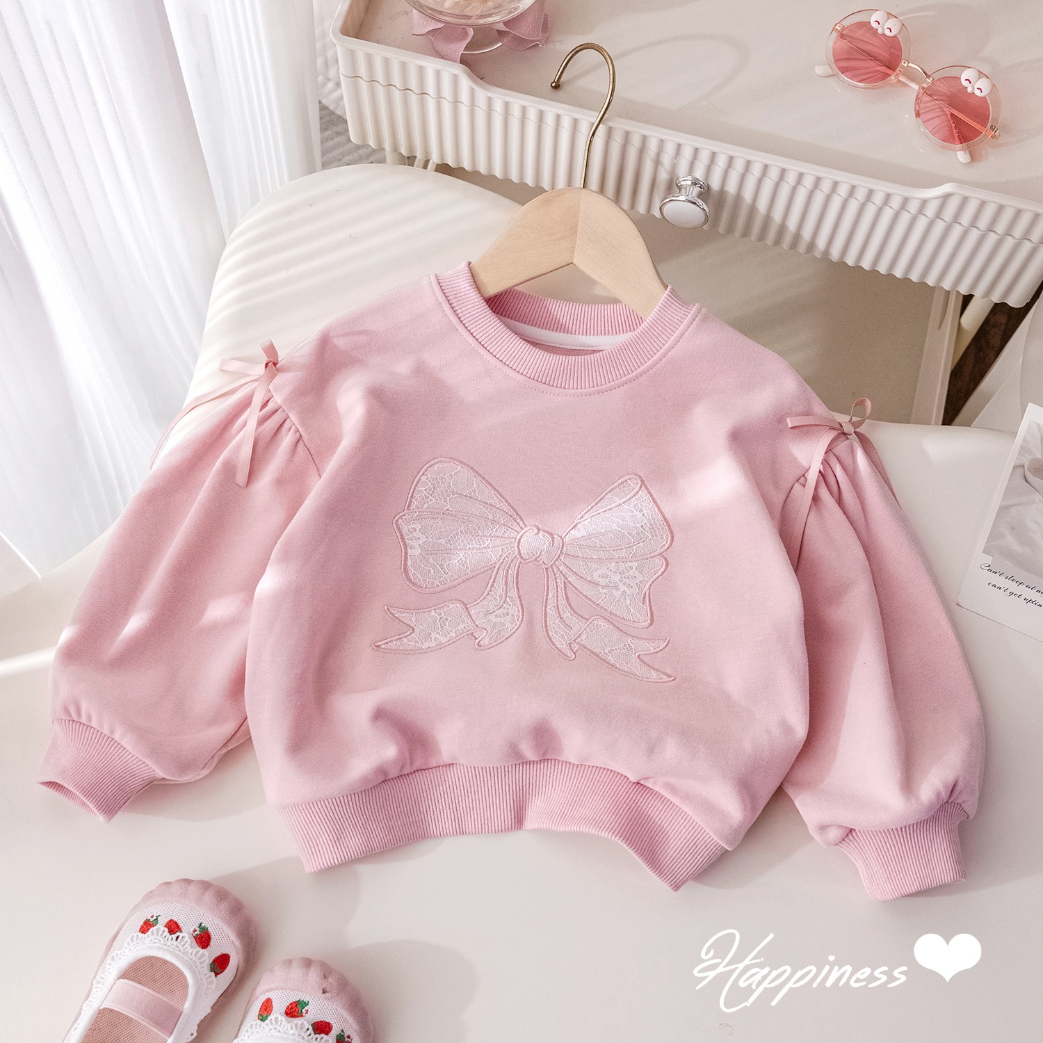 소녀 레이스 활 자수 스웨터 한국 스타일 봄과 가을 새 소녀의 세련된 유행 풀오버 가을 탑