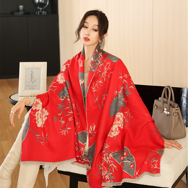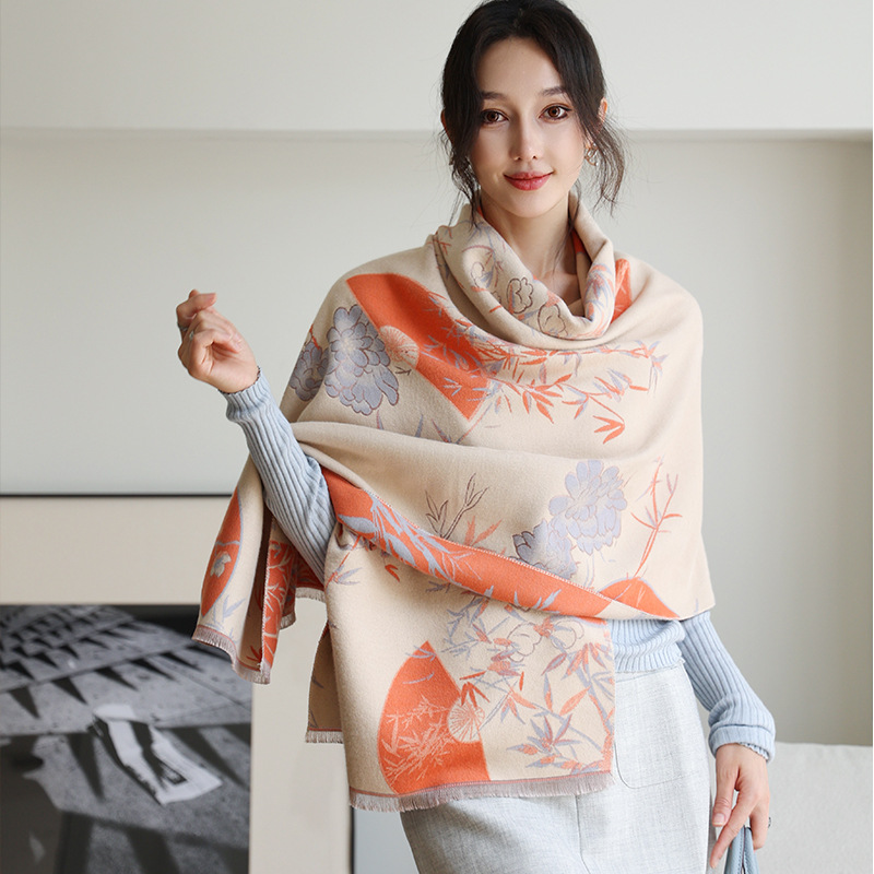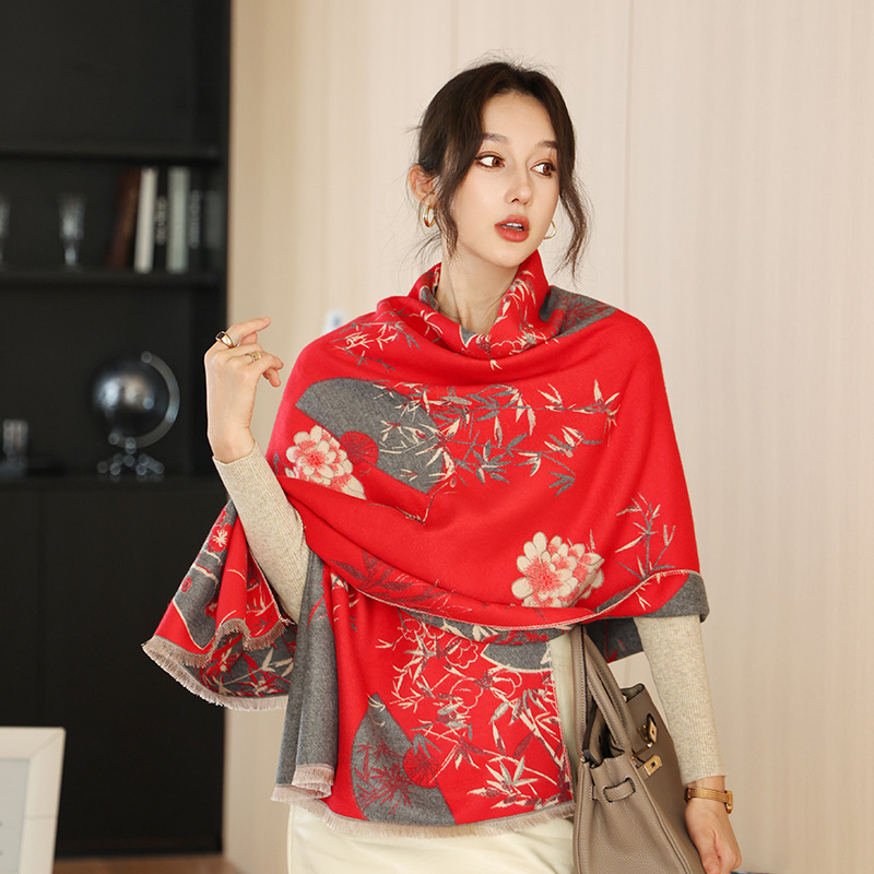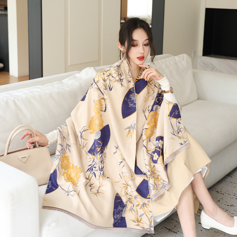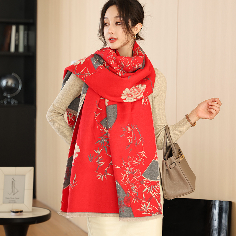 한국식 가을과 겨울 양면 목련 패셔너블 모조 캐시미어 스카프 여자 올매치 우아한 스카프 냉온 에어컨이 설치된 방 목도리
