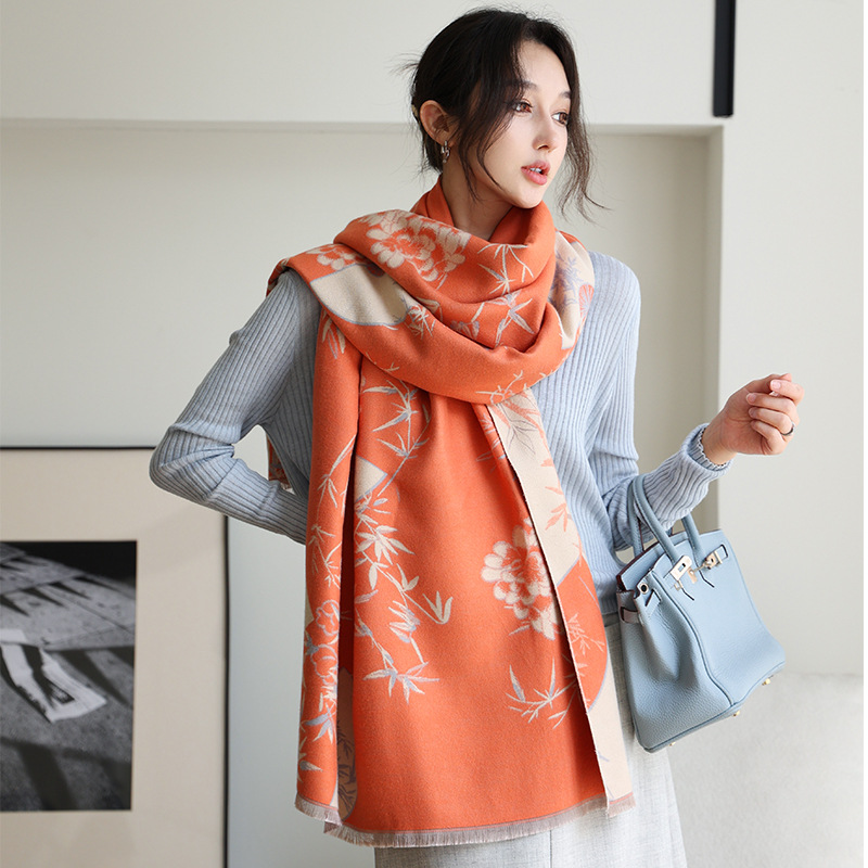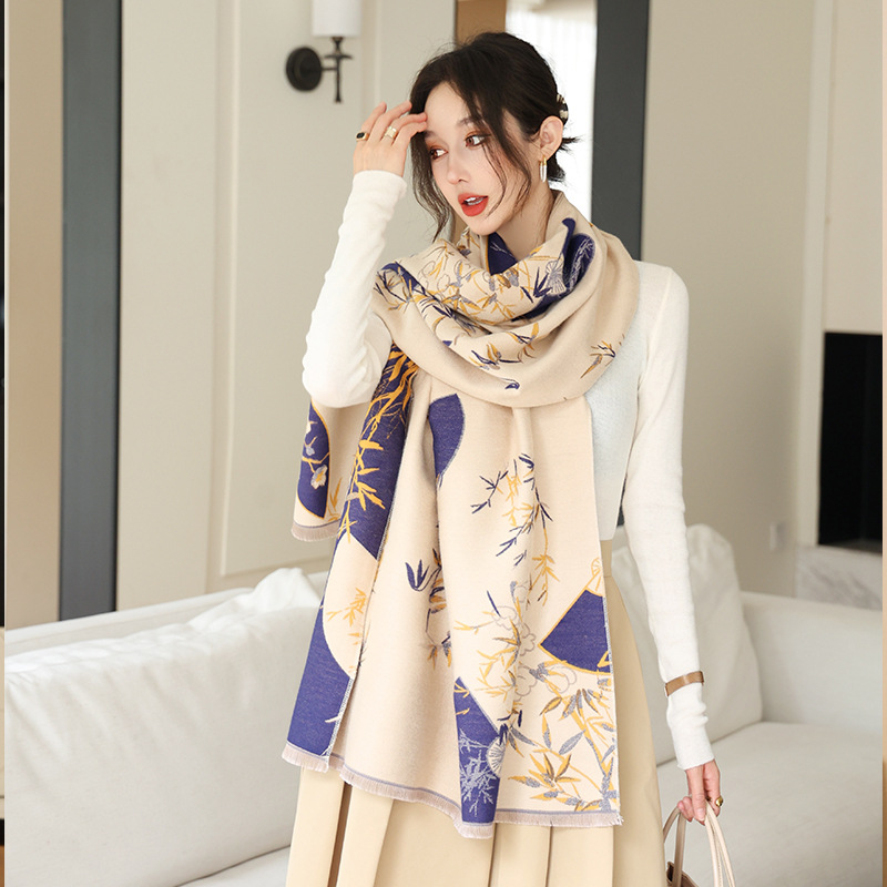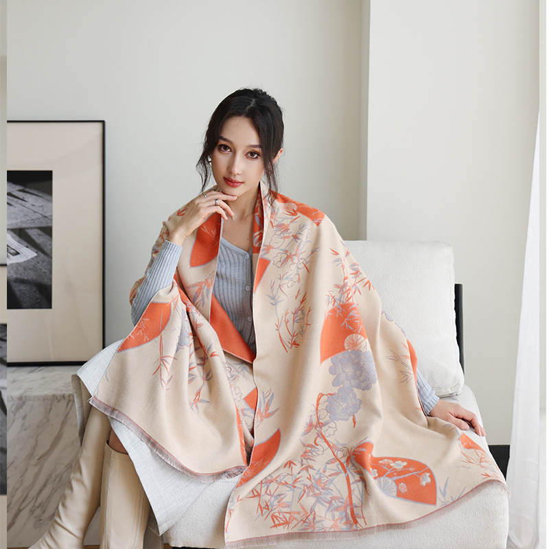 한국식 가을과 겨울 양면 목련 패셔너블 모조 캐시미어 스카프 여자 올매치 우아한 스카프 냉온 에어컨이 설치된 방 목도리스토어 가기