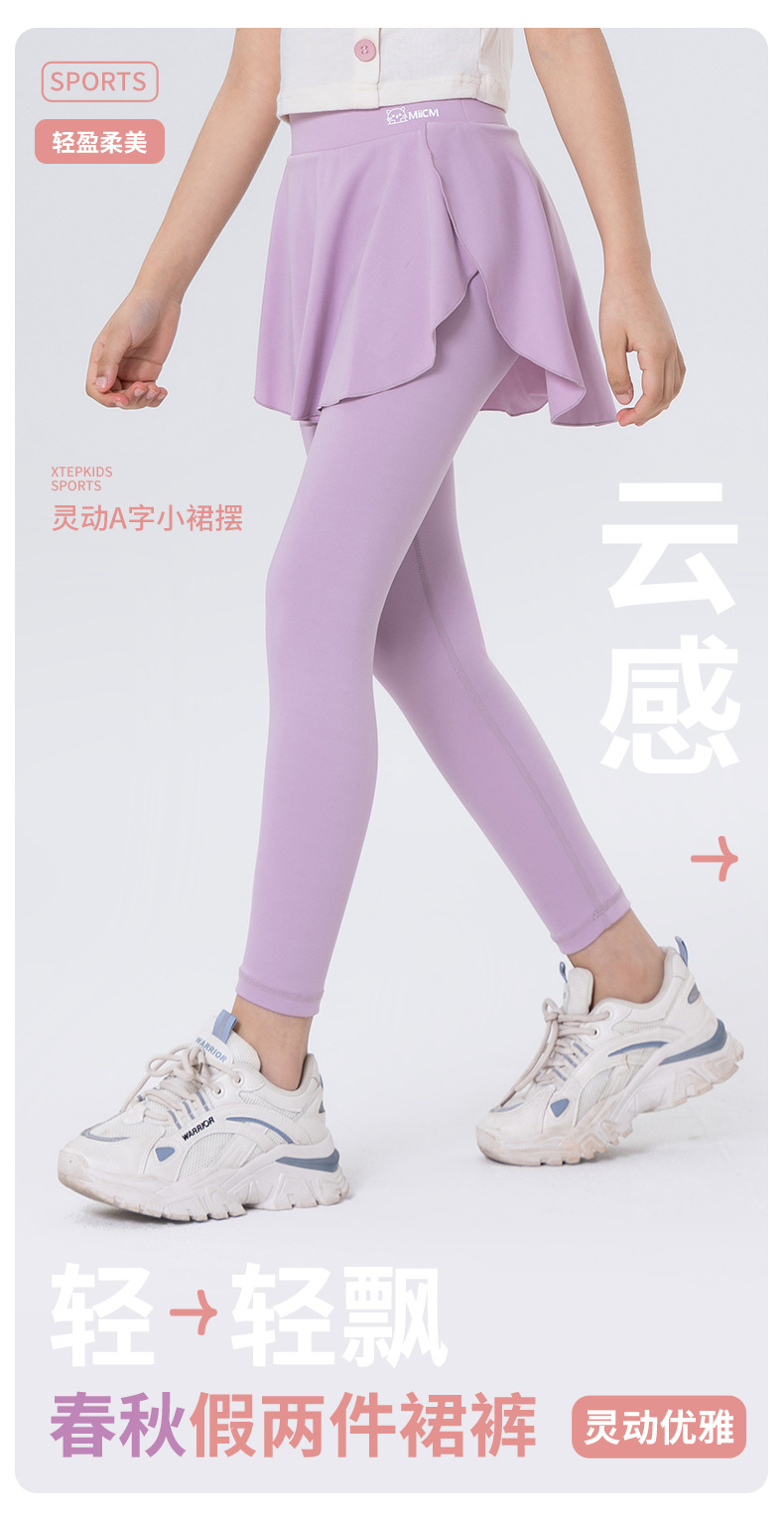 소녀 레깅스 봄과 가을 얇은 가짜 두 조각 상어 바지 새로운 외부 착용 스포츠 바지 큰 어린이 주름 치마 바지스토어 가기