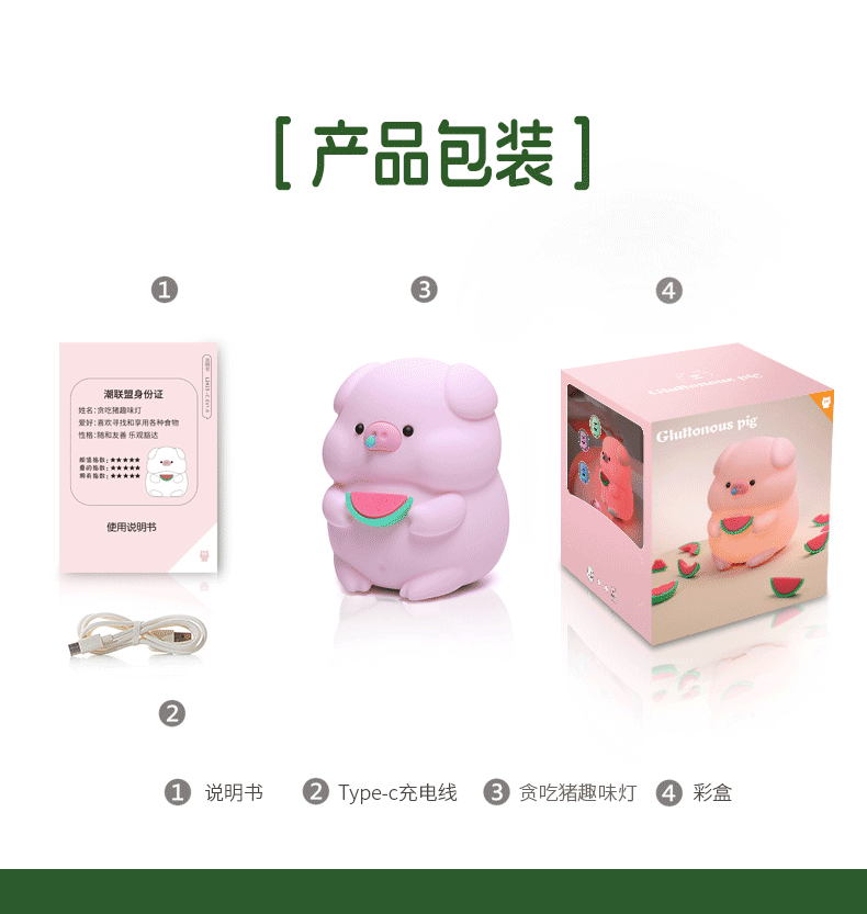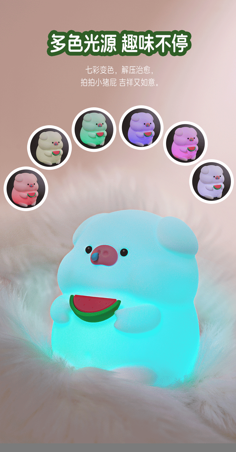 글루토니 돼지 밤 빛 usb 충전 침실 귀여운 아기 수면 빛 다채로운 타이밍 수면 눈 보호 실리콘 램프스토어 가기