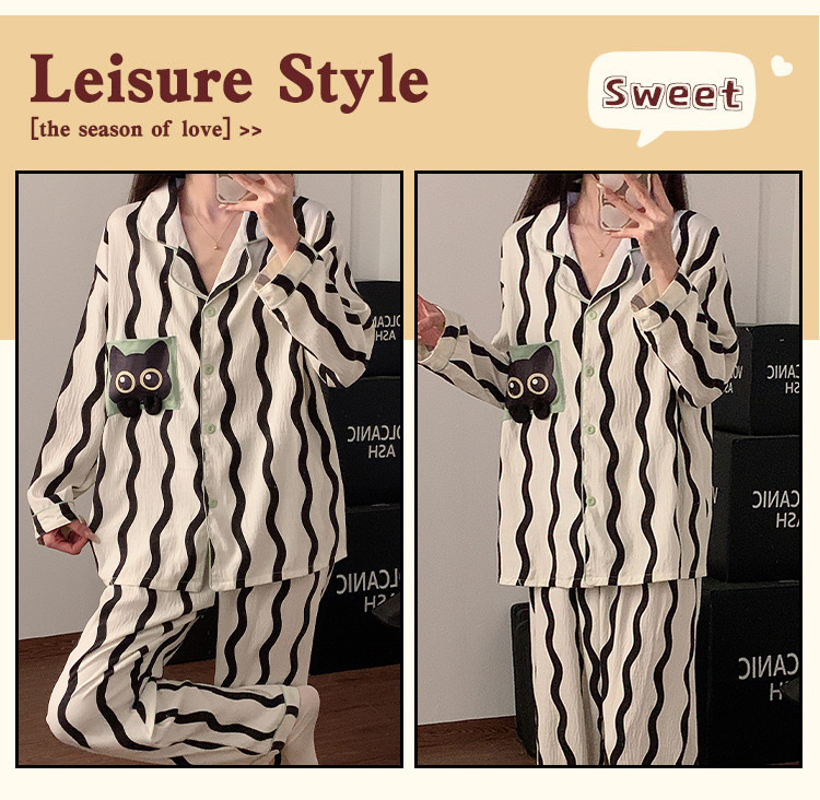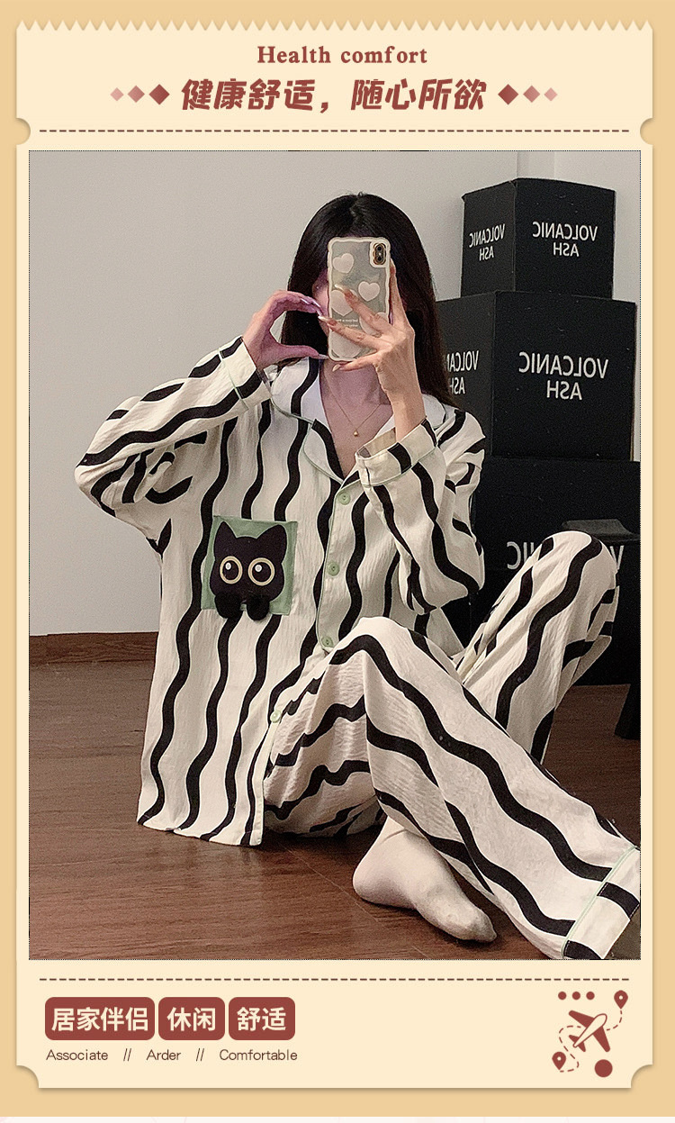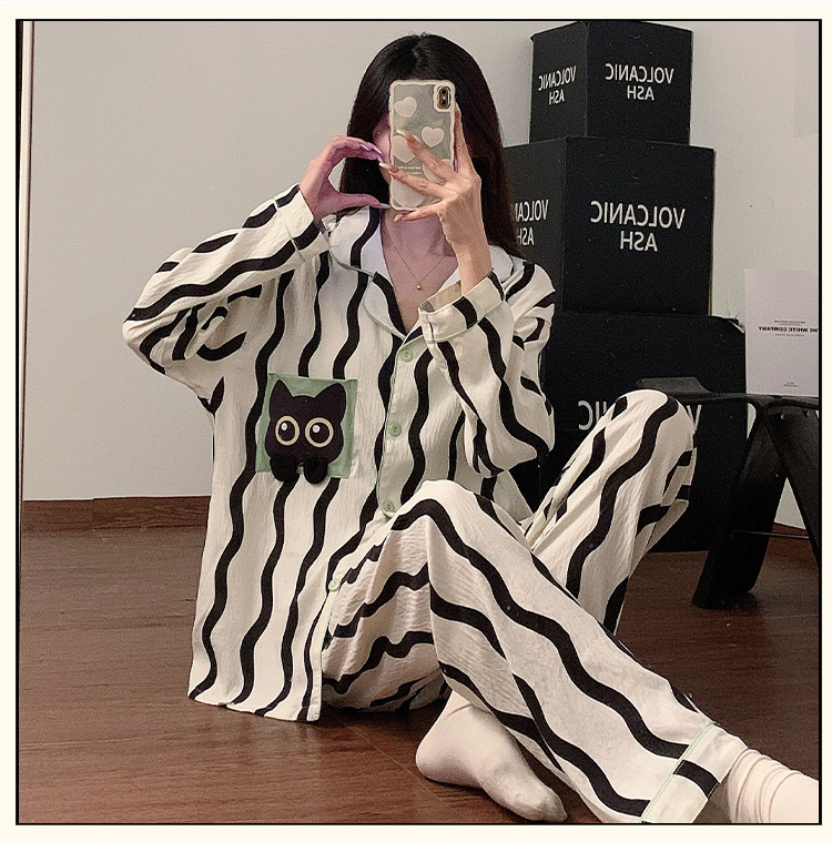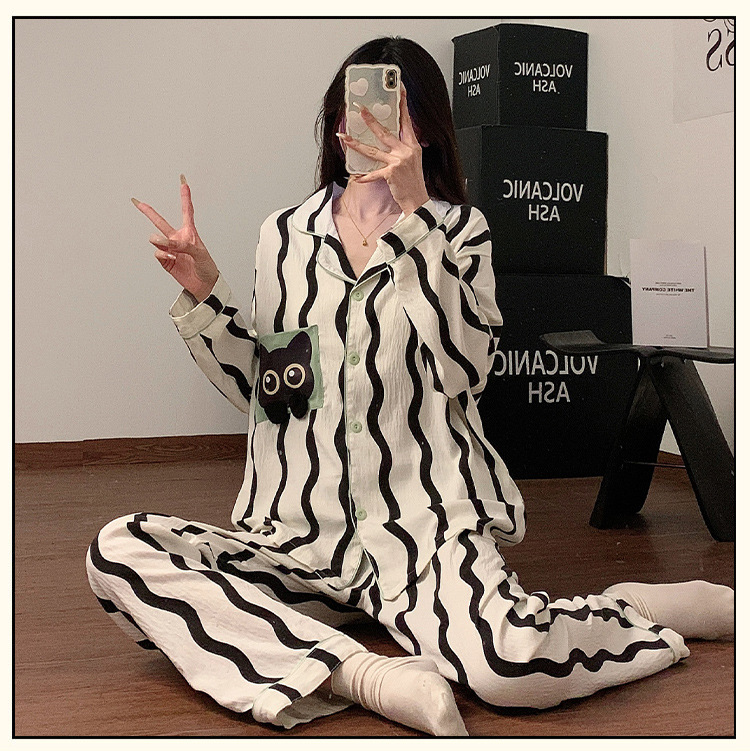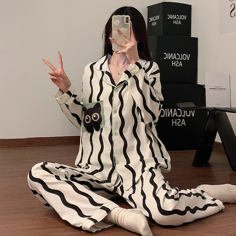 봄과 가을 2024 년 잠옷 여성용 구름 면화 긴 소매 바지 간단한 홈 옷 2 피스 의상스토어 가기