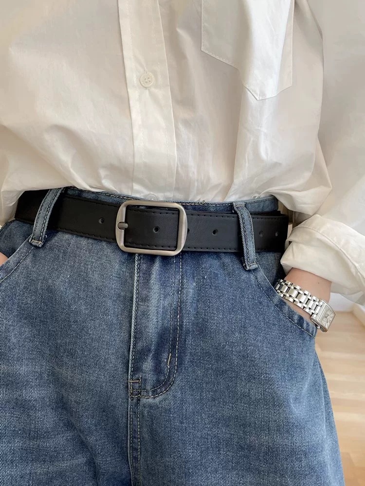 간단한 하이 엔드 센스 벨트 여성 한국식 새로운 올 매치 청바지 장식 벨트 남성 학생 바지 벨트 매트 실버스토어 가기