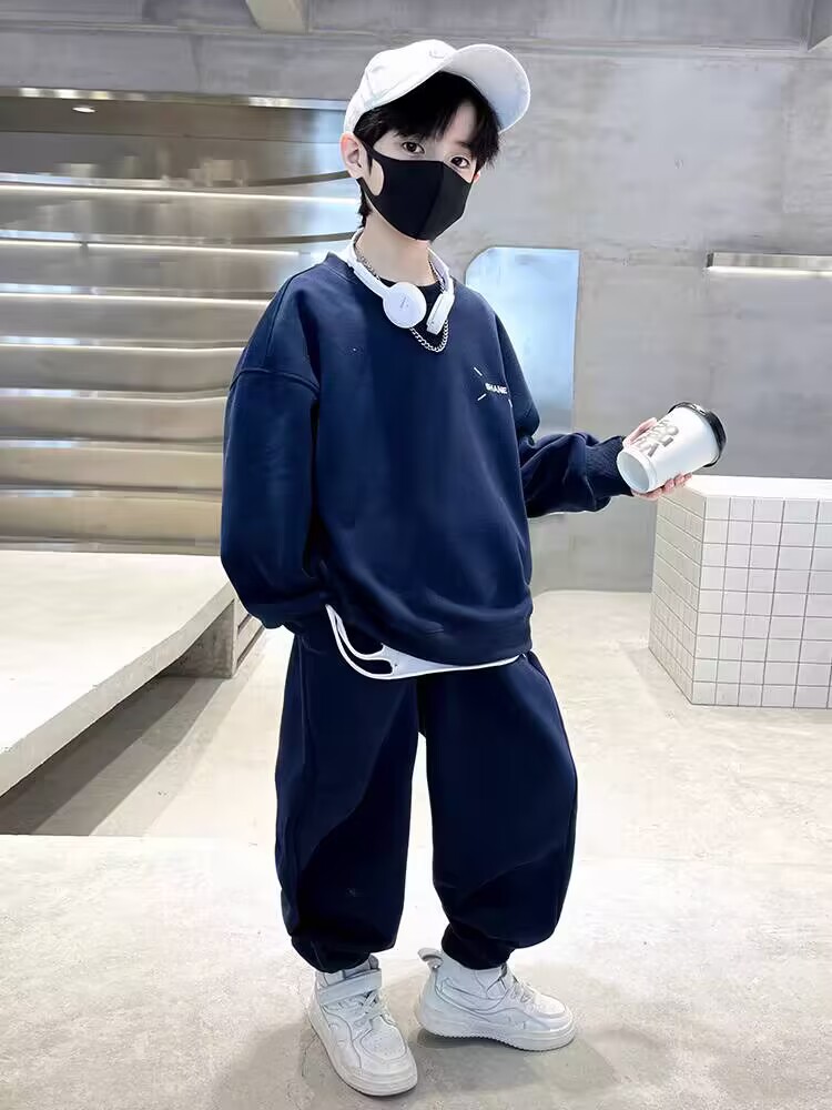 오래 된 손님 소년 가을 세트 2024 새로운 두꺼운 운동복 튀긴 거리 어린이 풀오버 조끼 봄과 가을 중 큰 아이들스토어 가기