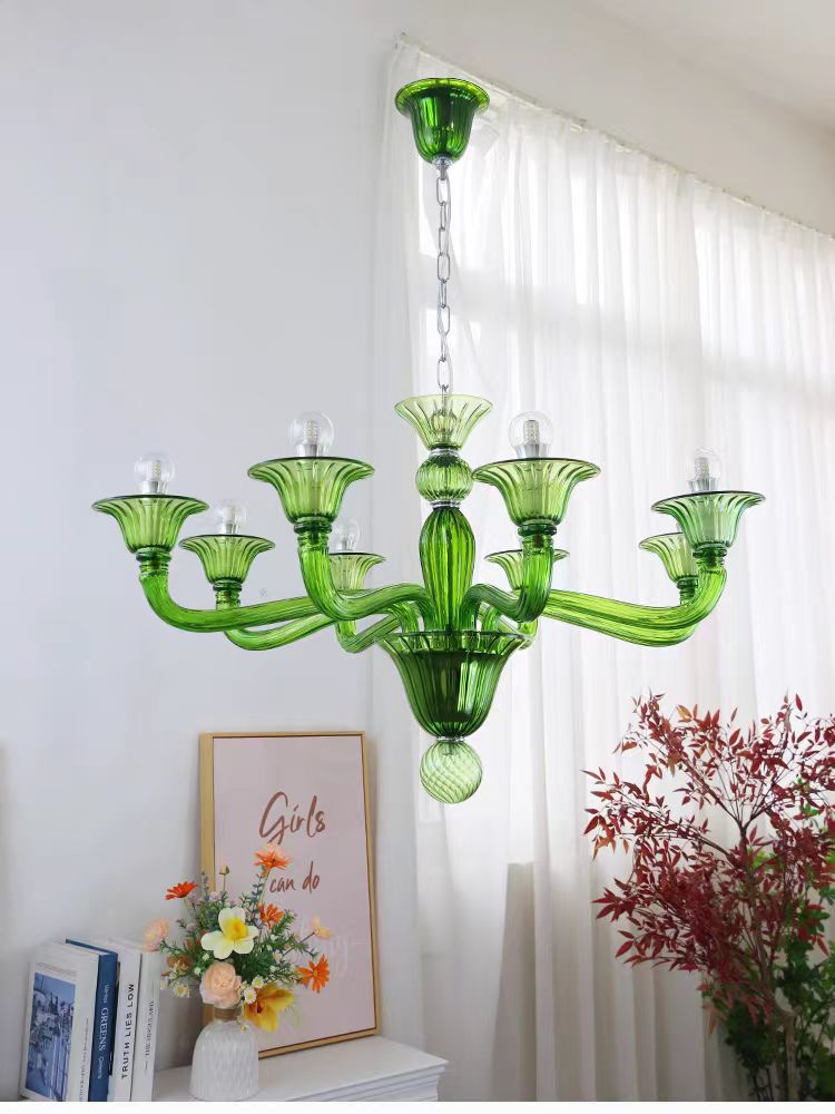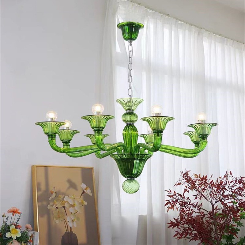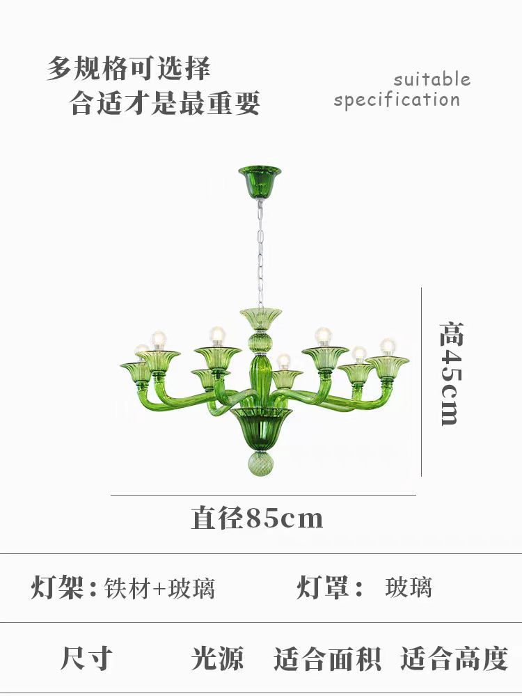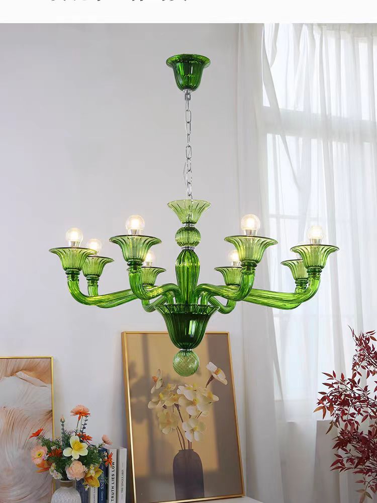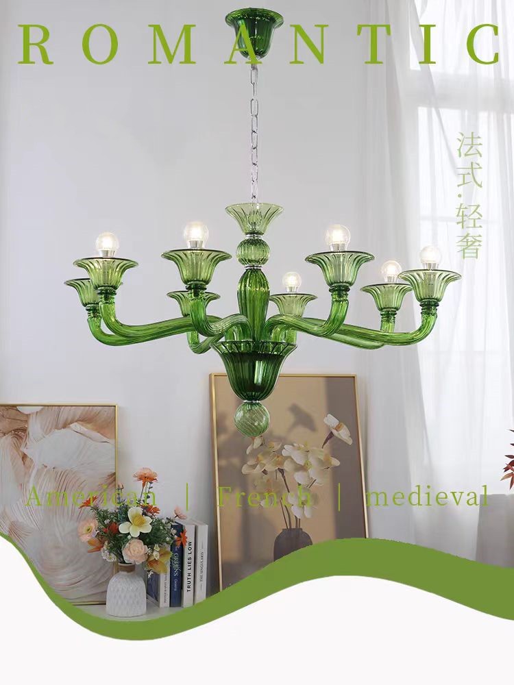 프랑스 입장 럭셔리 거실 유리 샹들리에 우아한 녹색 램프 바디 무라노 아메리칸 스타일 빈티지 연구 레스토랑 침실 램프스토어 가기