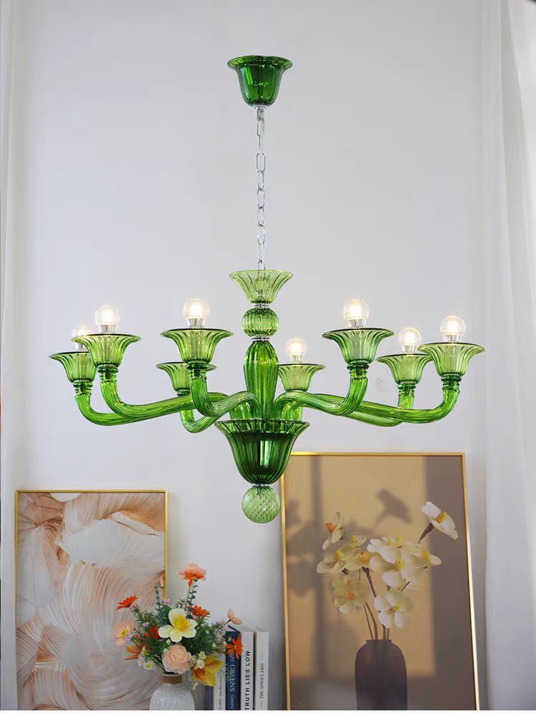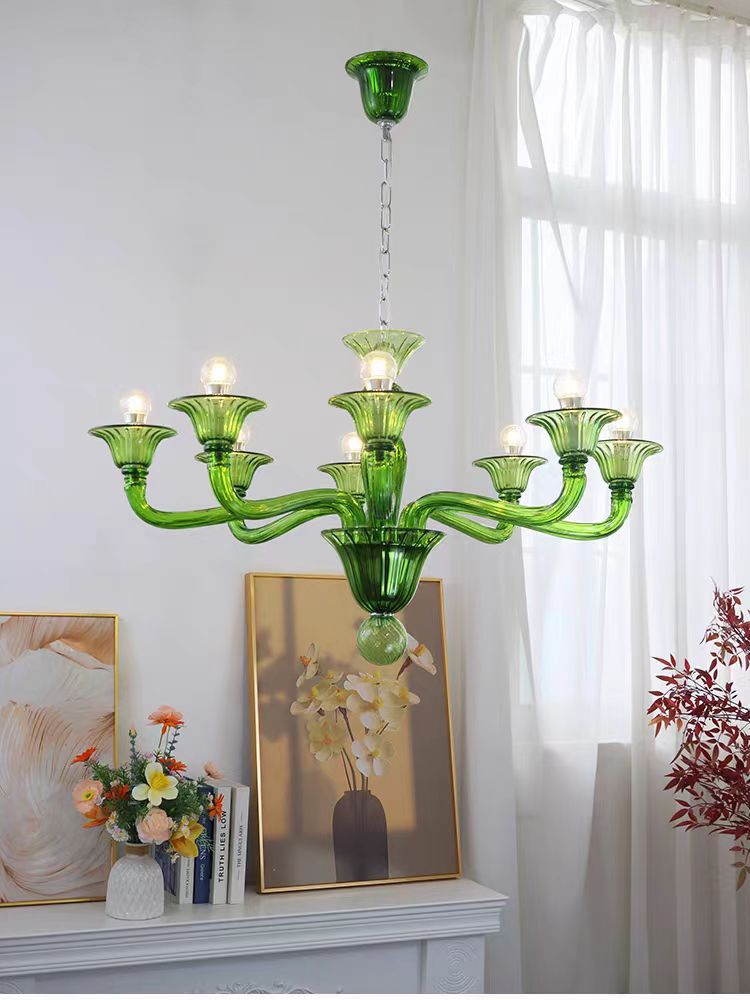 프랑스 입장 럭셔리 거실 유리 샹들리에 우아한 녹색 램프 바디 무라노 아메리칸 스타일 빈티지 연구 레스토랑 침실 램프